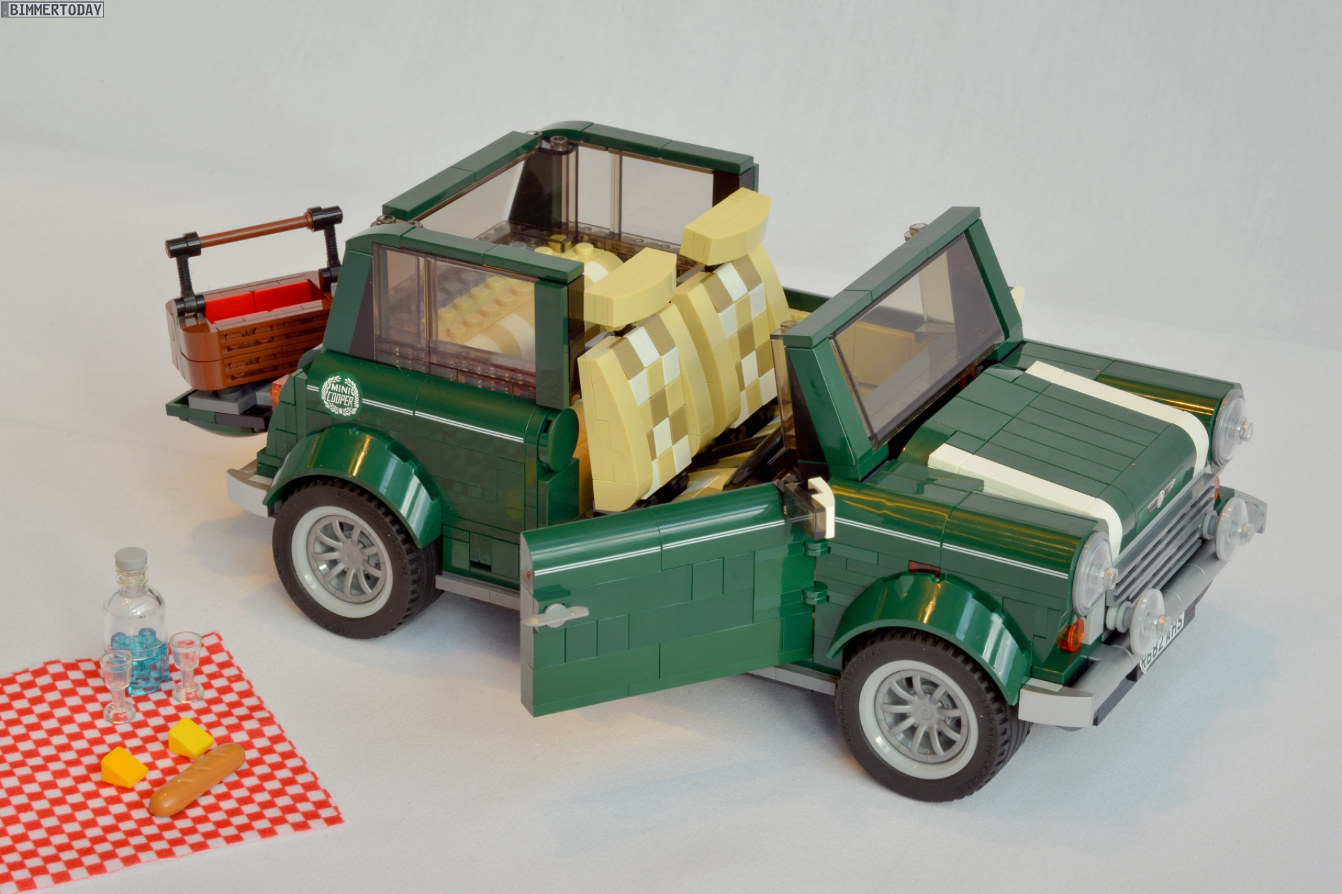 Auch sonst mangelt es dem Lego-Mini nicht an Details: Im Innenraum kommen beigefarbene Sitze mit Karomuster zum Einsatz, auch ein Picknick-Set für stylishe Ausflüge in die Natur darf nicht fehlen. Mit viel Liebe zum Detail wurden auch Design-Merkmale wie die sichtbaren Türscharniere, die ausgestellten Radhäuser und die Felgen umgesetzt.
