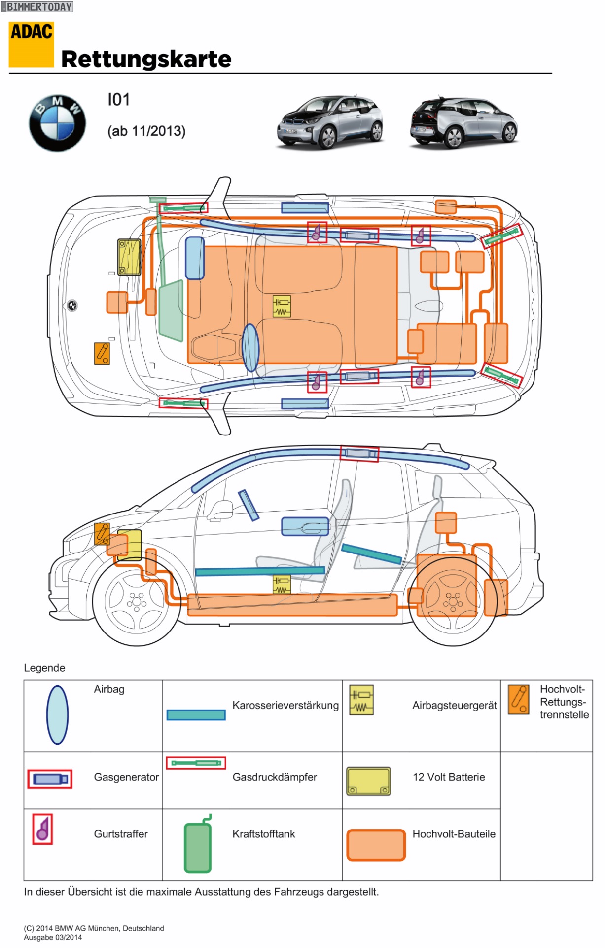 Die Rettungskarte spielt dabei eine besondere Rolle, denn wie bei jedem Elektroauto ist auch beim BMW i3 besonders wichtig, an welchen Stellen Hochspannung herrscht und wo sich die Hochvolt-Trennstelle befindet. Ohne diese Informationen können wertvolle Minuten bei der Rettung verstreichen, weil die Einsatzkräfte nicht direkt mit ihrer Arbeit beginnen können.