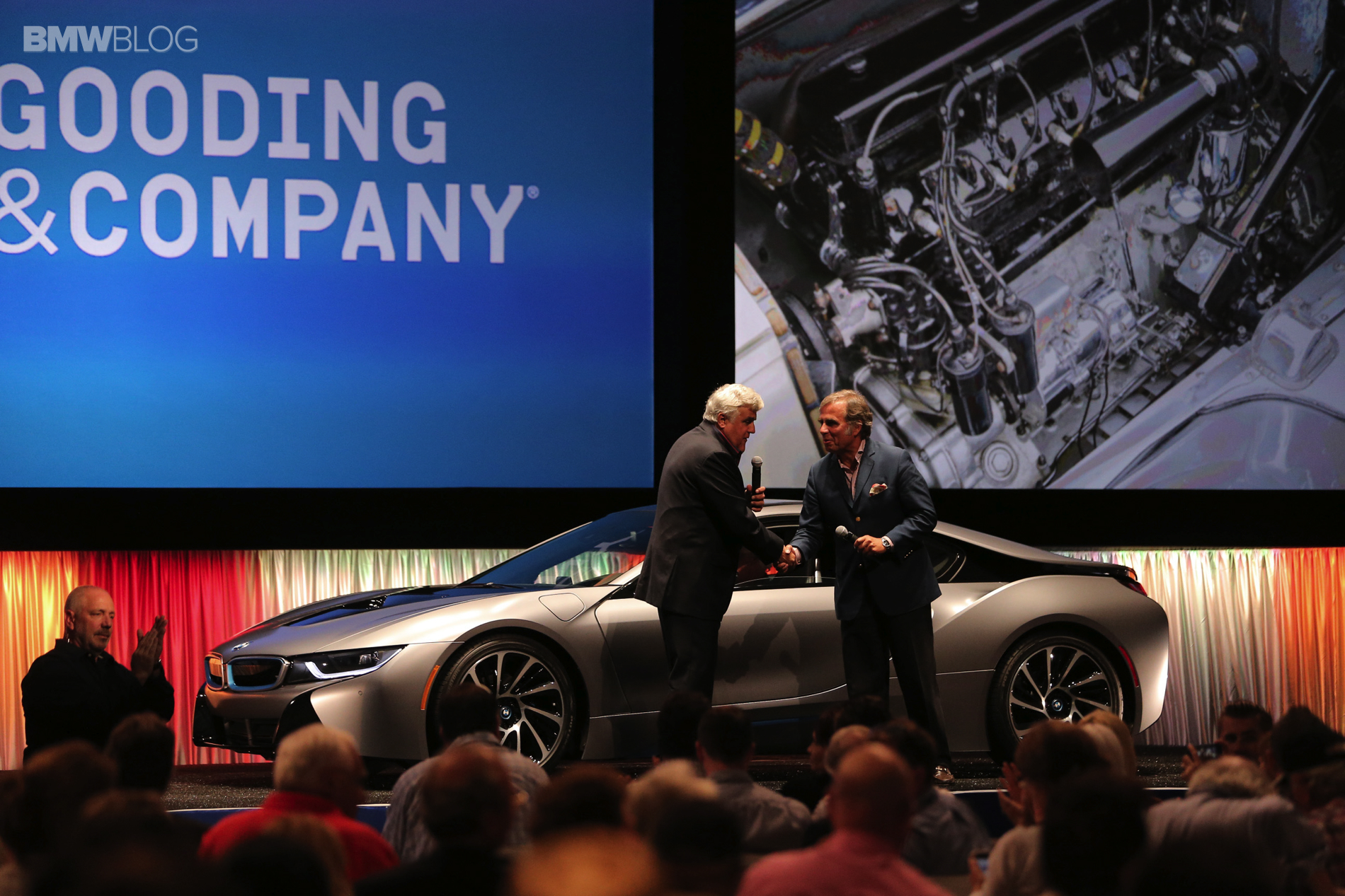 Präsentiert wurde die Versteigerung von der amerikanischen Auto-Legende Jay Leno und BMW-Nordamerika-Chef Ludwig Willisch. Für den ganz besonderen Auftritt des Pebble Beach-i8 sorgt die matte Lackierung in Frozen Grey Metallic, die mit den auch bei allen anderen i8 in Schwarz gehaltenen Elementen kombiniert wird. Im Innenraum sorgt Leder in Dalbergia Brown mit blauen Kontrastnähten für ein hochwertiges Flair.