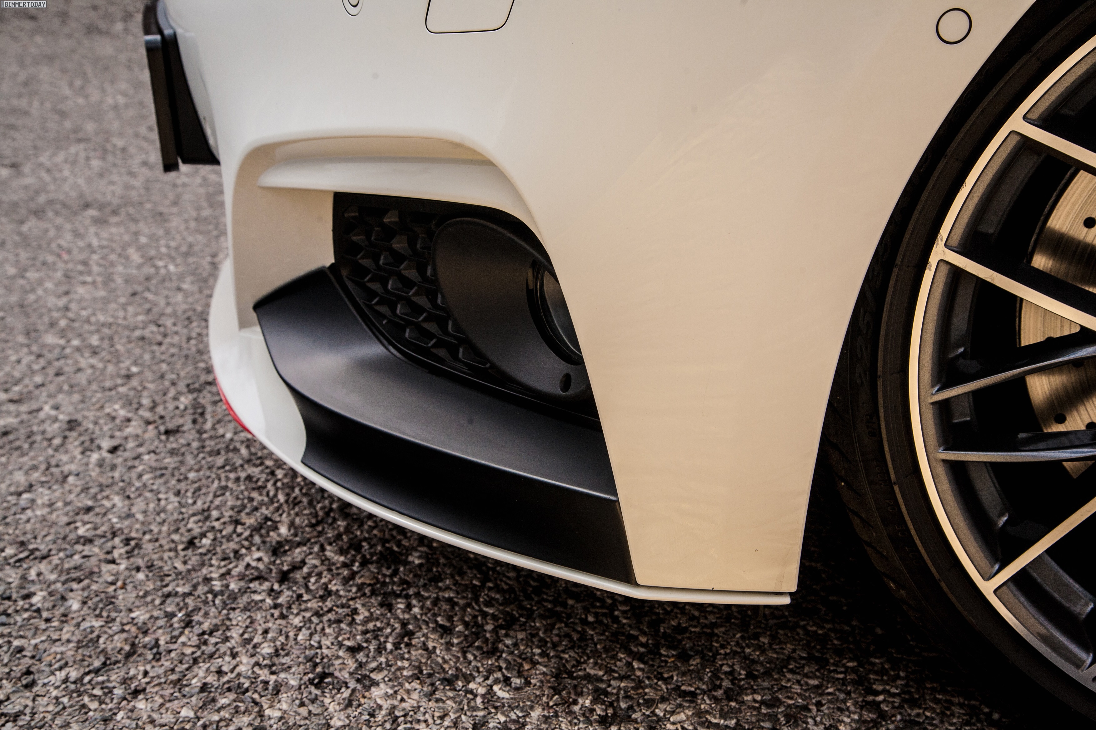 Optik und Aerodynamik profitieren nicht nur vom bereits erwähnten Front-Splitter und den Seitenschwellern, auch ein Heckspoiler aus Carbon, ein Heck-Diffusor für verschiedene Endrohr-Konfigurationen, schwarze Nieren, Carbon-Außenspiegelkappen und 19 Zoll große Leichtmetallräder tragen zum sportlichen Auftritt bei.
