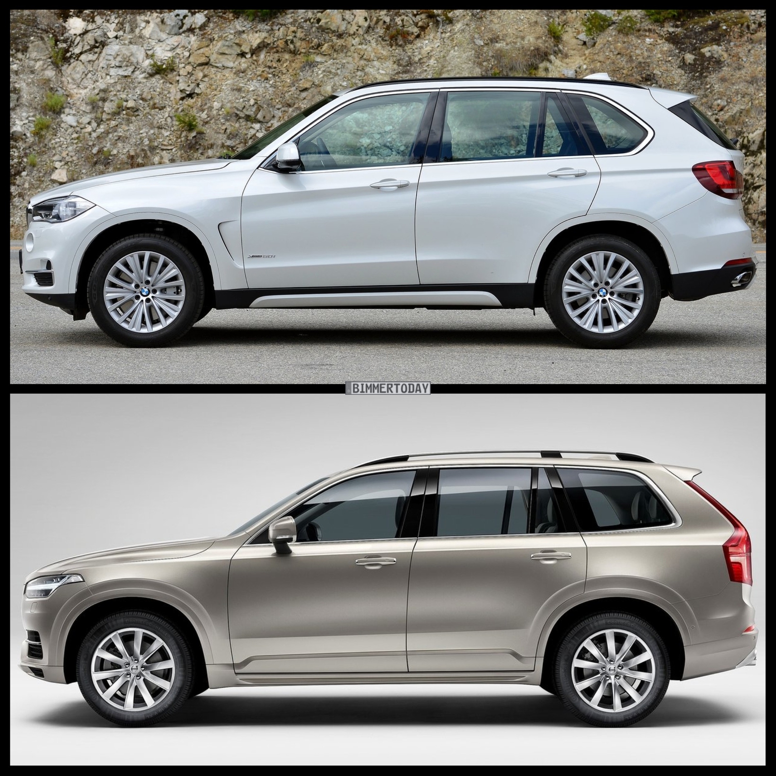 Unser Bild-Vergleich zeigt Volvo XC90 und BMW X5 F15 Seite an Seite. Welches Oberklasse-SUV gefällt euch besser?