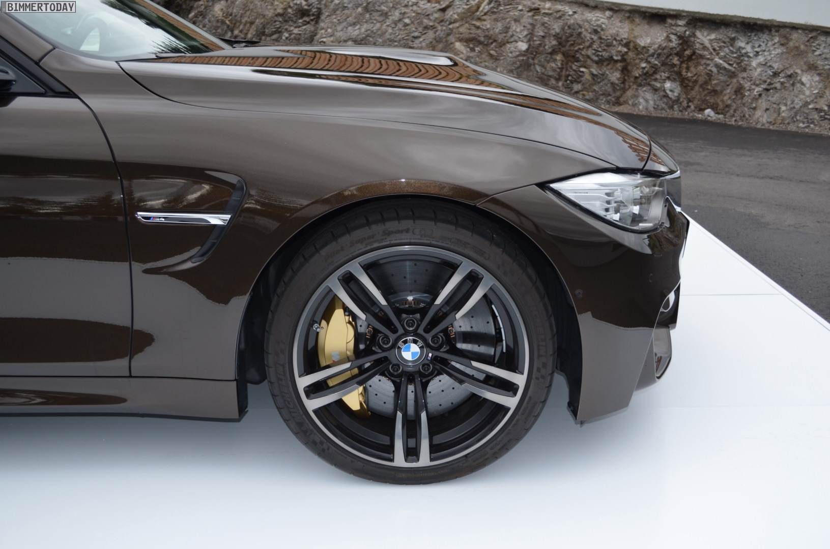 Sicher ist, dass die Lackierung in Braun nicht jedermanns Geschmack trifft, doch genau dadurch bietet BMW Pyritbraun Metallic auch zusätzliche Exklusivität. Sehr gut zur braunen Lackierung passen die goldenen Bremssättel der optionalen M Carbon-Keramik-Bremsanlage.