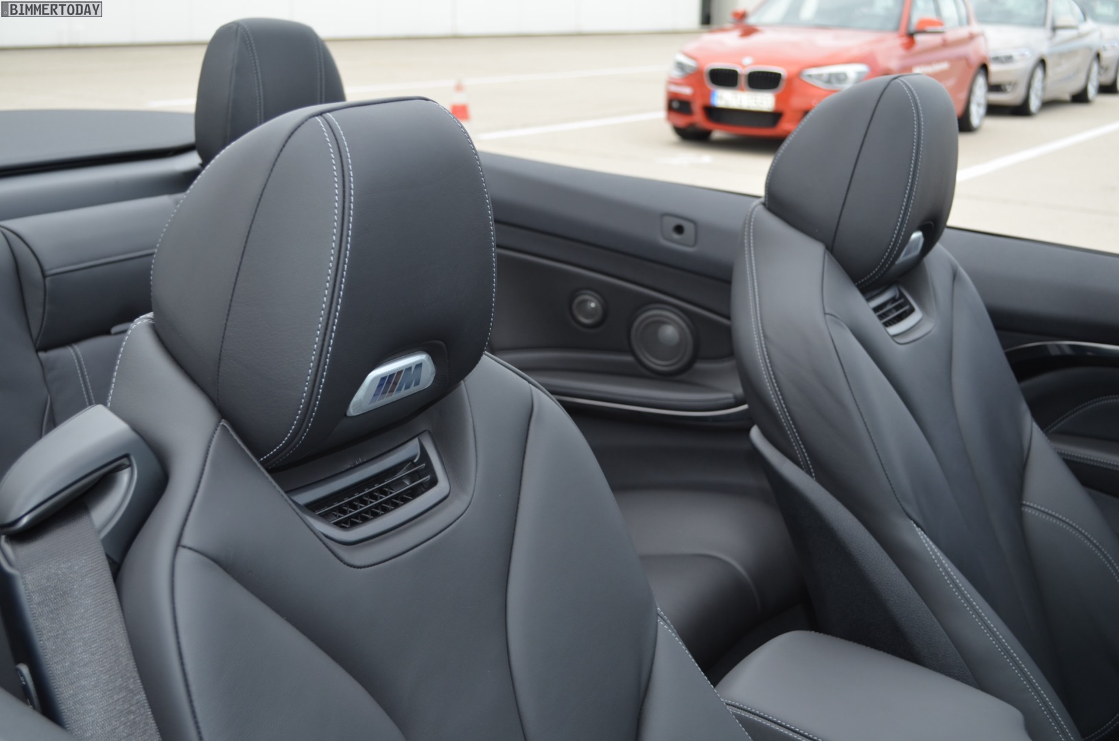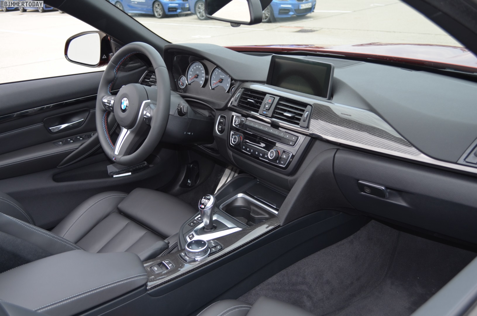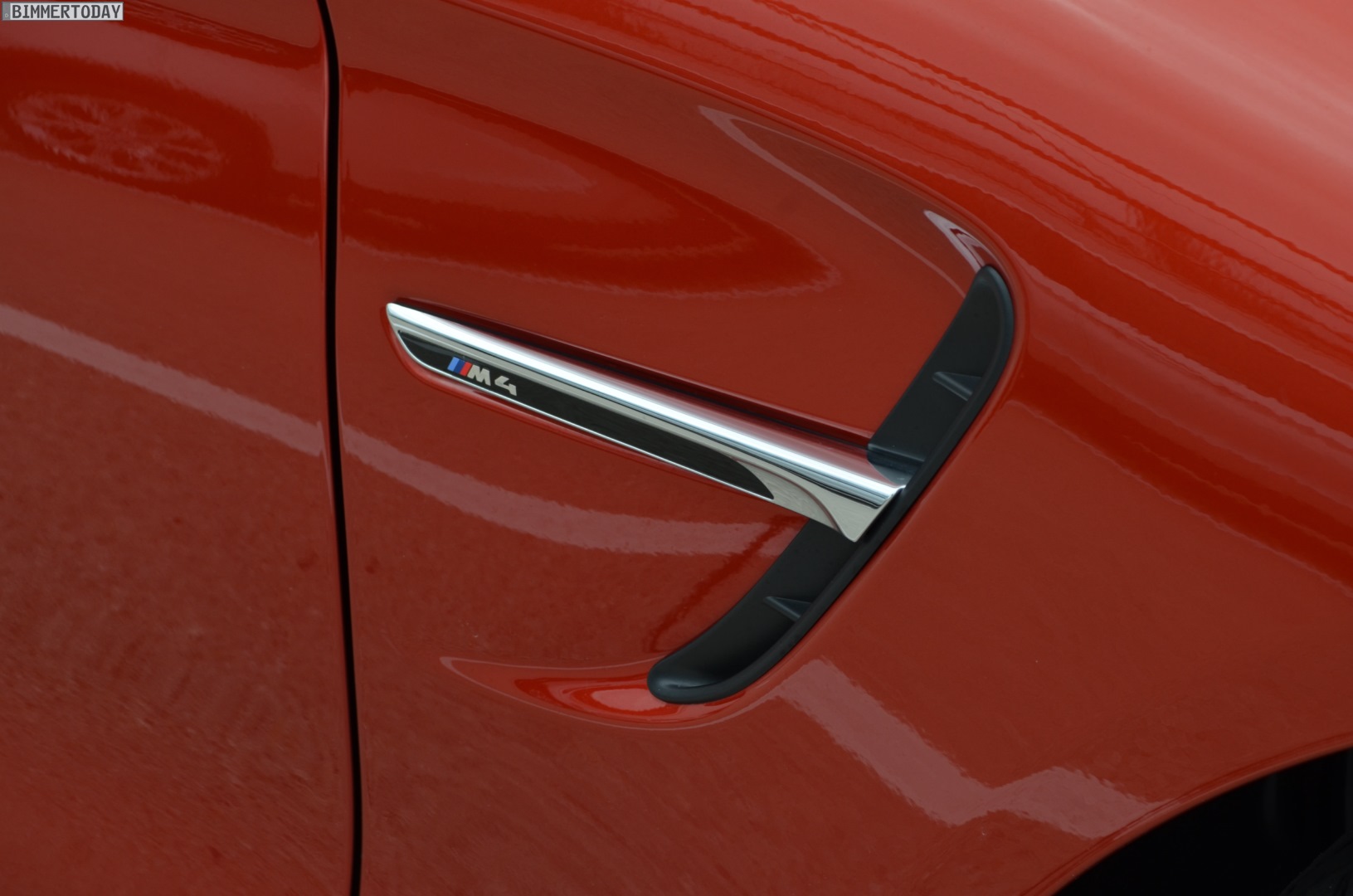Das auf den folgenden Bildern abgelichtete BMW M4 Cabrio in Sakhir Orange trägt zwar noch einen “Werkstestwagen”-Schriftzug am Heck, entspricht aber vollständig dem Serien-Stand der US-Version. Genau wie alle anderen offenen M4 beschleunigt auch dieses Modell 0,7 Sekunden schneller auf 100 als der Vorgänger mit V8-Triebwerk.