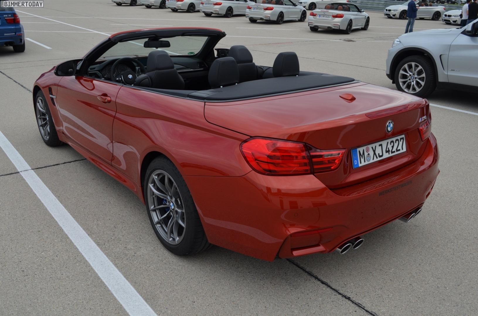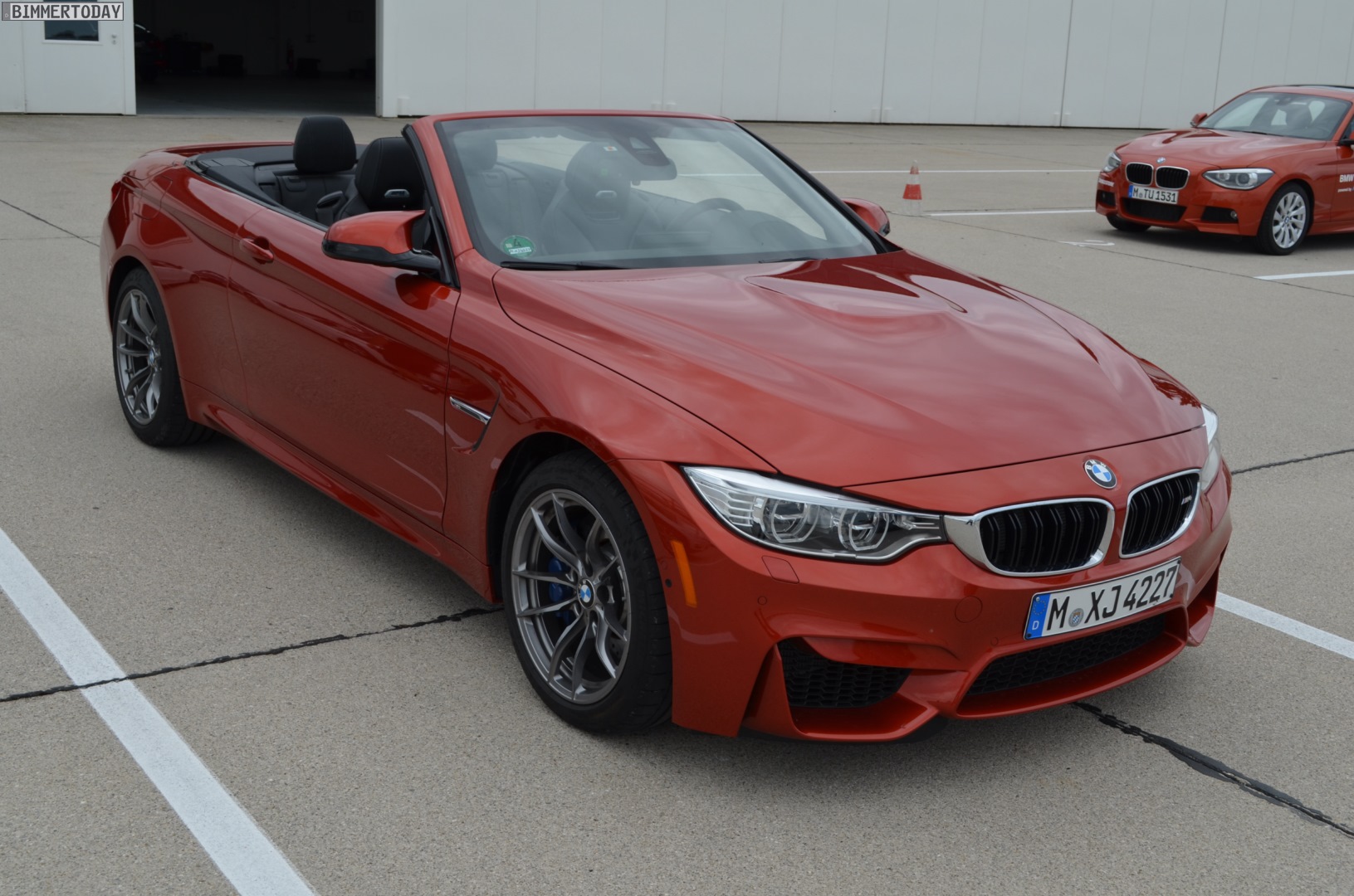 Anlässlich der Premiere des BMW M4 Cabrio hatten wir eine kurze Gelegenheit, die ersten Fotos eines offenen M4 in Sakhir Orange zu machen. Natürlich haben wir die Gelegenheit trotz des eher trüben Wetters auf dem Gelände des Fahrsicherheitszentrums Maisach genutzt und können daher nun die ersten entsprechenden Bilder liefern.