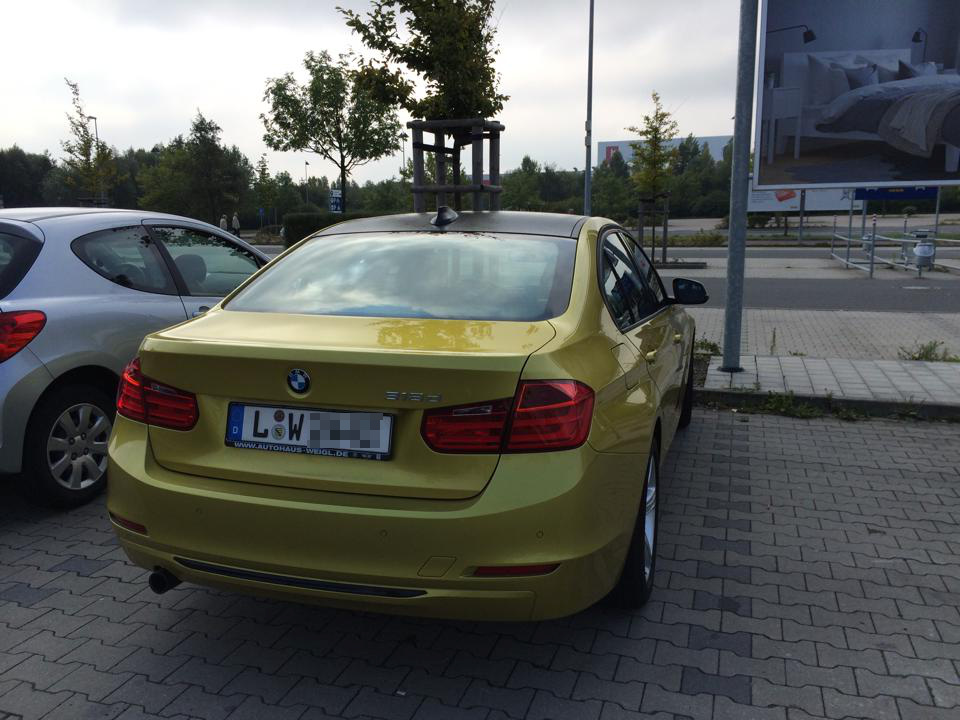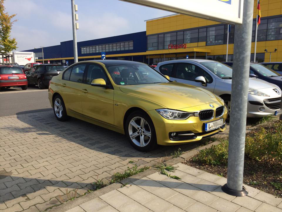 Wer glaubt, dass es sich bei Austin Yellow um eine ausschließlich für M3 und M4 erhältliche Farbe handelt, irrt sich offenbar. Unser Leser Thomas hat in der Nähe des BMW Werk Leipzig eine offenbar über BMW Individual in Austin Yellow lackierte BMW 3er Limousine F30 fotografiert, die nicht nur beim Blick unter die Motorhaube denkbar weit vom BMW M3 F80 entfernt ist.