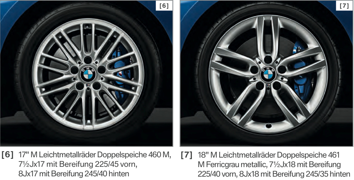 Neben der Uni-Lackierung Alpinweiß stehen gegen 660 Euro Aufpreis die Metallic-Farben Estorilblau, Saphirschwarz, Glaciersilber, Mineralweiß, Melbourne Rot und Mineralgrau zur Wahl. Bei den Interieurleisten verlangt BMW lediglich für die Edelholz-Varianten einen weiteren Aufpreis von 100 Euro, die Aluminium-Ausführungen Hexagon, Längsschliff und Schwarz hochglänzend können kostenfrei gewählt werden.