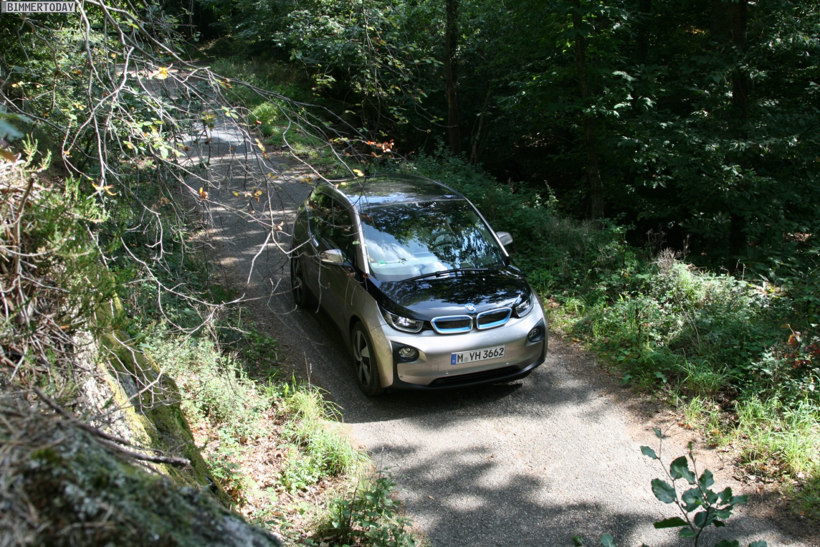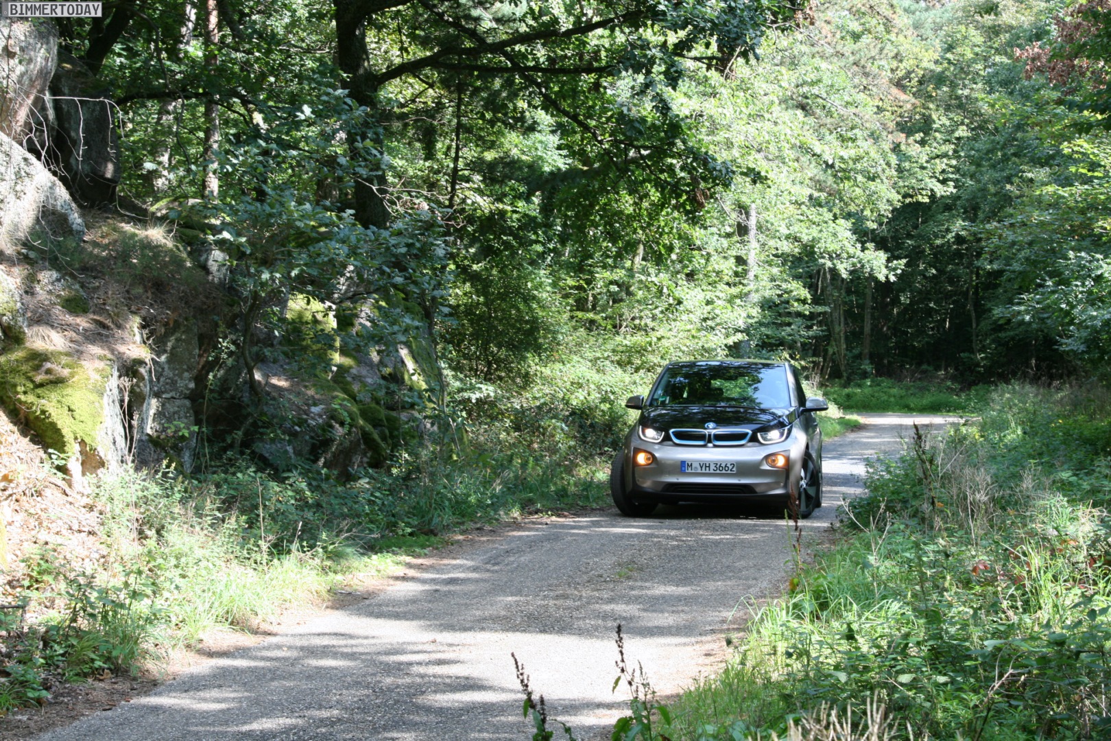 Na gut. Routiniert drücken wir den Menü-Knopf der iDrive-Steuerung, gehen auf den Reiter „Range Extender“ und klicken auf „Ladestand halten“. Wenn es schon keinen neuen Strom gibt, dann soll sich unser BMW i3 seine übrigen Elektro-Kilometer für die verschlungene Landstraße aufsparen, über die wir einen kleinen Abstecher in die nahen Vogesen machen wollen. Bergauf geht es ein paar Dörfer später über ein bestenfalls einspuriges Sträßchen mit Wanderweg-Charakter, das schließlich irgendwann in eine zweispurige Bergstraße mündet.