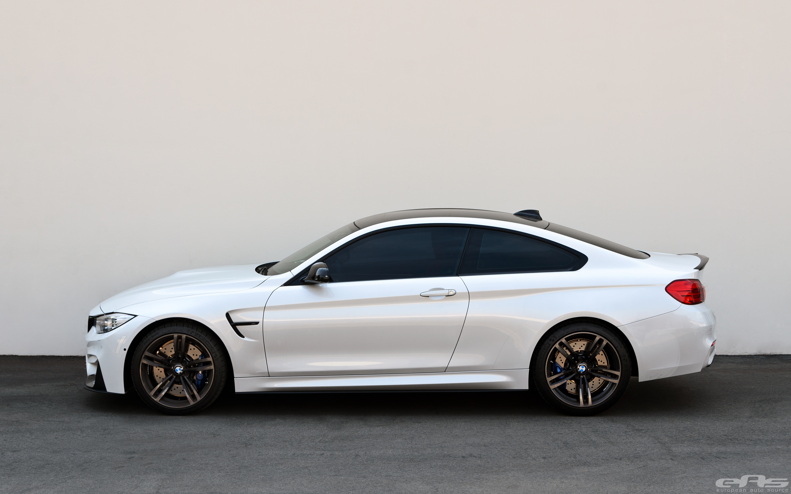 Die weiße Lackierung mit Metallic-Effekt bietet eine elegante Abwechslung zum immer häufiger anzutreffenden Alpinweiß Uni und steht auch dem BMW M4 Coupé F82 ausgezeichnet. Die jüngsten Fotos von EAS zeigen das Topmodell der 4er-Reihe aber nicht nur in Mineralweiß, sondern auch mit Tuning-Zubehör von BMW M Performance.