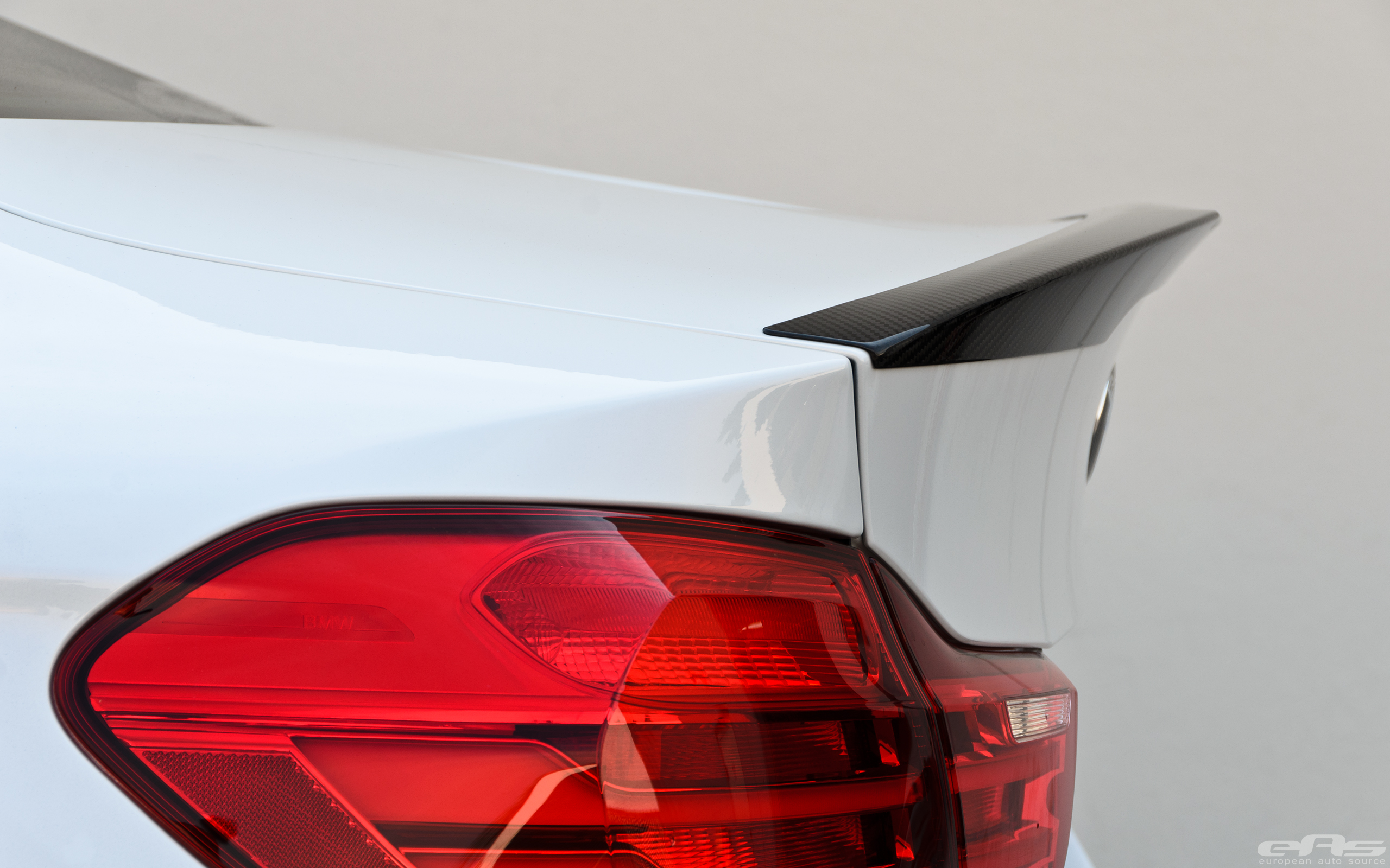 Das Aerodynamik-Paket von BMW M Performance umfasst einen zusätzlichem Front-Splitter, passende Seitenschwellern sowie einen Diffusor und eine Heckspoiler-Lippe aus Carbon – alle Teile wurden im Windkanal entwickelt und dienen nicht nur der Optik, sondern steigern auch die Performance.