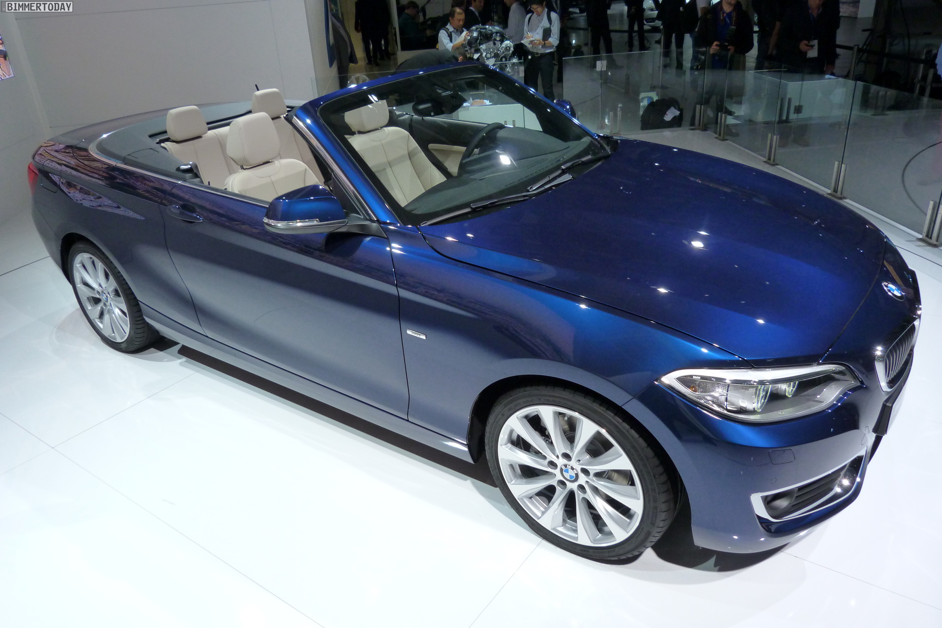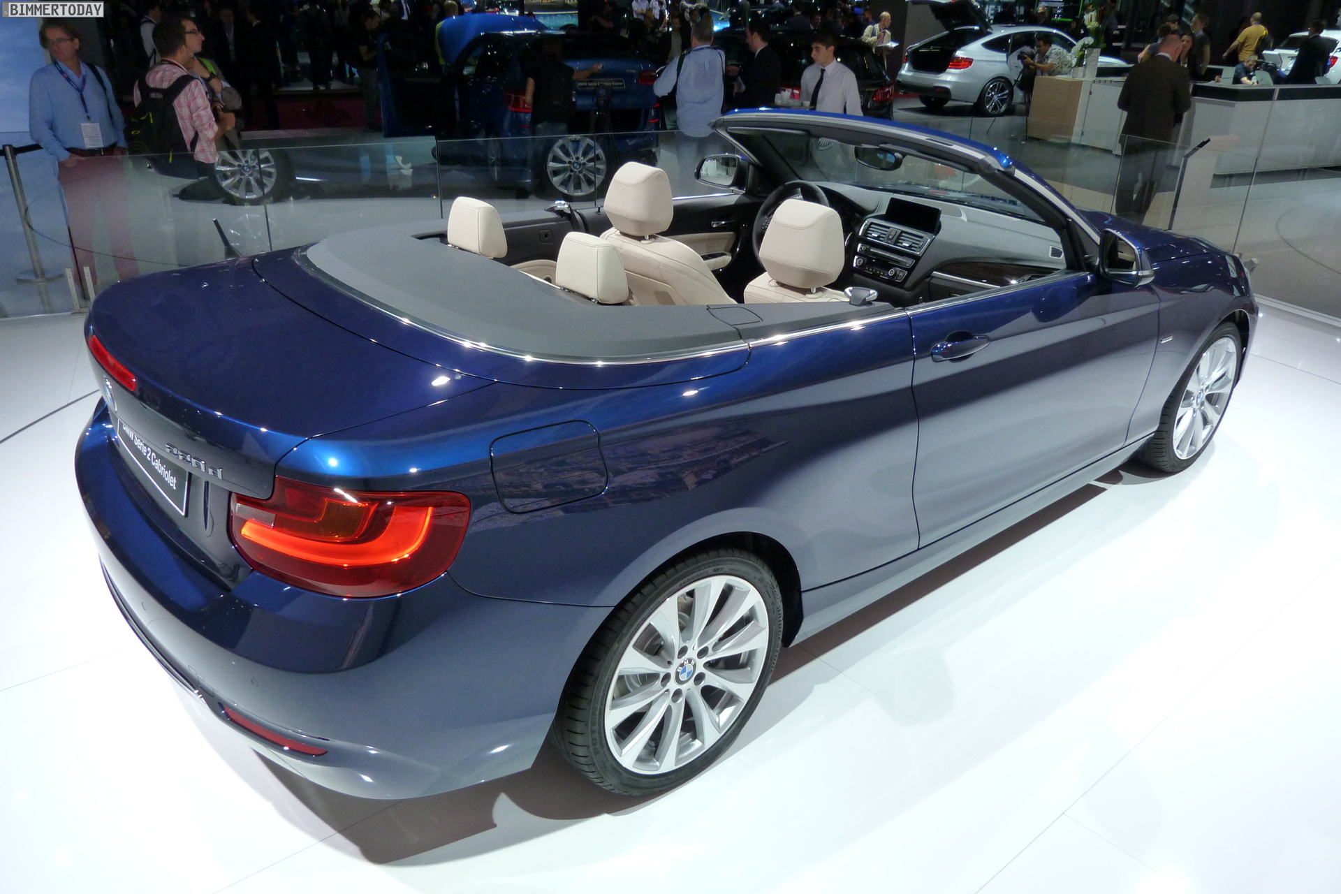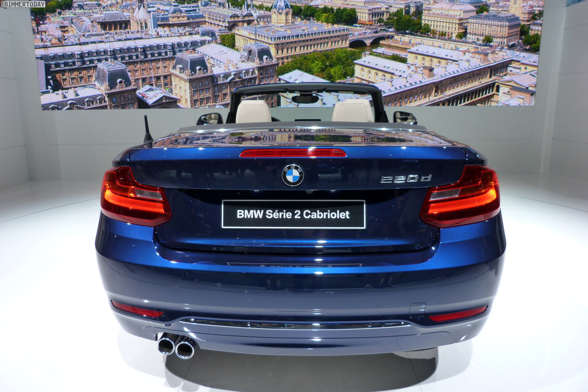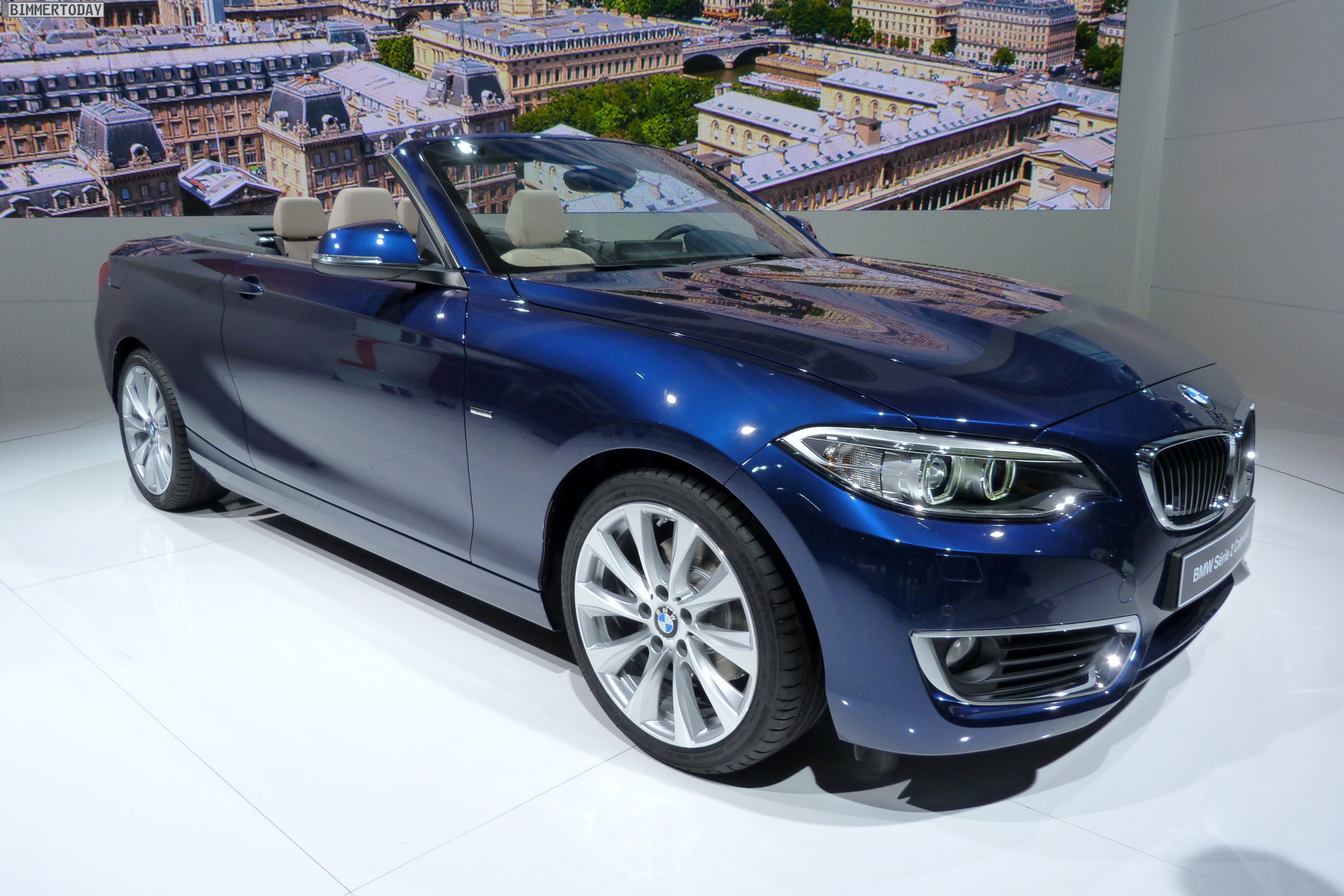 In Paris zeigt BMW das neue 2er Cabrio als 220d in Tiefseeblau metallic mit Luxury Line und als 220i in Glaciersilber metallic mit Sport Line. Im Vergleich mit dem BMW 2er Coupé liegen die Aufpreise für das Cabrio im Bereich von 5.000 Euro, für ein identisch motorisiertes BMW 4er Cabrio F33 mit Metall-Klappdach verlangt BMW teilweise über 8.000 Euro mehr.