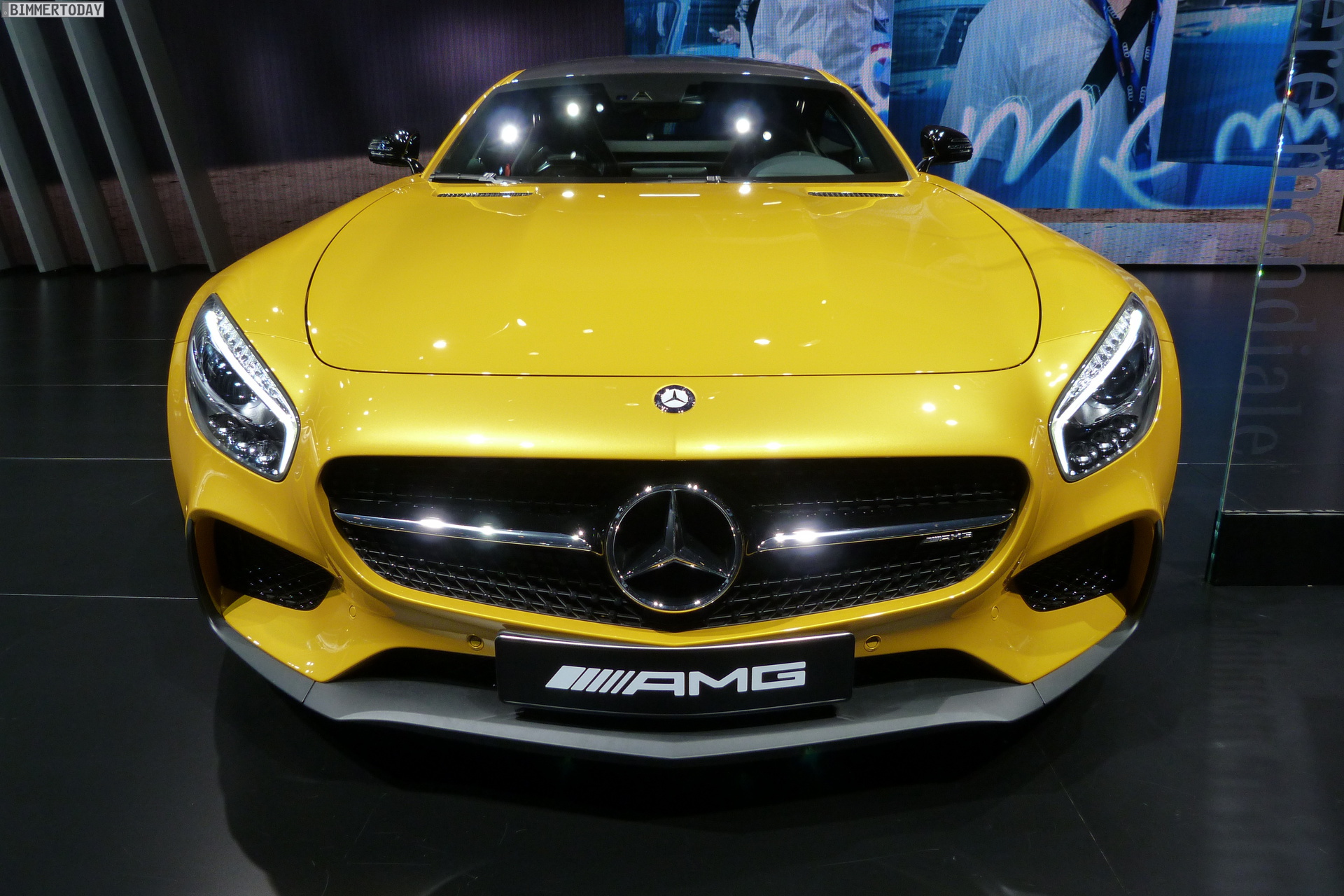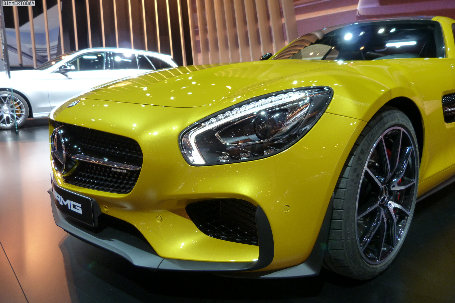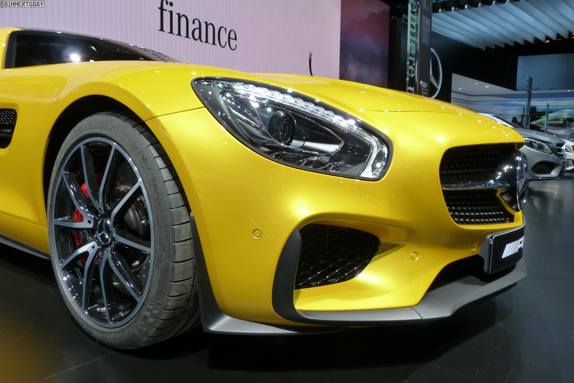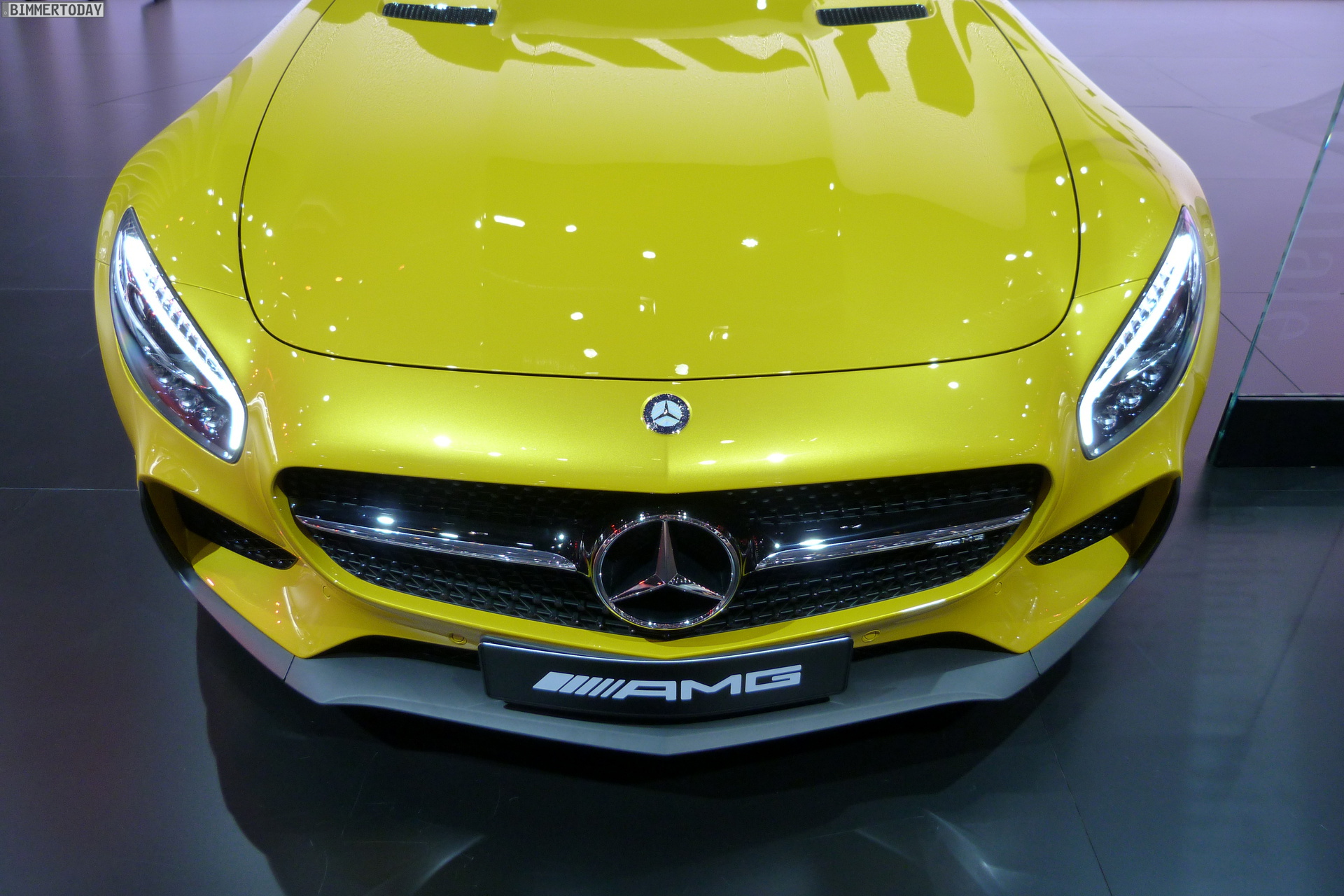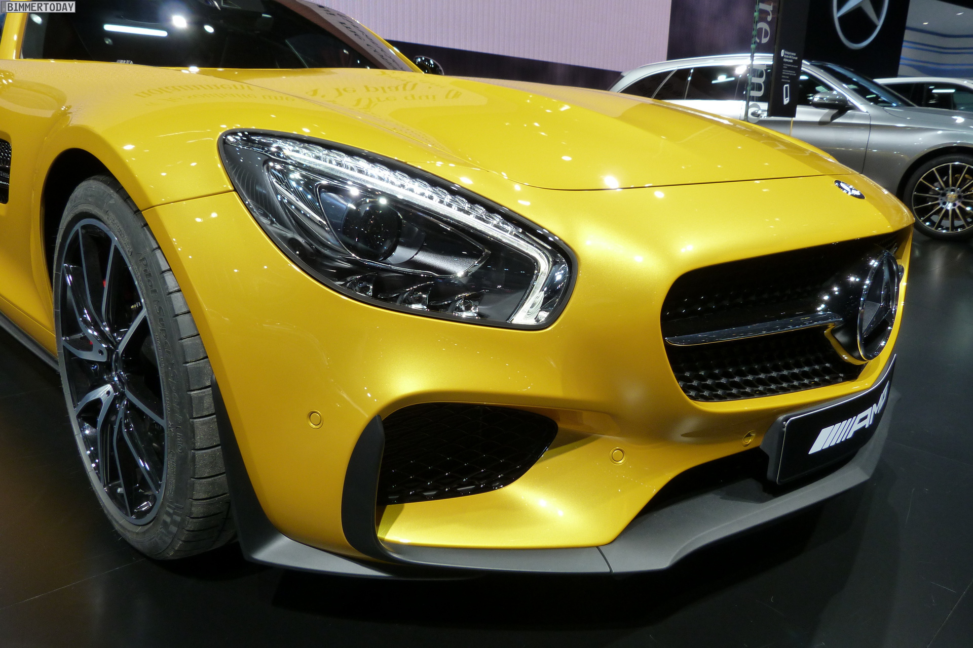 Neben dem “normalen” AMG GT steht in Paris auch die schärfere Mercedes AMG GT S Version in leuchtendem Gelb, wie unsere Live Fotos zeigen: