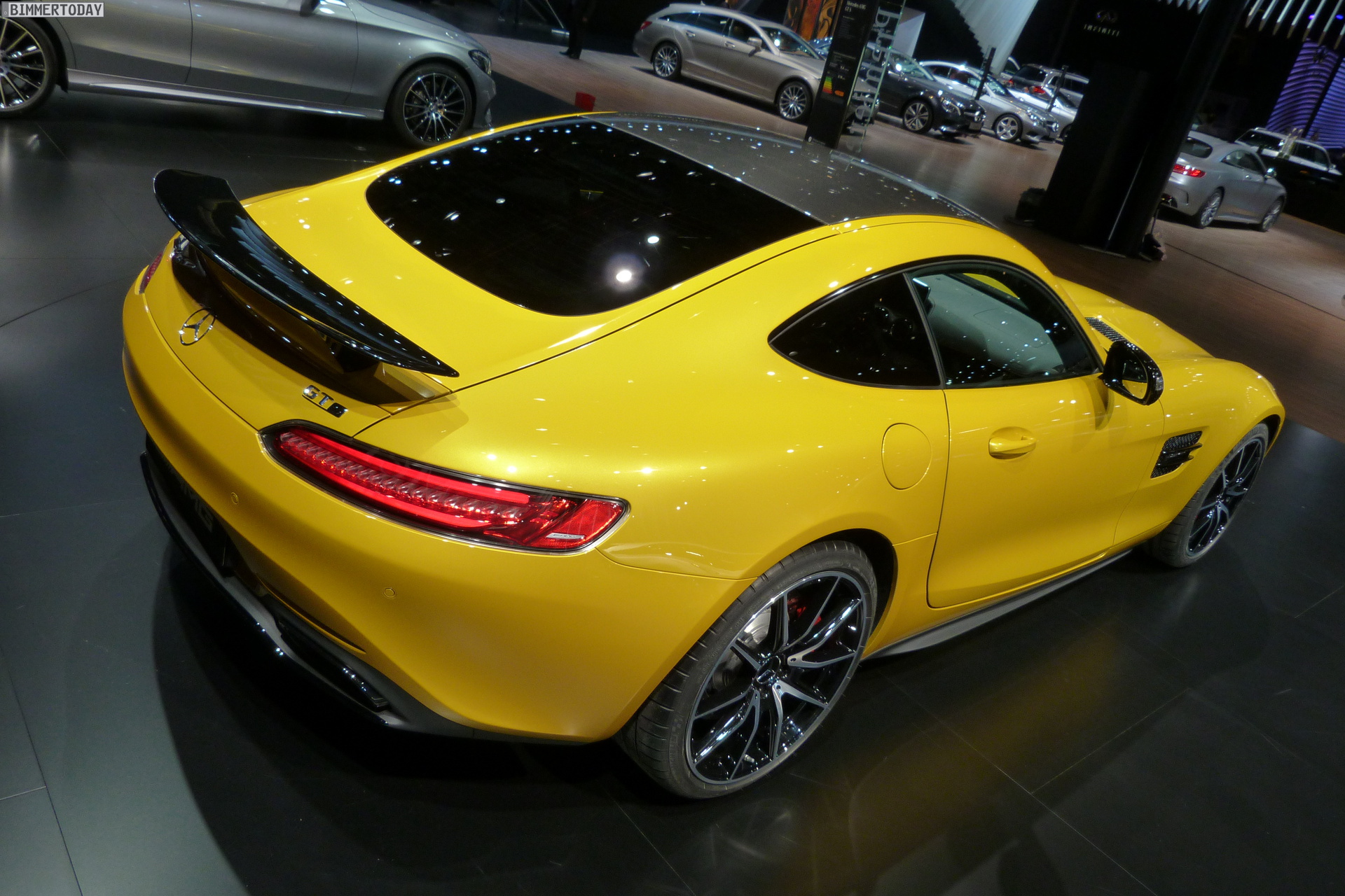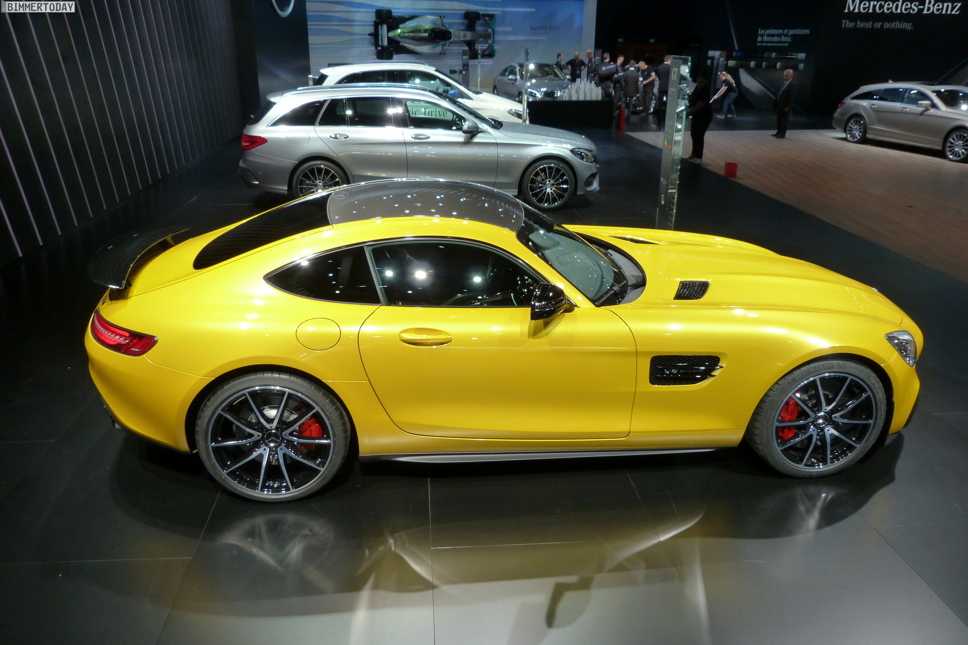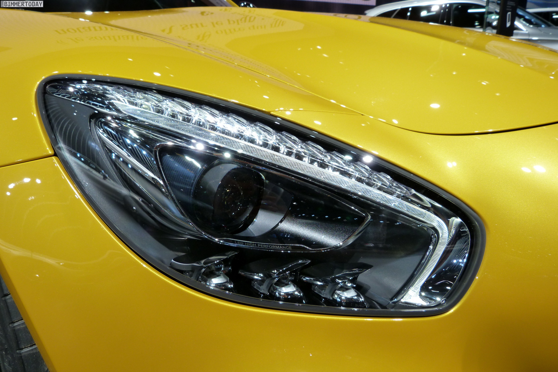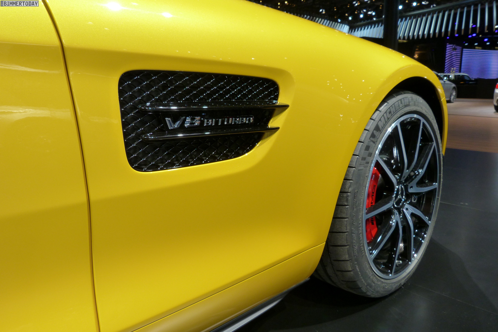 Neben dem “normalen” AMG GT steht in Paris auch die schärfere Mercedes AMG GT S Version in leuchtendem Gelb, wie unsere Live Fotos zeigen: