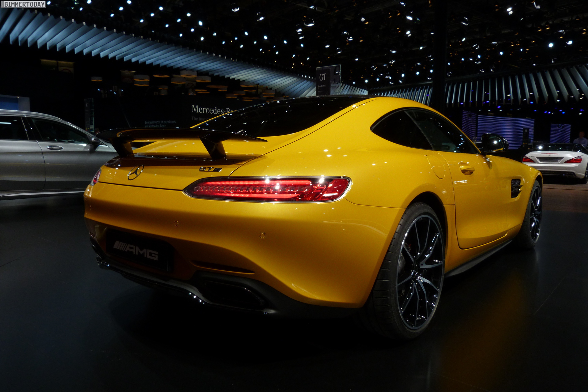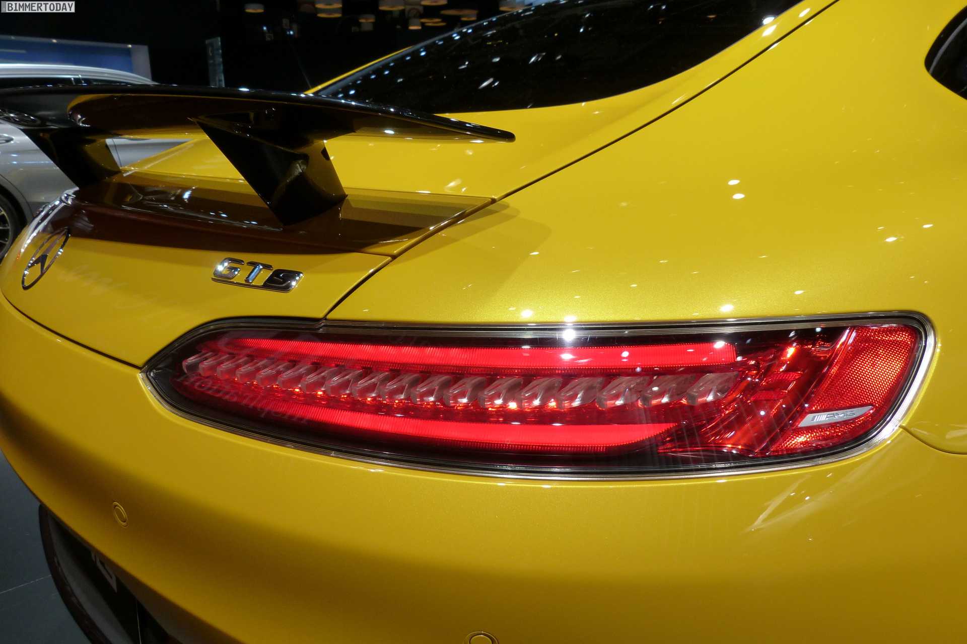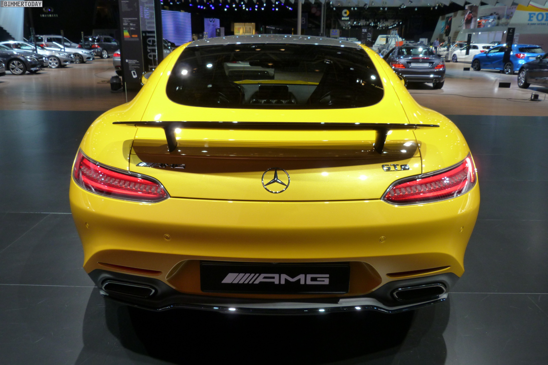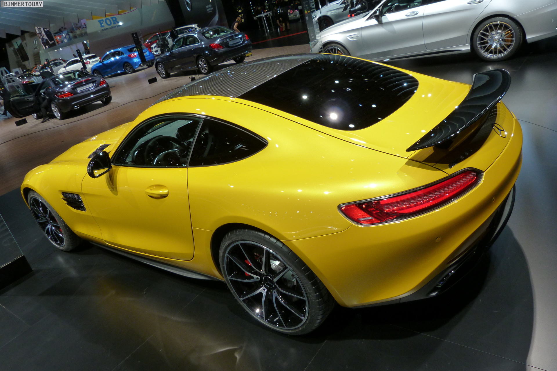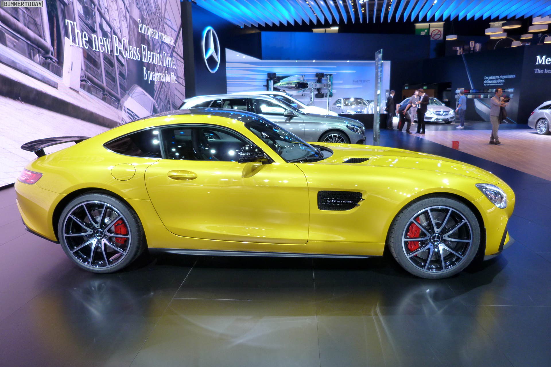 Neben dem “normalen” AMG GT steht in Paris auch die schärfere Mercedes AMG GT S Version in leuchtendem Gelb, wie unsere Live Fotos zeigen: