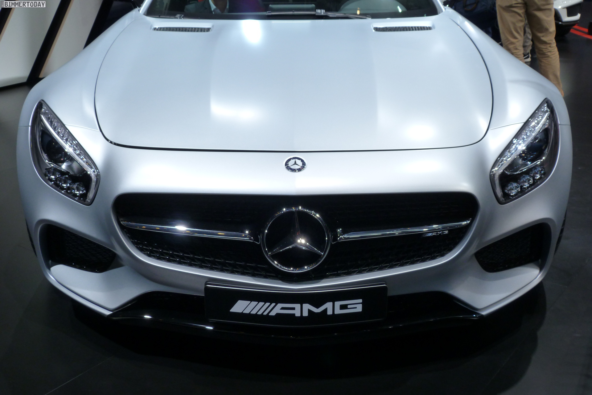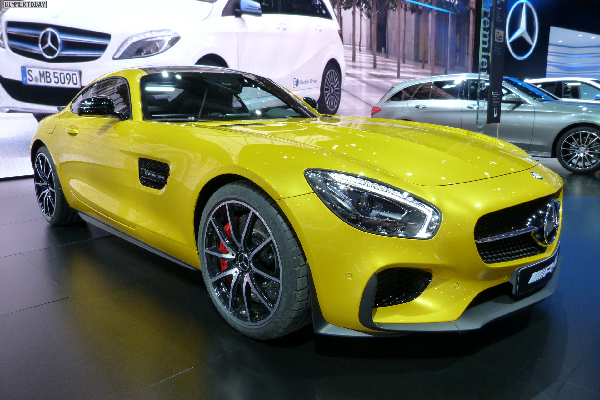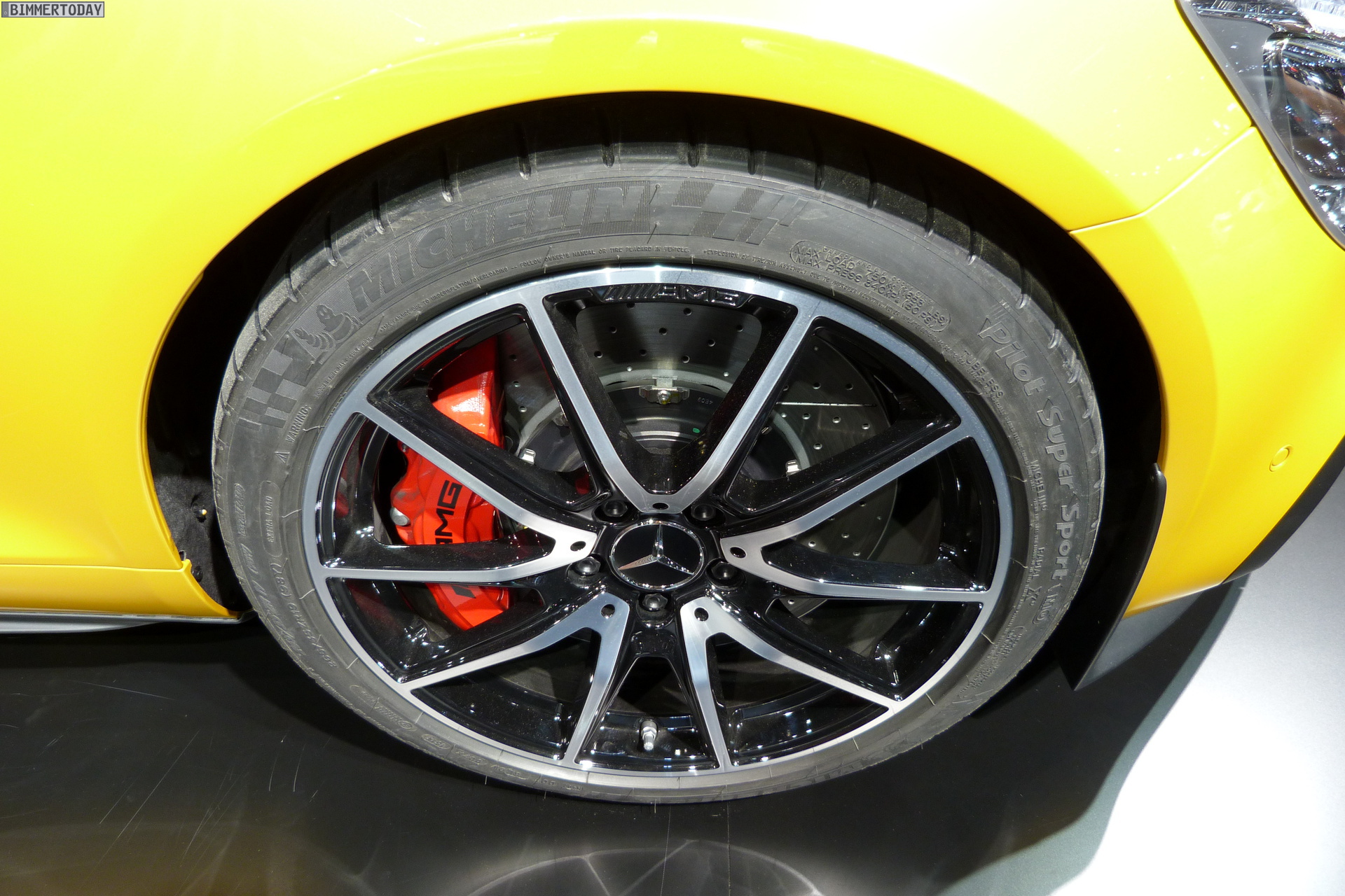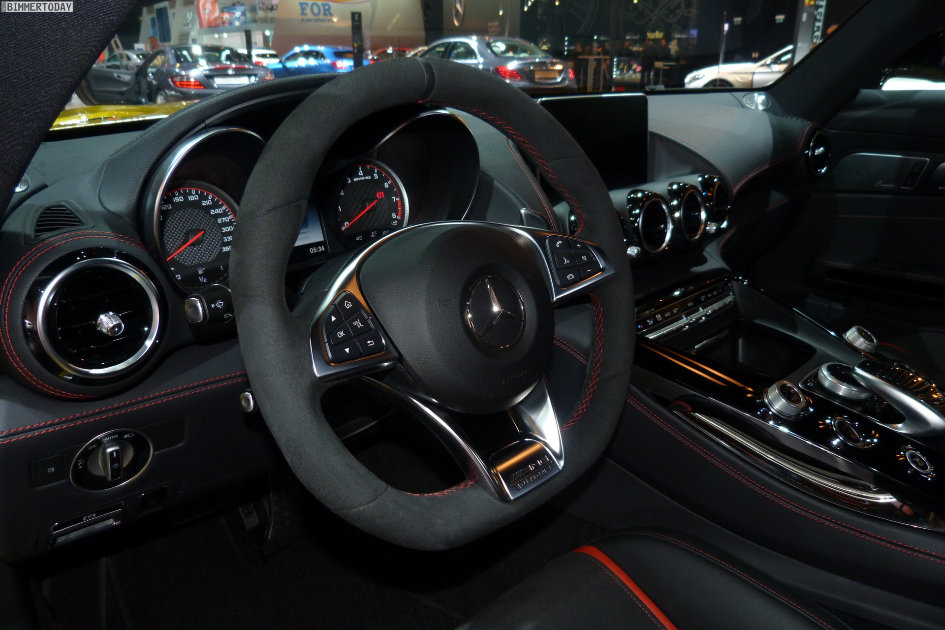 Neben dem “normalen” AMG GT steht in Paris auch die schärfere Mercedes AMG GT S Version in leuchtendem Gelb, wie unsere Live Fotos zeigen: