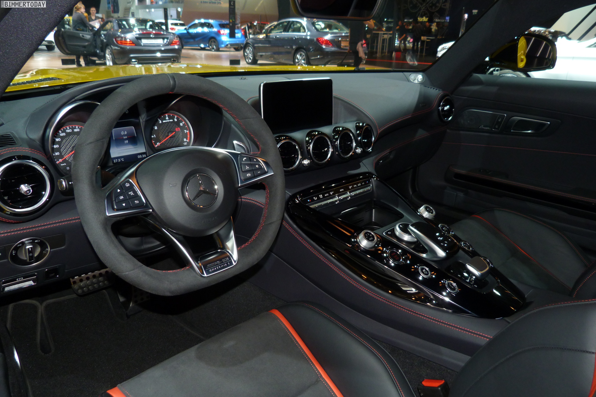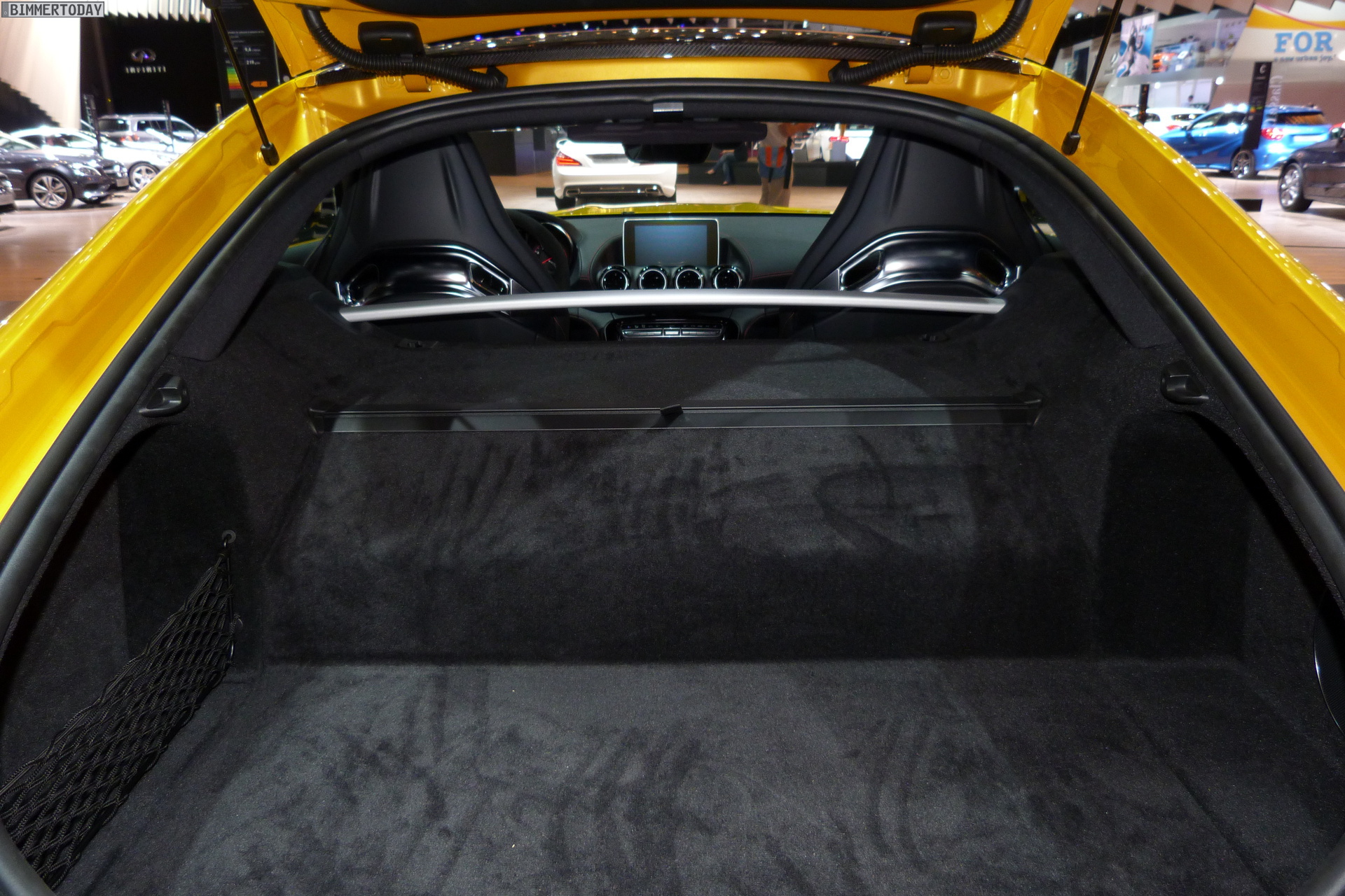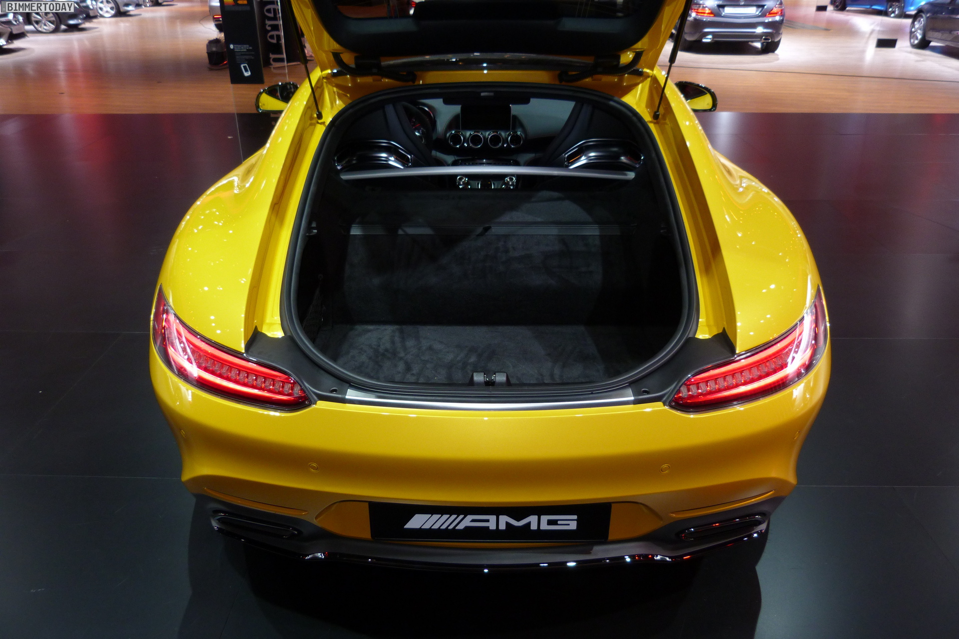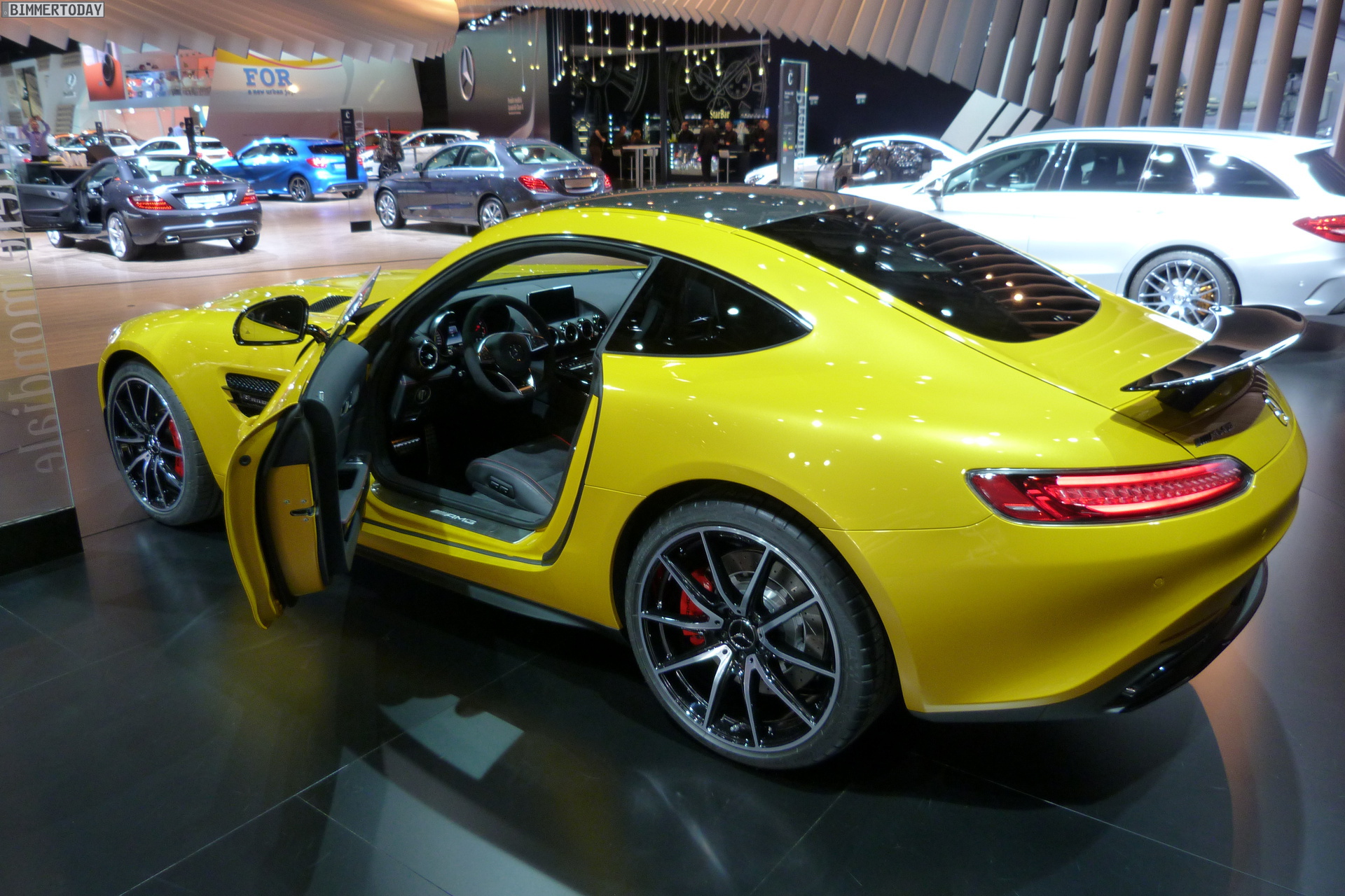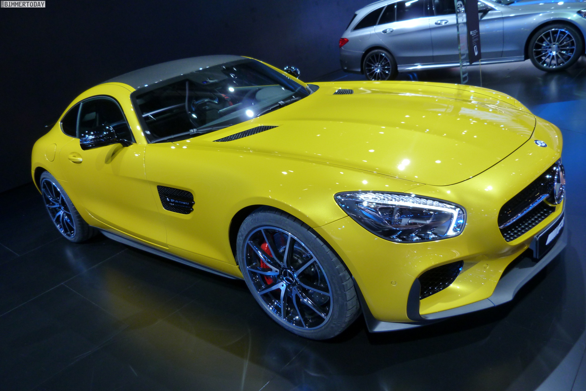 Neben dem “normalen” AMG GT steht in Paris auch die schärfere Mercedes AMG GT S Version in leuchtendem Gelb, wie unsere Live Fotos zeigen: