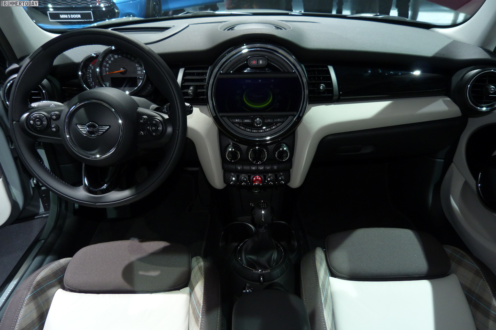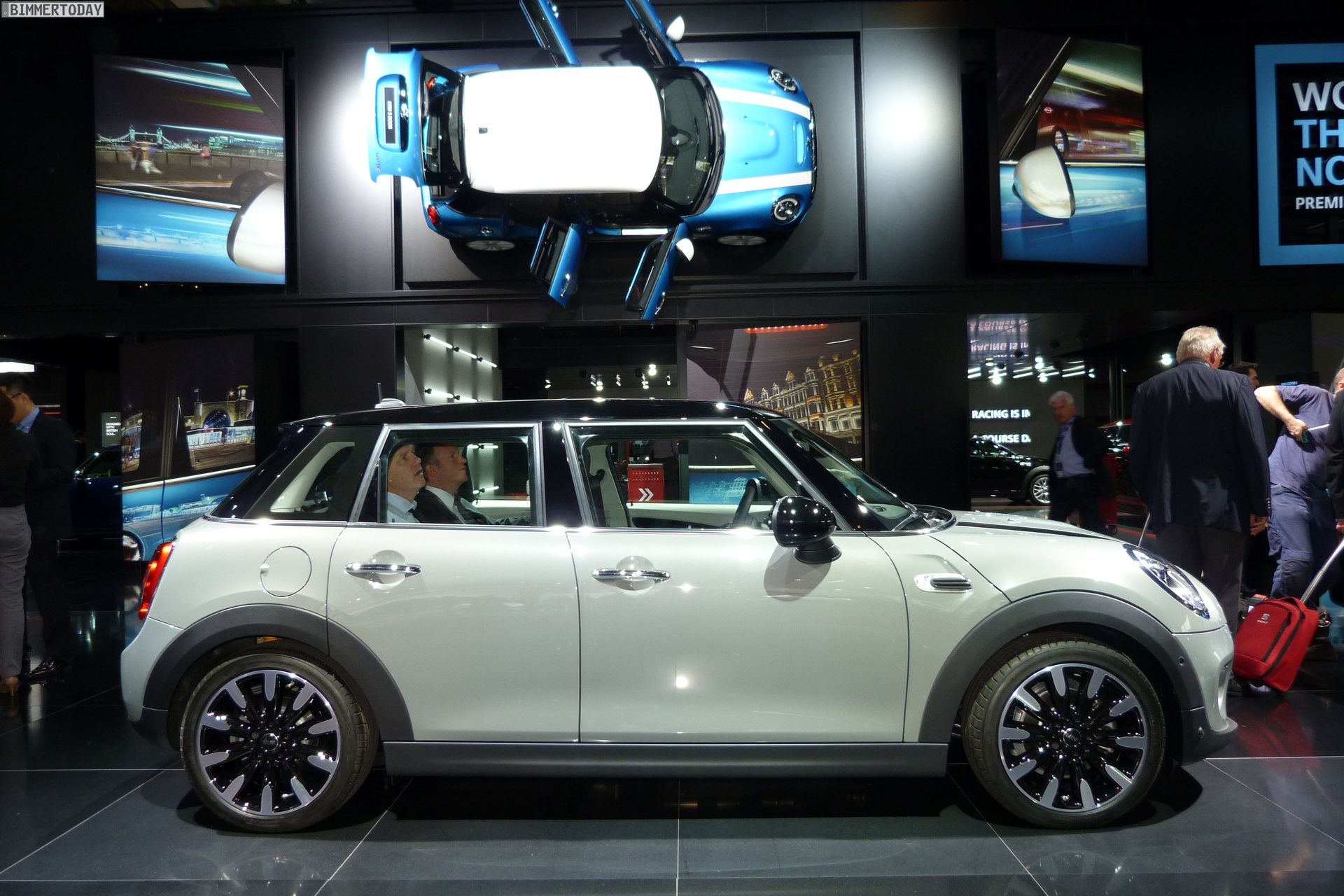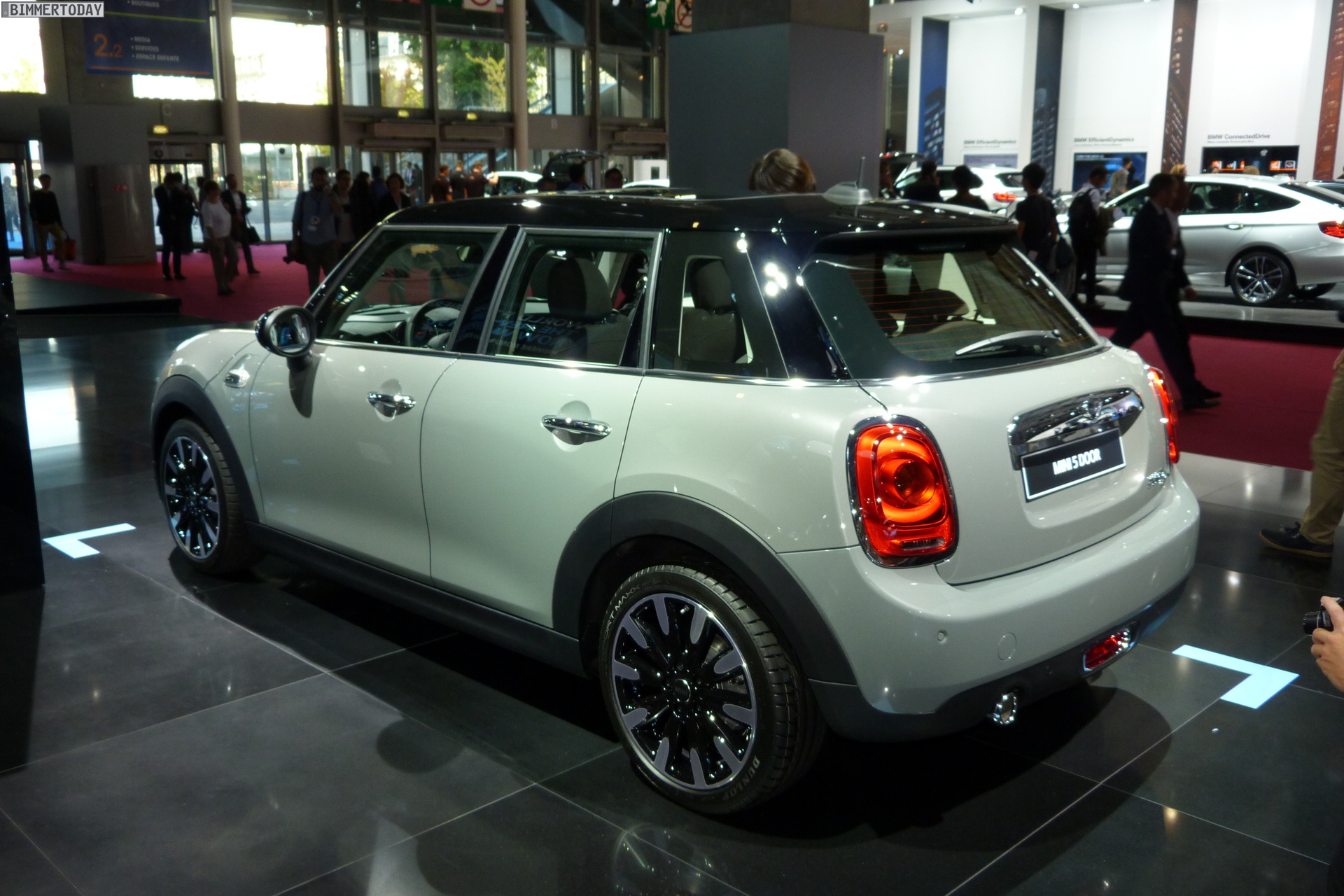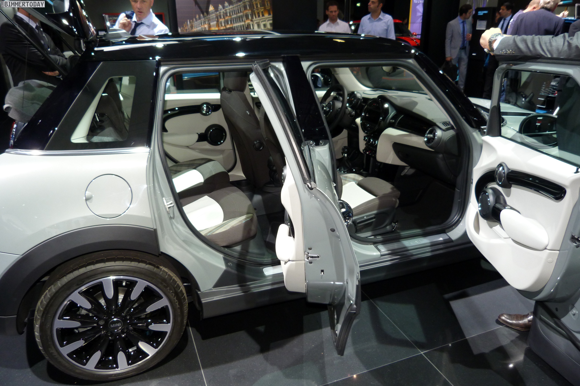 Eine weitere Weltpremiere der BMW Group auf dem Autosalon Paris 2014 steht wenige Meter vom BMW-Stand entfernt: Der neue MINI Fünftürer F55 steht in verschiedenen Farben auf dem Messestand der Briten und zeigt aus allen Perspektiven, dass er ein echter MINI ist. Obwohl seine Proportionen und Formen ganz klar die Sprache des MINI Hatch sprechen, ist er auch erkennbar anders – ohne allerdings das Gesamtbild nachhaltig zu stören.