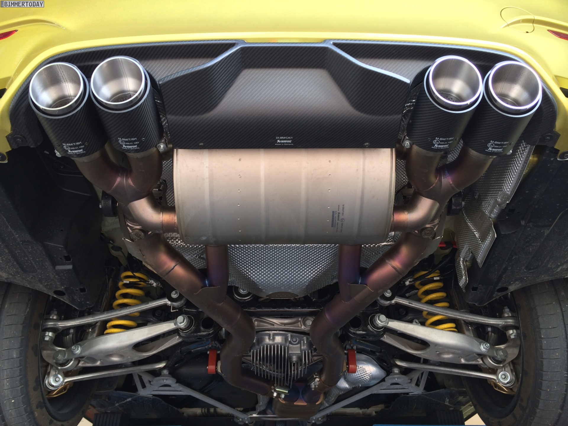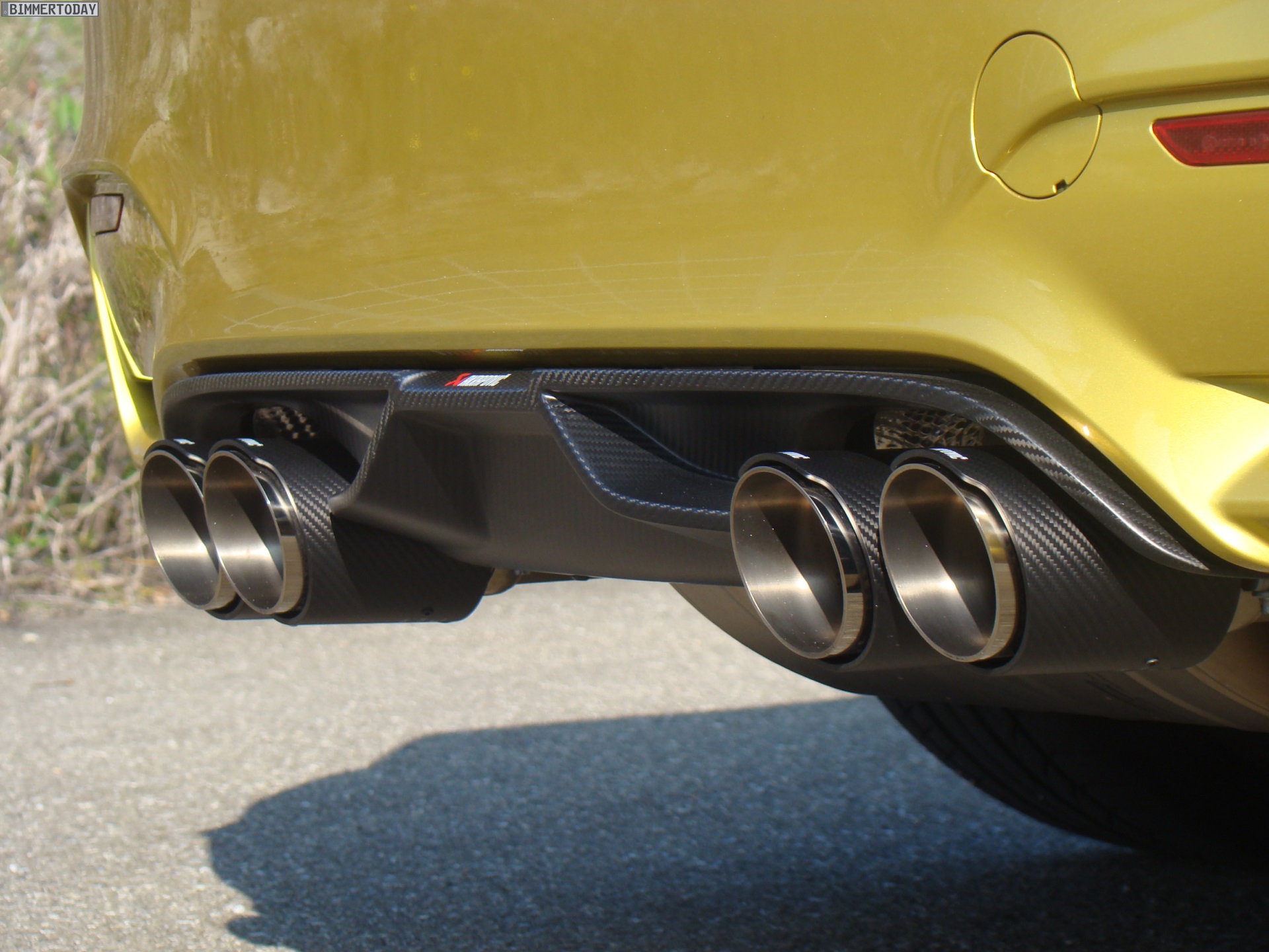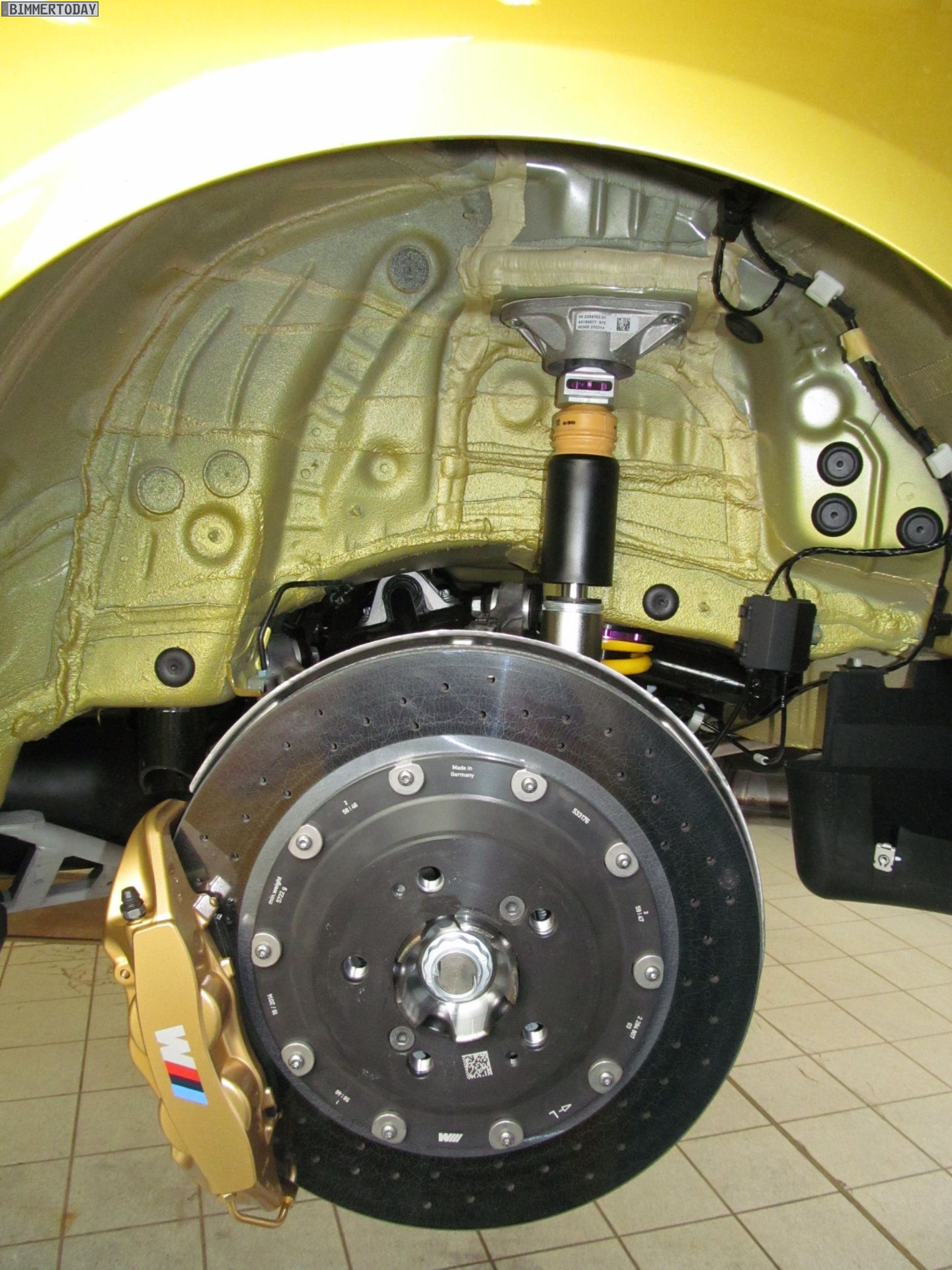 Aerodynamik und Optik profitieren darüber hinaus von den BMW M Performance Tuning-Anbauteilen, die wir bisher nicht in Kombination mit der Außenfarbe Austin Yellow zu Gesicht bekommen haben – Fotos eines weißen M Performance-M4 mit farbiger Dekor-Beklebung haben wir aber bereits vor einigen Wochen gezeigt.