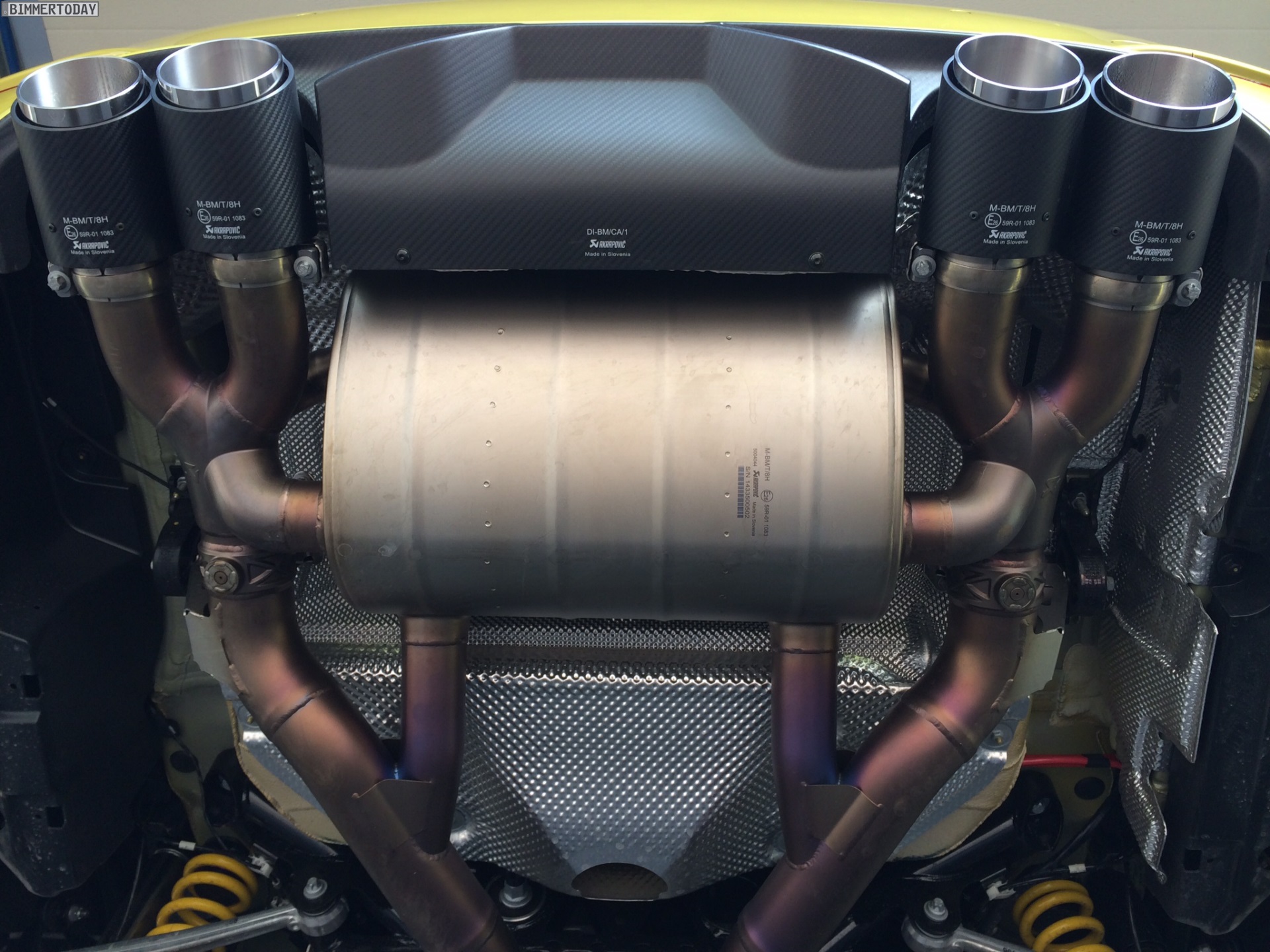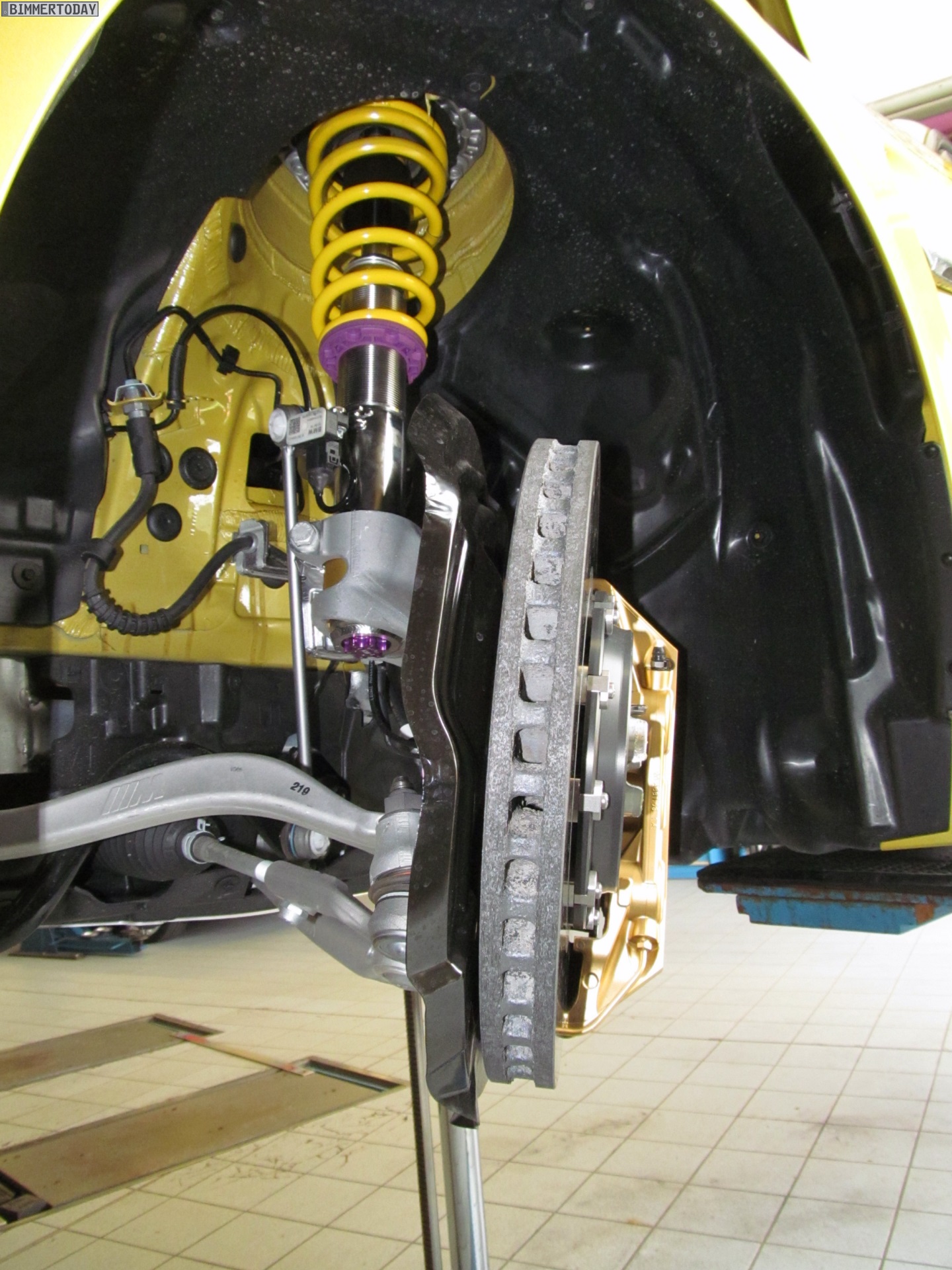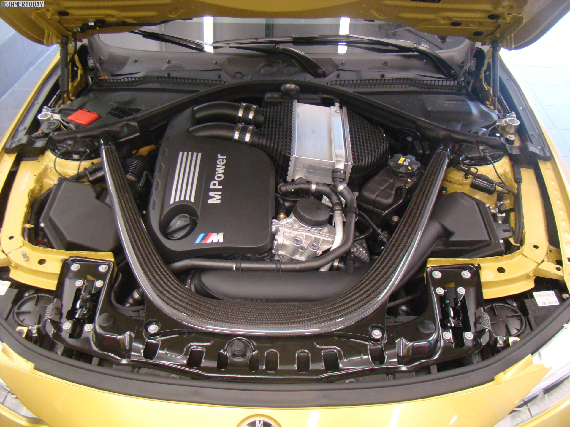 Aerodynamik und Optik profitieren darüber hinaus von den BMW M Performance Tuning-Anbauteilen, die wir bisher nicht in Kombination mit der Außenfarbe Austin Yellow zu Gesicht bekommen haben – Fotos eines weißen M Performance-M4 mit farbiger Dekor-Beklebung haben wir aber bereits vor einigen Wochen gezeigt.