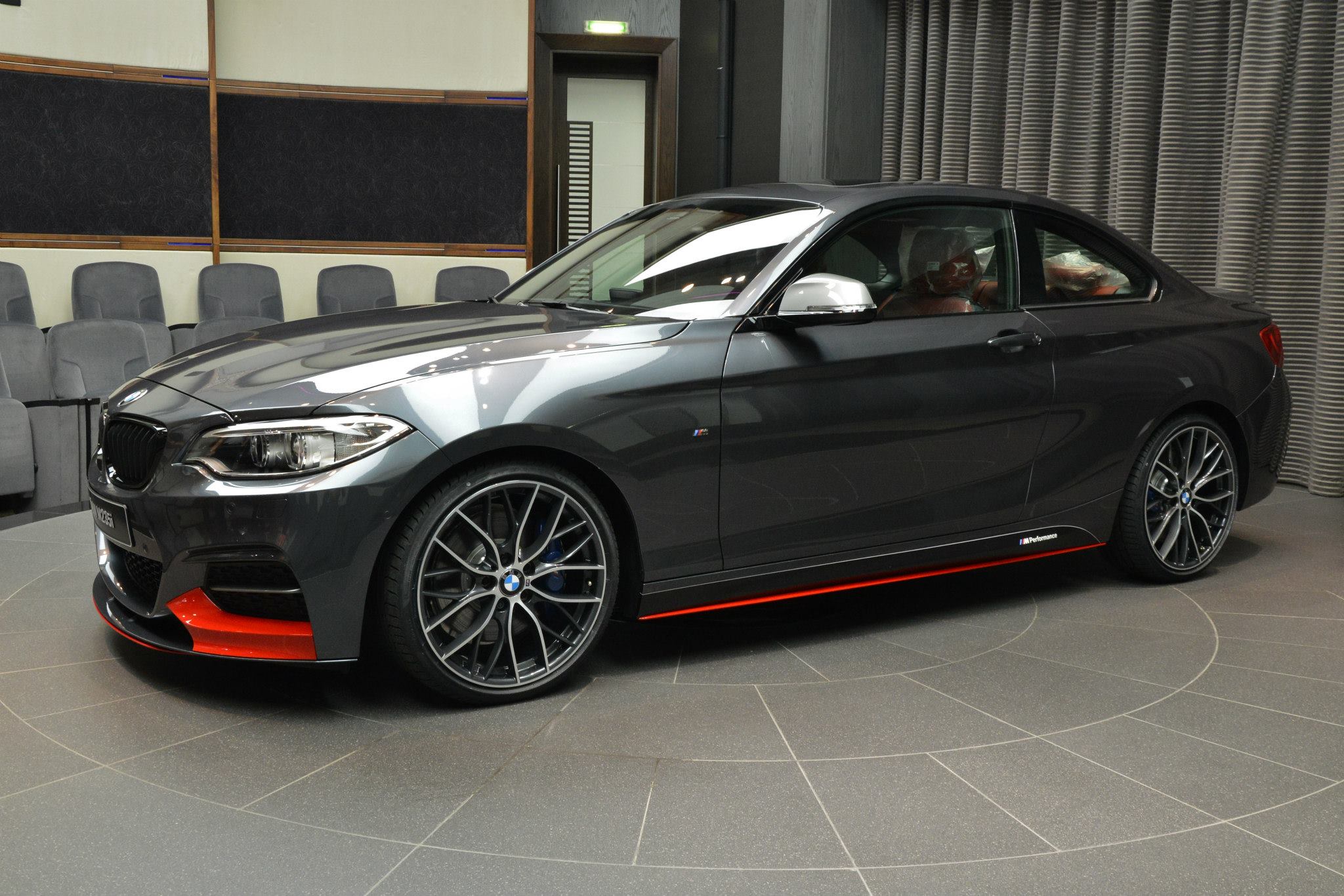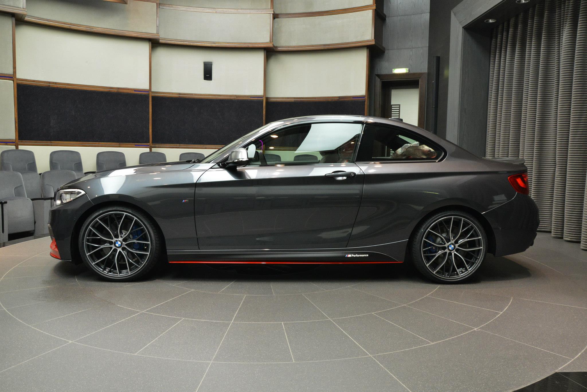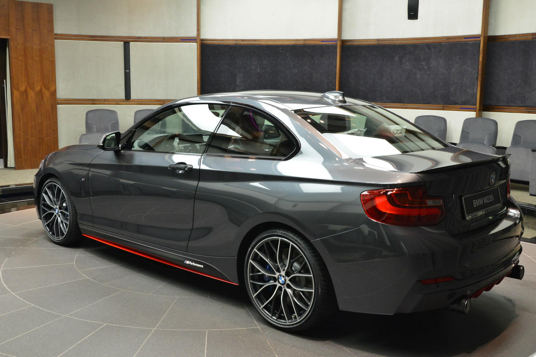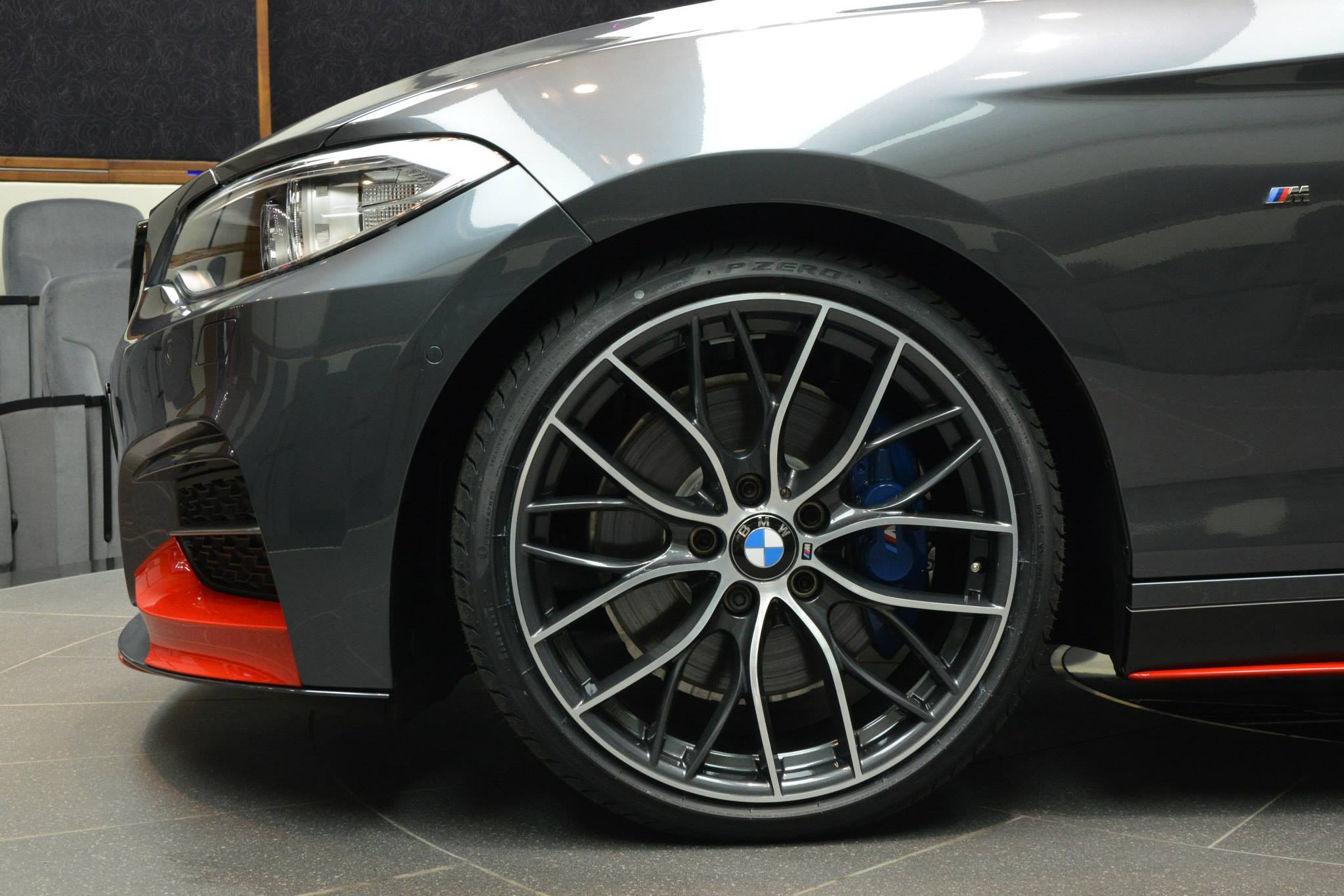 Was ein wenig Farbe alles bewirken kann: BMW Abu Dhabi Motors zeigt uns am Beispiel eines BMW M235i Coupé, wie groß der Einfluss einiger roter Akzente auf den gesamten Auftritt des Fahrzeugs sein kann. Als Foto-Motiv dient ein BMW M235i Coupé mit Tuning-Zubehör von BMW M Performance, die Lackierung in Mineralgrau Metallic wird dabei mit einigen roten Elementen in unmittelbarer Nähe zum Asphalt aufgelockert.