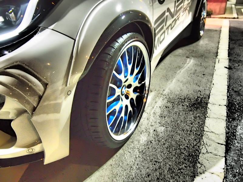 Die deutlich verbreiterten Radhäuser schaffen Platz für größere Felgen mit erheblich breiteren Reifen, so gerüstet dürfte der BMW i3 EVO höhere Kurvengeschwindigkeiten erreichen und auf kurvigen Straßen noch mehr Spaß machen.