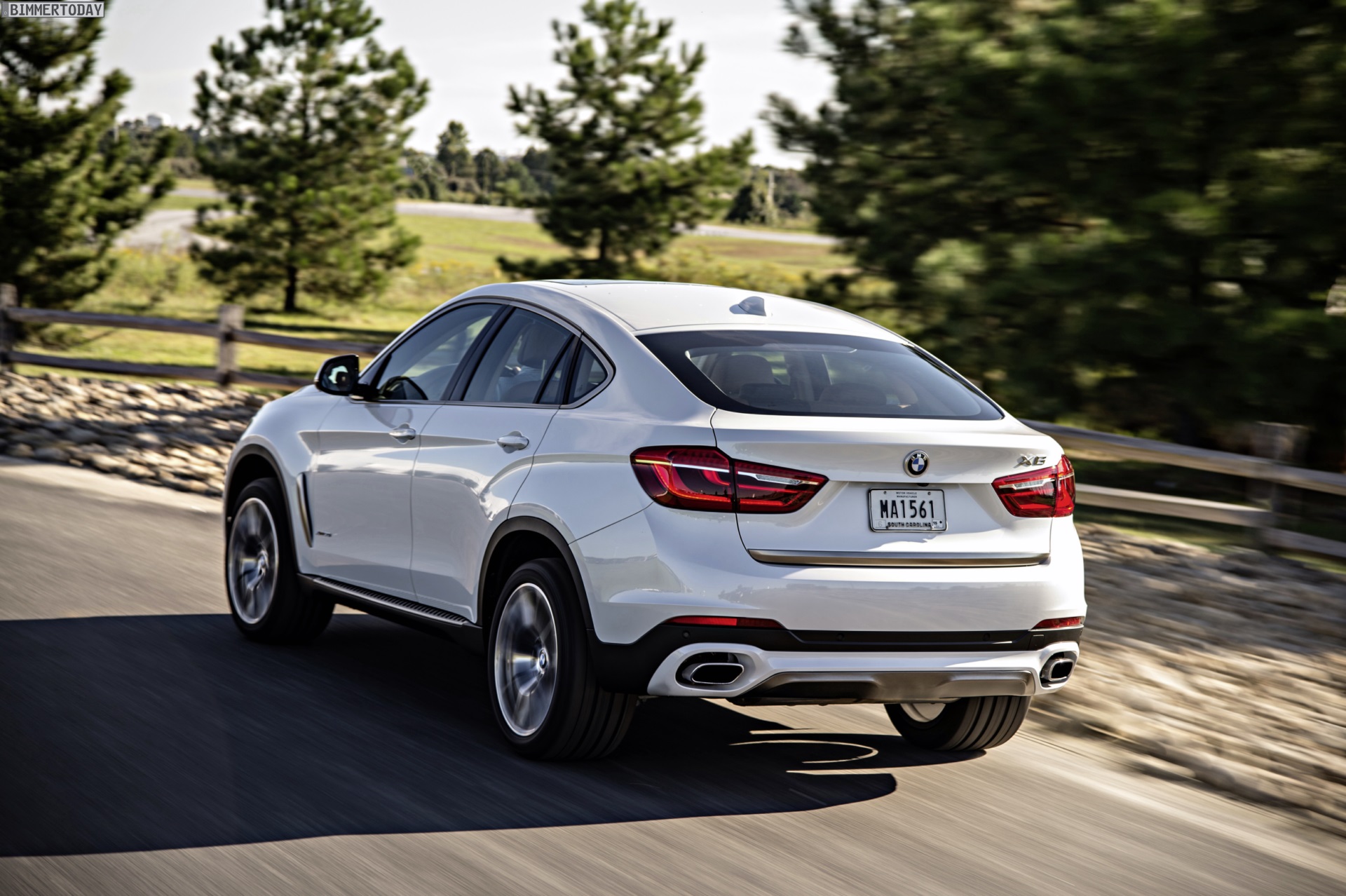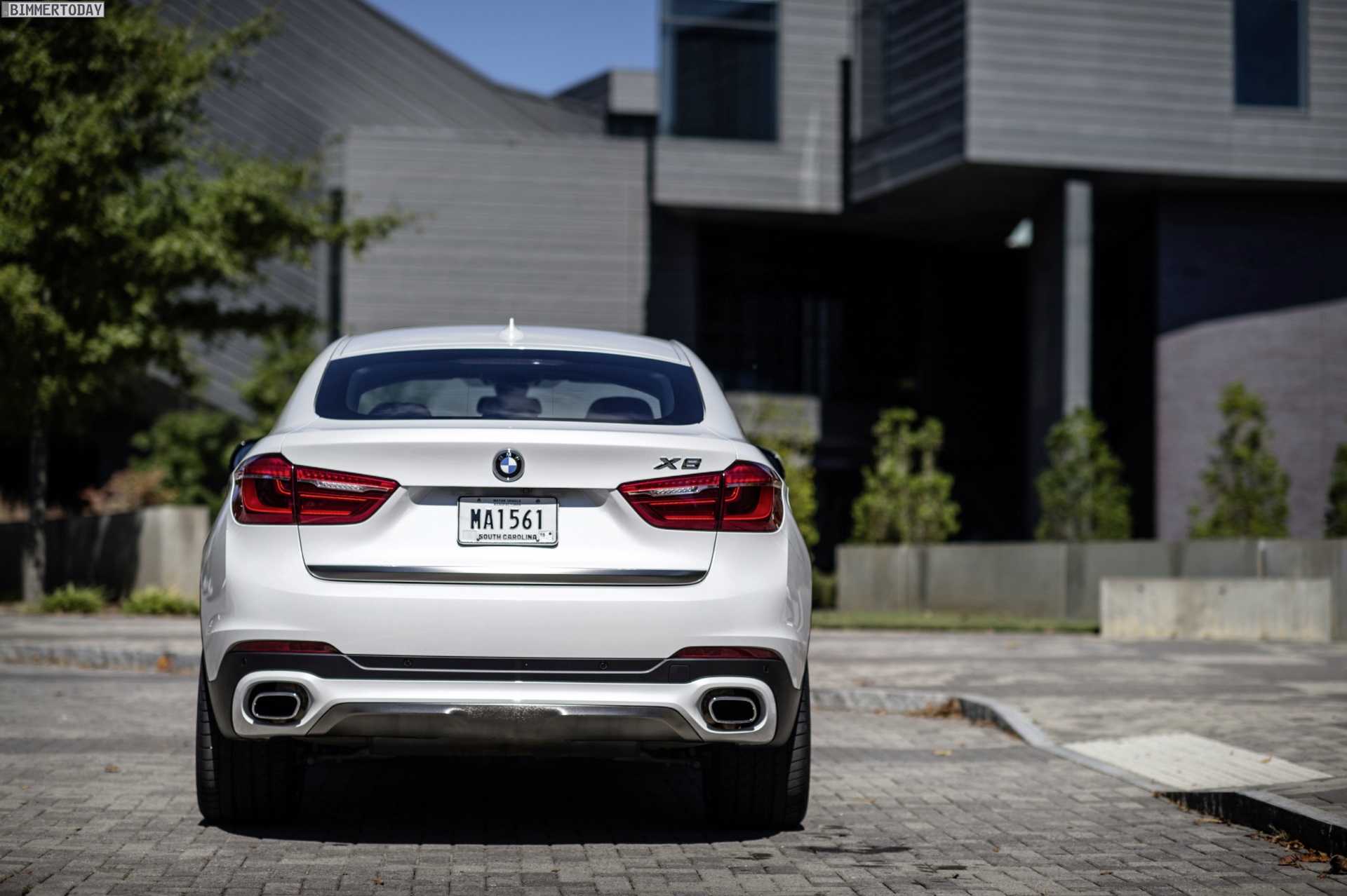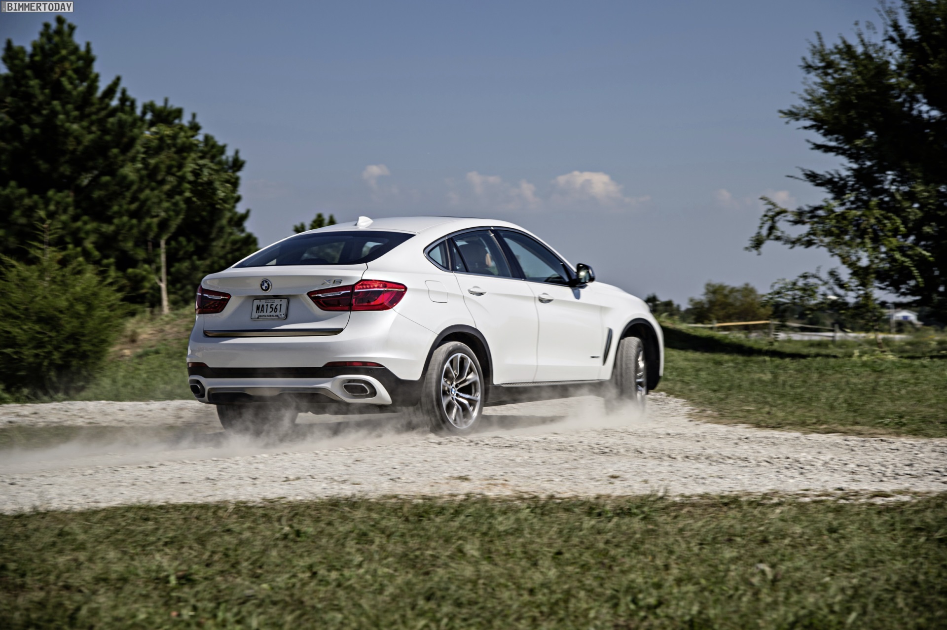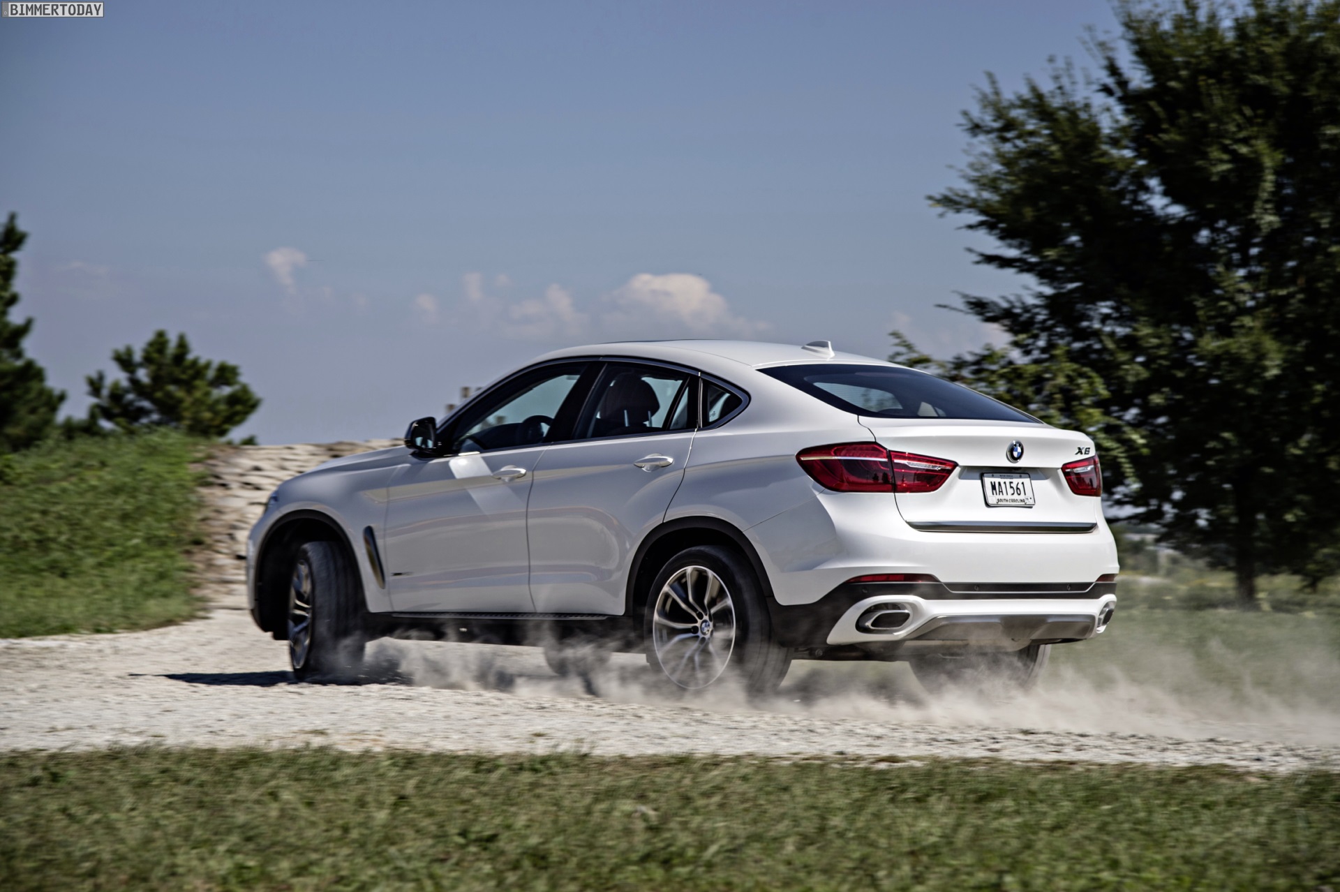 Noch mehr Eindrücke vom neuen BMW X6 F16 liefern zahlreiche zusätzliche Fotos aus Spartanburg. Im Fokus steht nun ein BMW X6 xDrive50i mit Design Pure Extravagance Paket und einer Lackierung in Mineralweiß Metallic. Die weiße Farbe sorgt zwar dafür, dass einige silberne Elemente des Ausstattungspakets in den Hintergrund rücken, betont aber die eleganten Linien der zweiten X6-Generation.