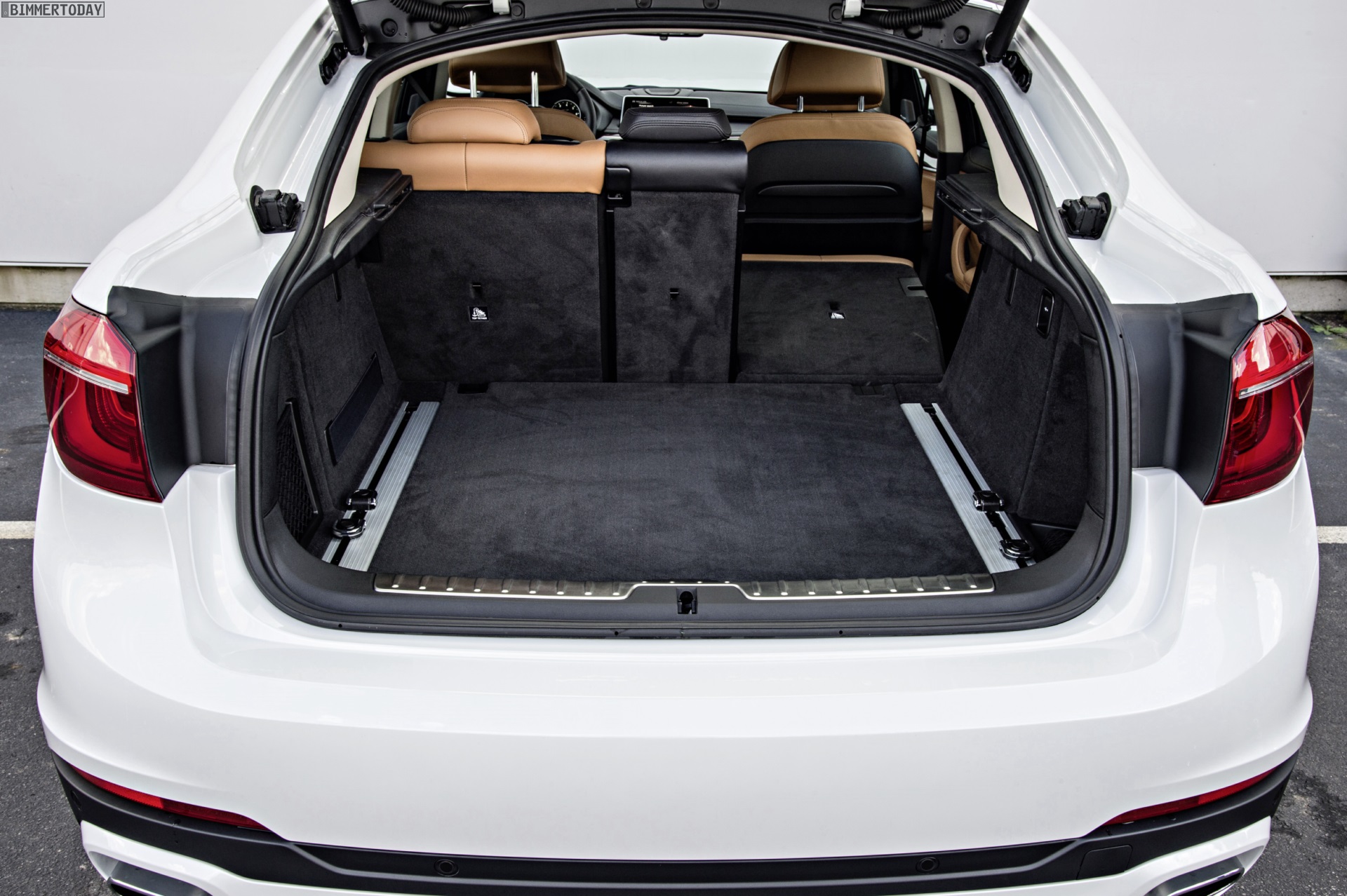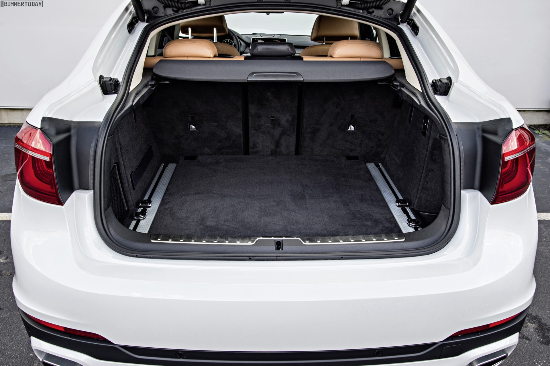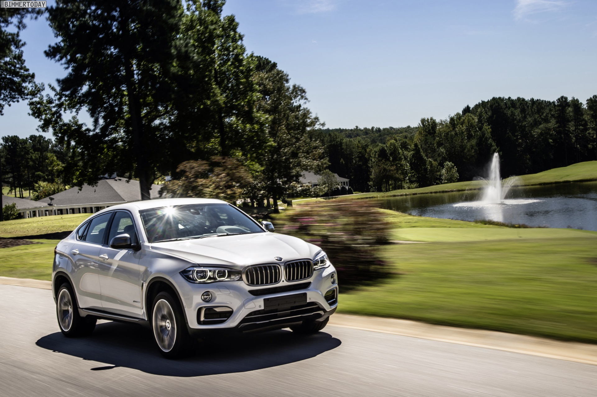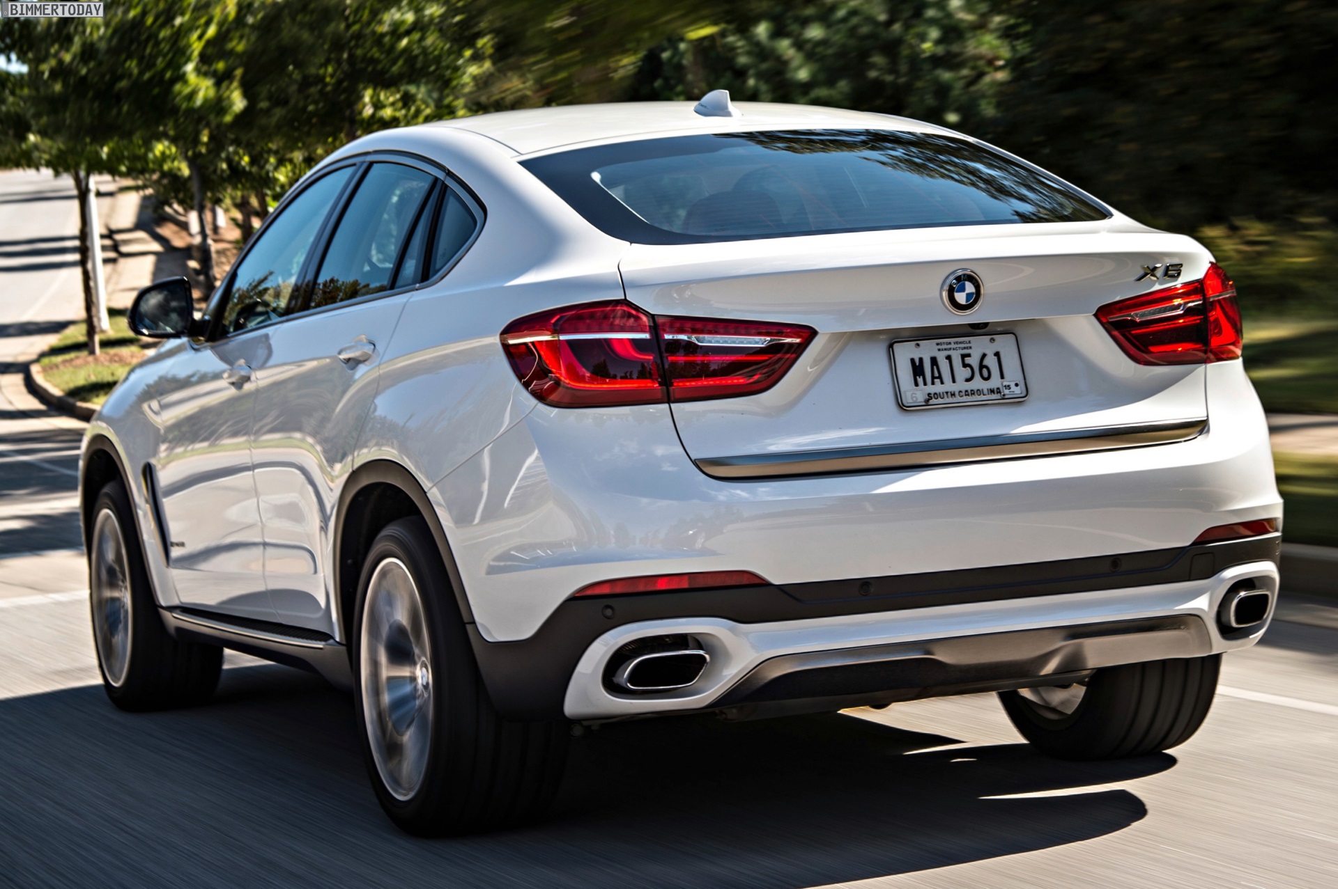 Noch mehr Eindrücke vom neuen BMW X6 F16 liefern zahlreiche zusätzliche Fotos aus Spartanburg. Im Fokus steht nun ein BMW X6 xDrive50i mit Design Pure Extravagance Paket und einer Lackierung in Mineralweiß Metallic. Die weiße Farbe sorgt zwar dafür, dass einige silberne Elemente des Ausstattungspakets in den Hintergrund rücken, betont aber die eleganten Linien der zweiten X6-Generation.