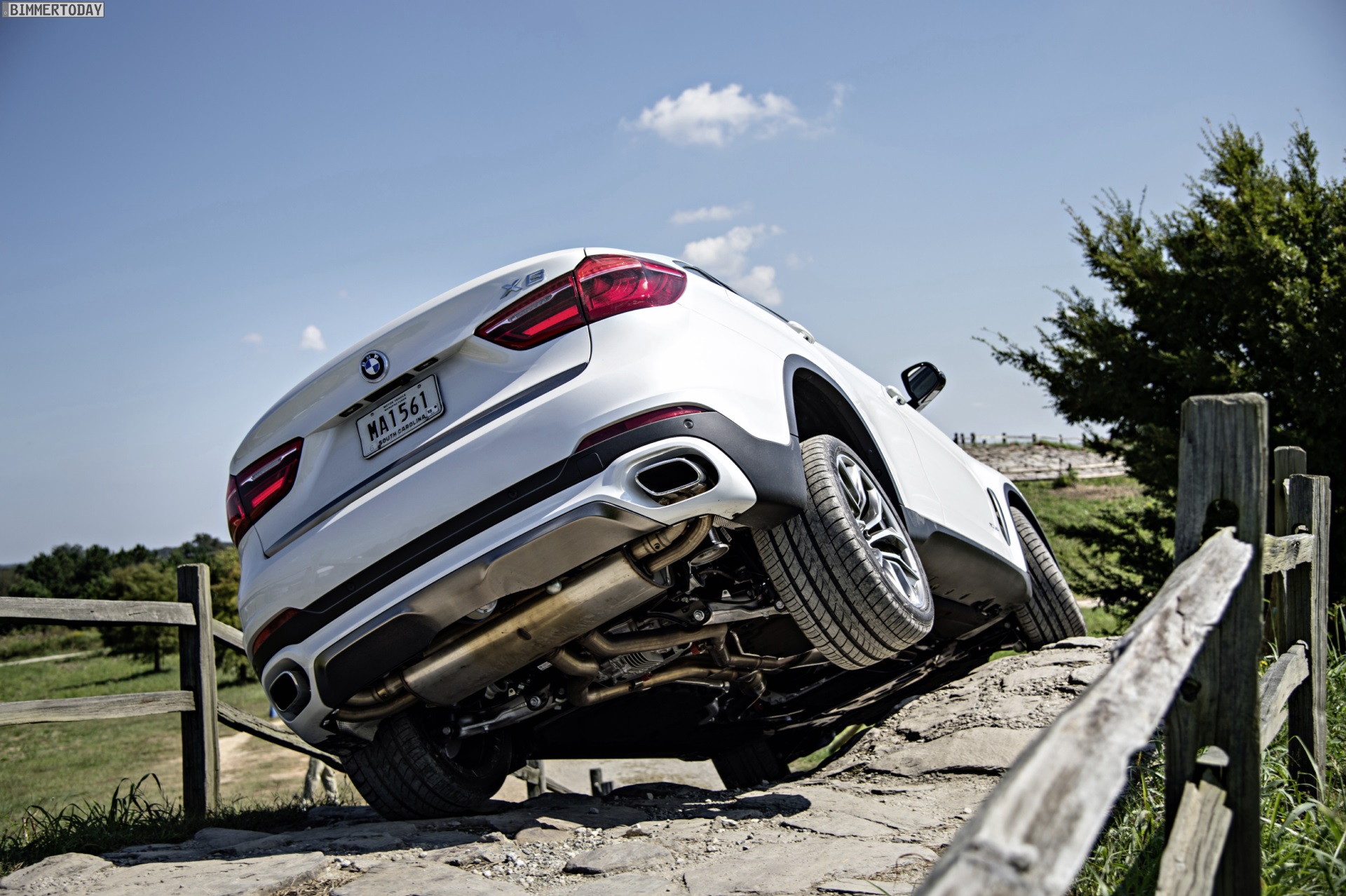 Wie schon auf den Fotos zum BMW X6 M50d in Flamencorot sehen wir nun auch den knapp 70 PS stärkeren BMW X6 xDrive50i auf den Straßen rund um Spartanburg und auf dem nahegelegenen Offroad-Gelände – schließlich ist der BMW X6 trotz seiner Orientierung in Richtung Lifestyle und Asphalt-Performance noch immer ein SUV, das nicht nur auf befestigten Straßen bewegt werden kann.