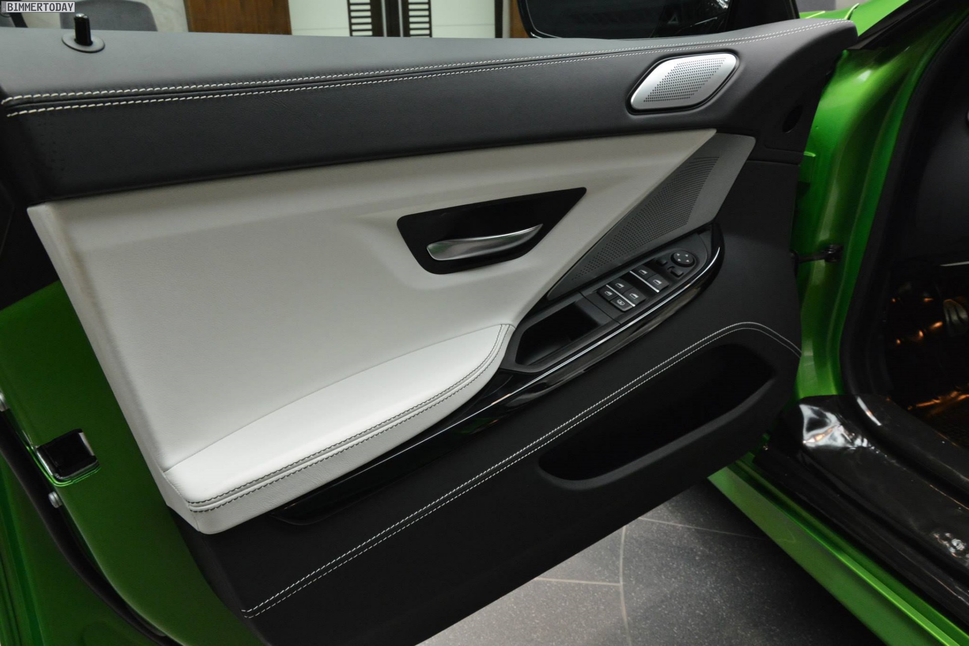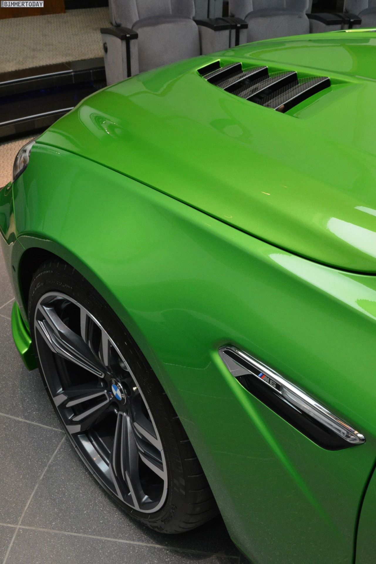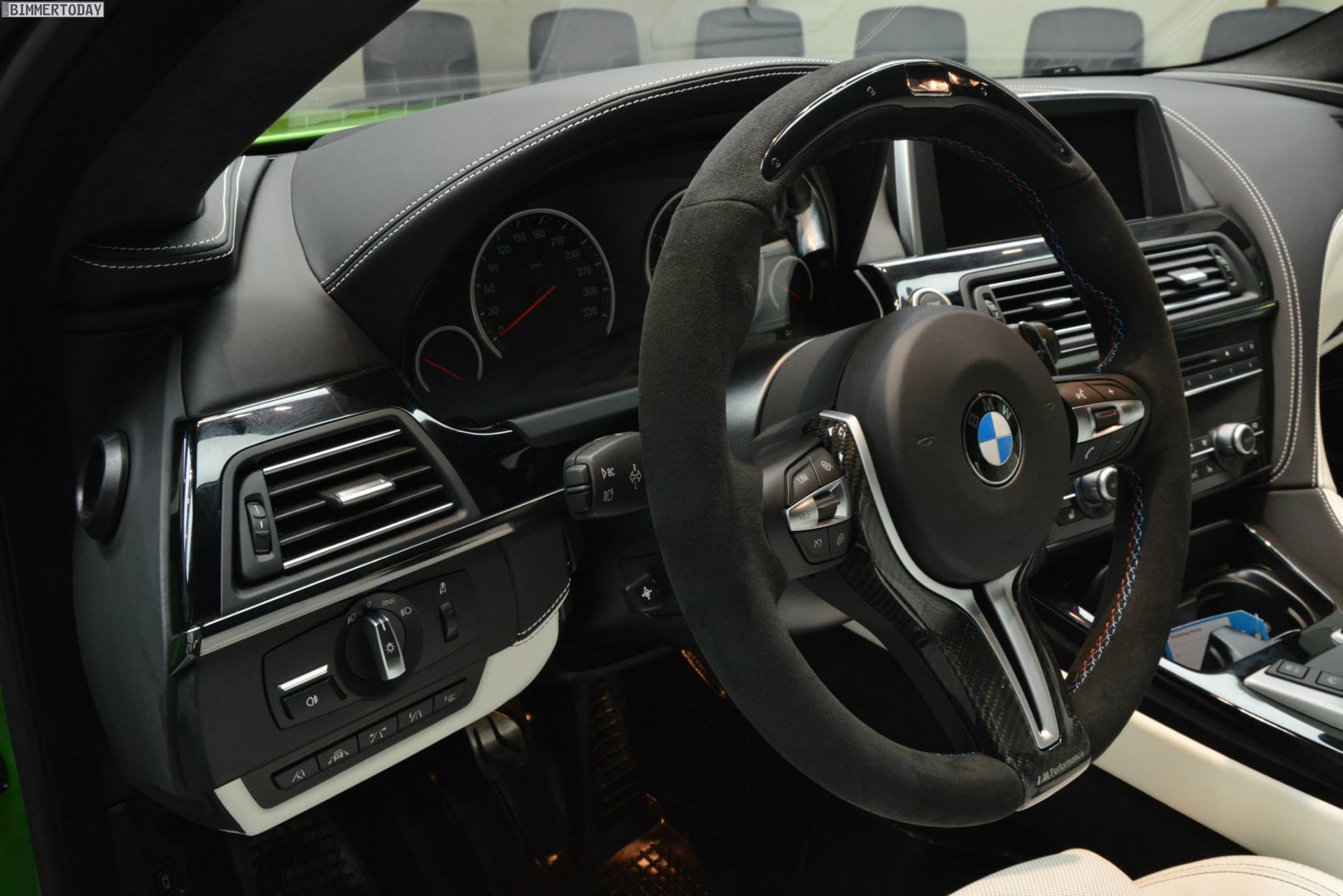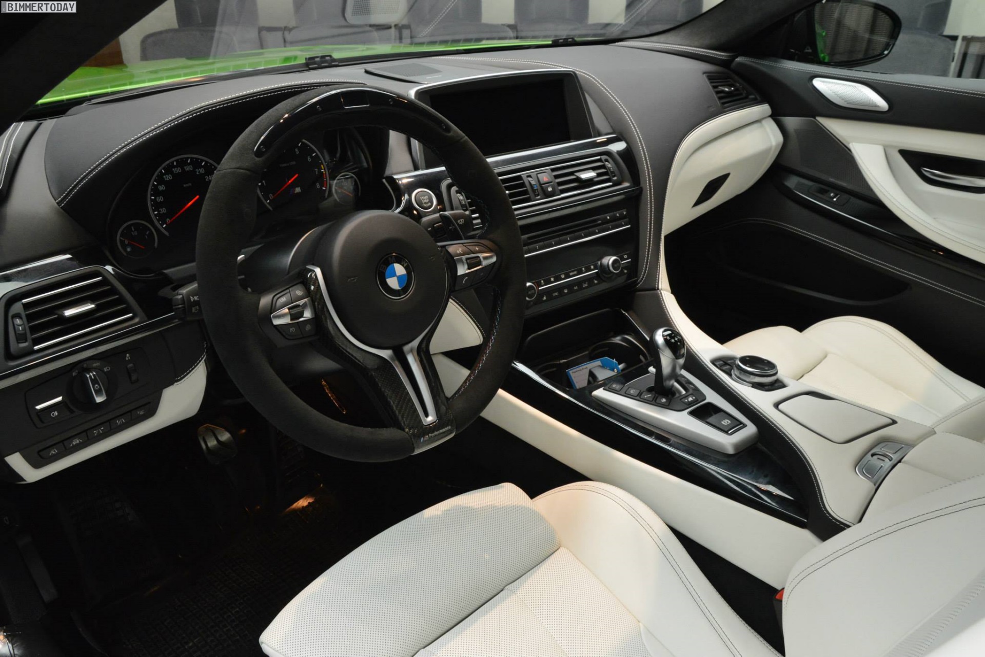 Weiter betont wird der sportliche Charakter durch Bauteile diverser Tuner – angefangen von der Manhart Performance Carbon-Motorhaube samt Entlüftungsöffnungen über den Frontschürzen-Aufsatz von Kelleners Sport bis hin zu Heckspoiler und Diffusor von BMW M Performance. Eine Sport-Abgasanlage von Akrapovic sowie Außenspiegelkappen und Dach aus Carbon runden den extrovertierten Auftritt ab.