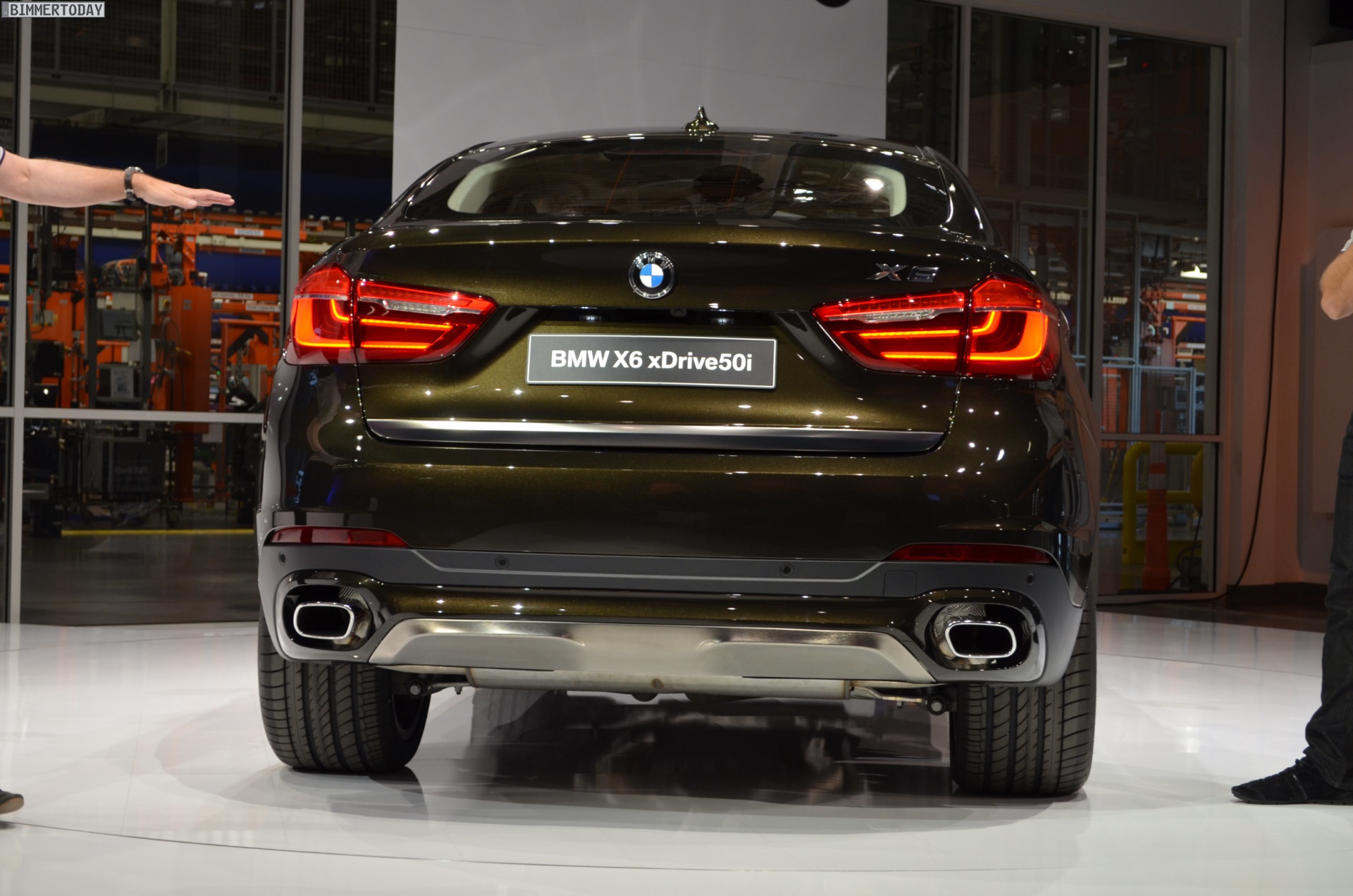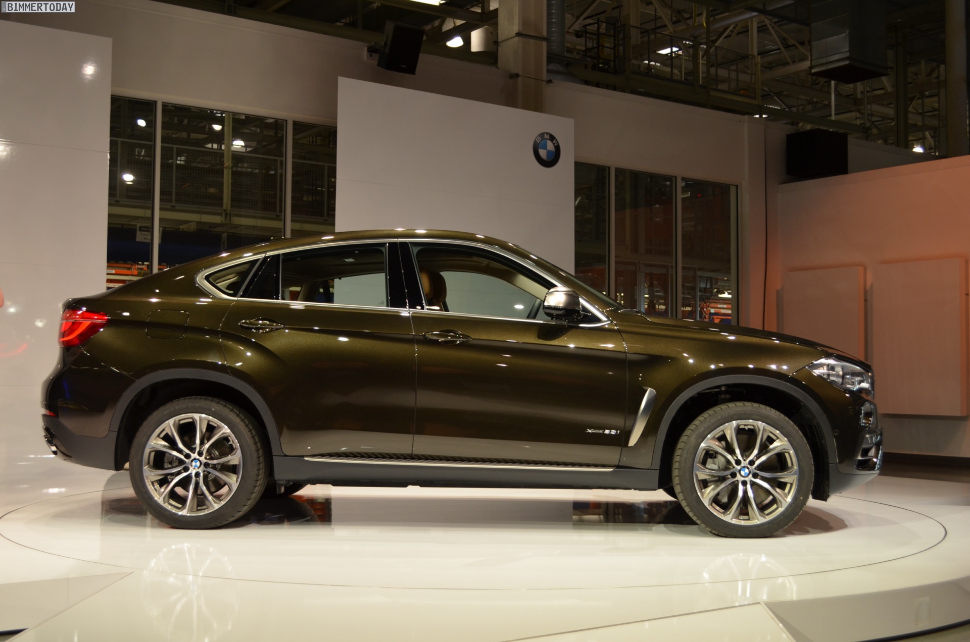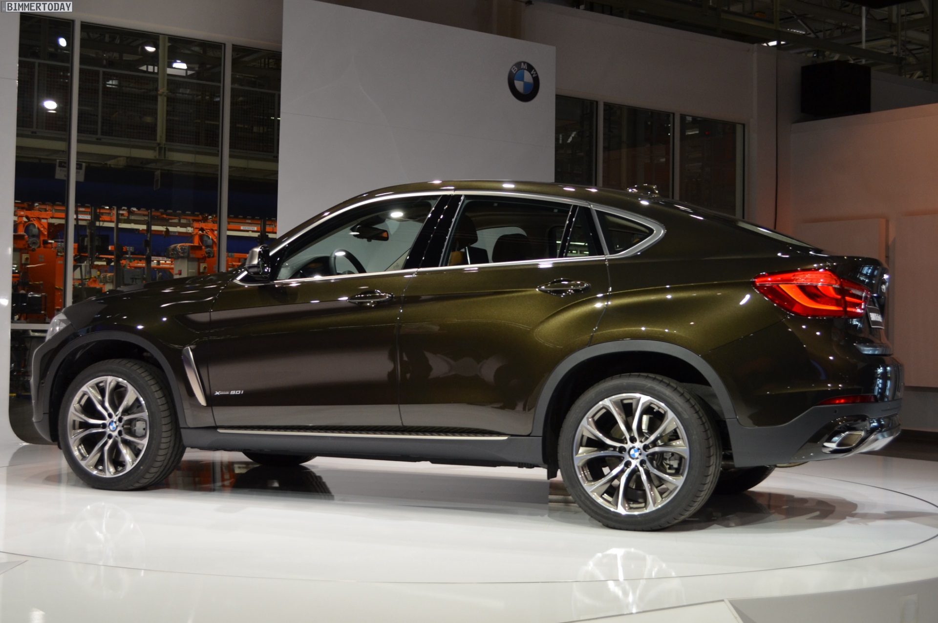 Bei der Premiere in Spartanburg wurde ein gleichermaßen exklusiv und extrovertiert auftretendes Exemplar des BMW X6 F16 präsentiert – der auf den folgenden Bildern gezeigte Offroader trägt das Ausstattungspaket Design Pure Extravagance samt 20 Zoll großen Leichtmetallrädern V-Speiche 597, die genannte Lackierung in Sparkling Storm Brillanteffekt und einen 450 PS starken V8-Biturbo unter der Haube: