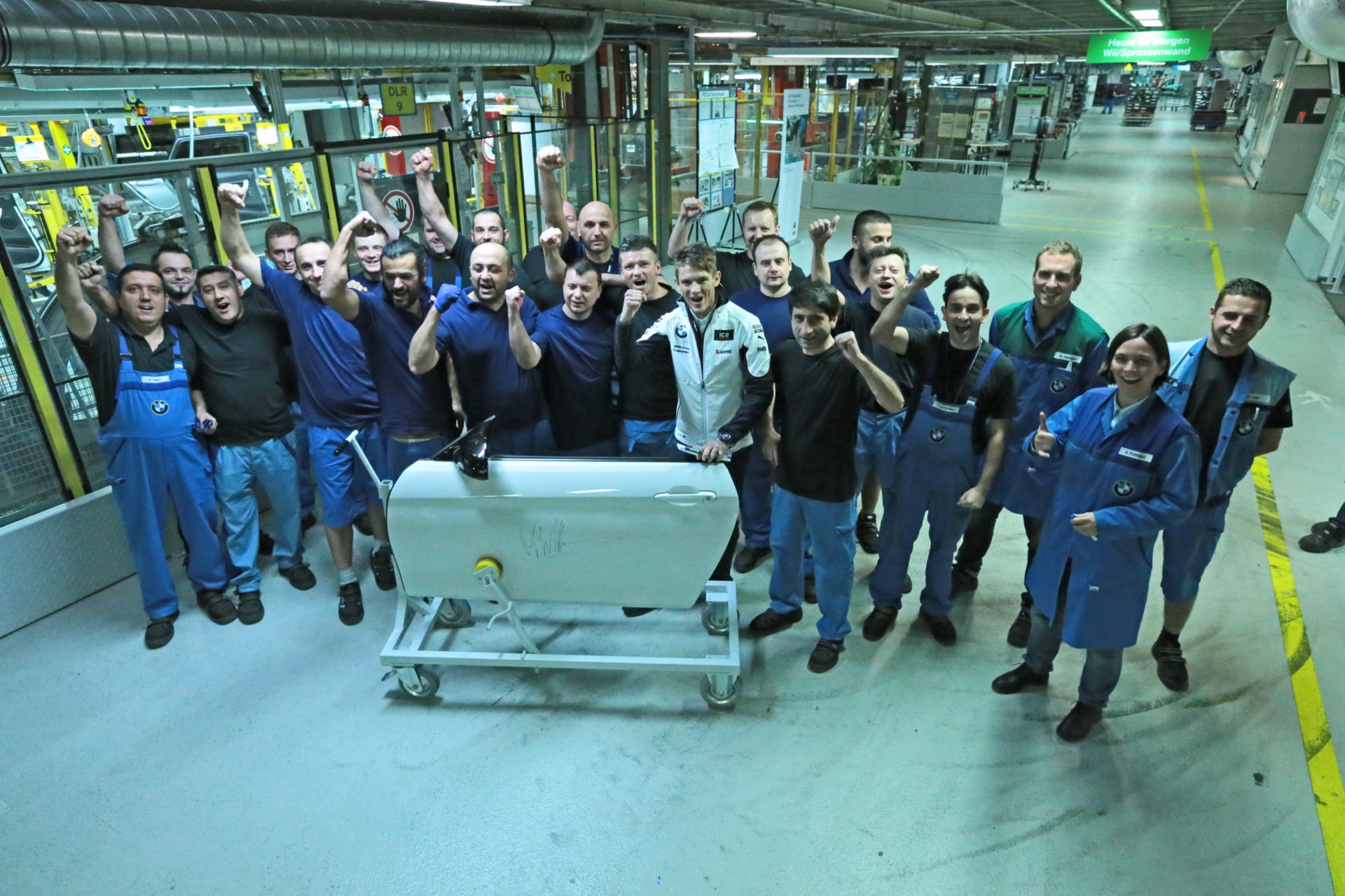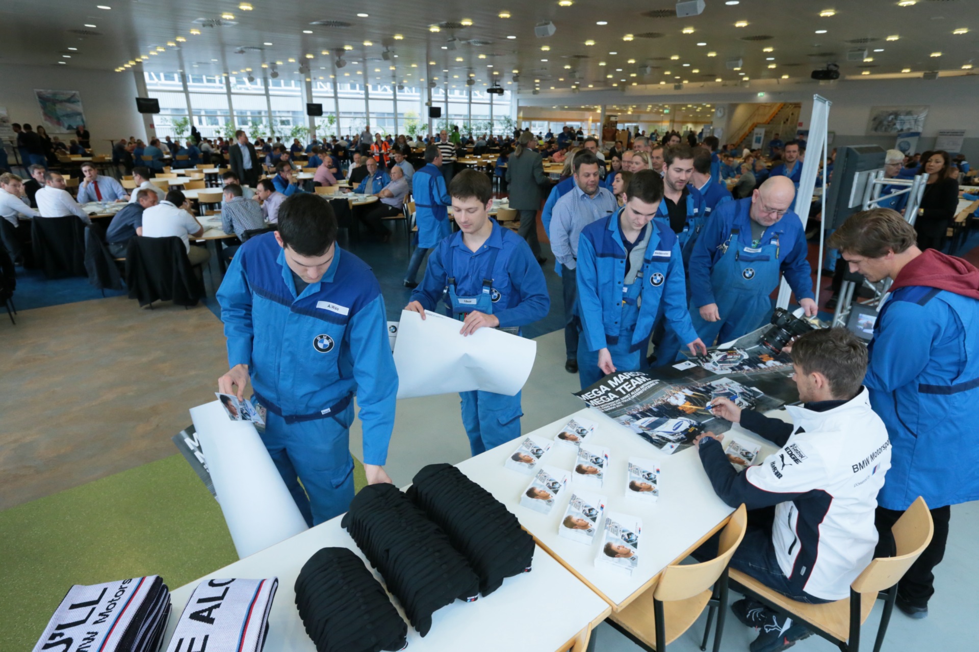 Der gelernte Karosseriebauer Marco Wittmann konnte im Werk einige interessante Einblicke sammeln und gab den Kollegen im Gegenzug eine Autogrammstunde im Betriebsrestaurant.