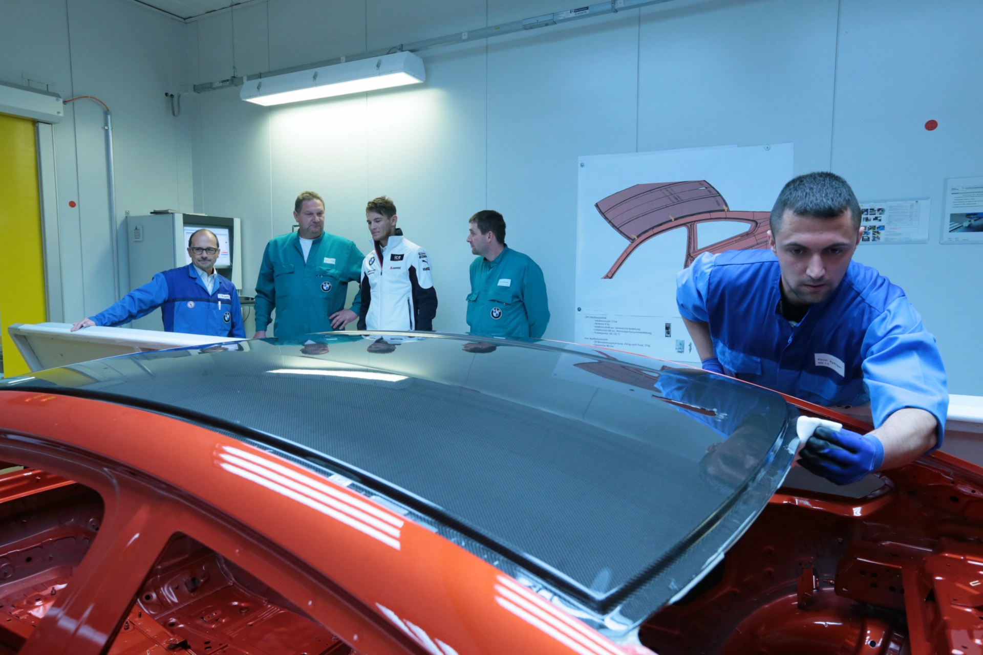 Als frisch gebackener DTM-Champion hat Marco Wittmann heute das BMW Werk München und das BMW FIZ im Norden der Stadt besucht. Im Werk machte sich Wittmann ein Bild von der Produktion und durfte dabei auch eines der ersten Exemplare der BMW M4 DTM Champion Edition begutachten. Besonderes Highlight beim Bau aller BMW M4 F82 ohne Schiebedach ist die Montage des Carbon-Dachs.