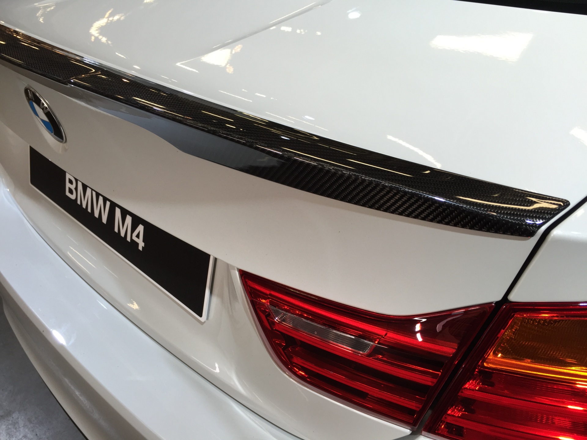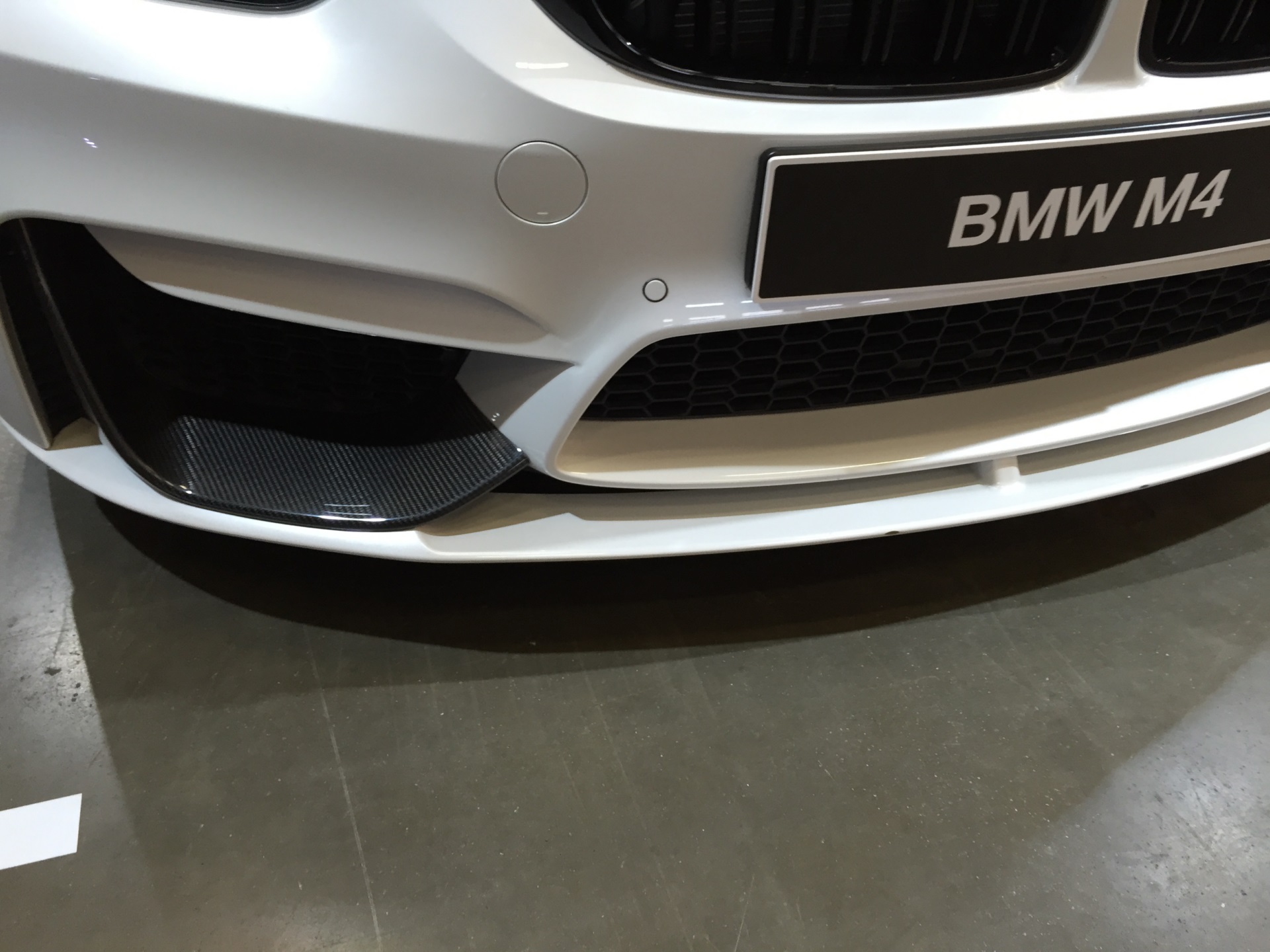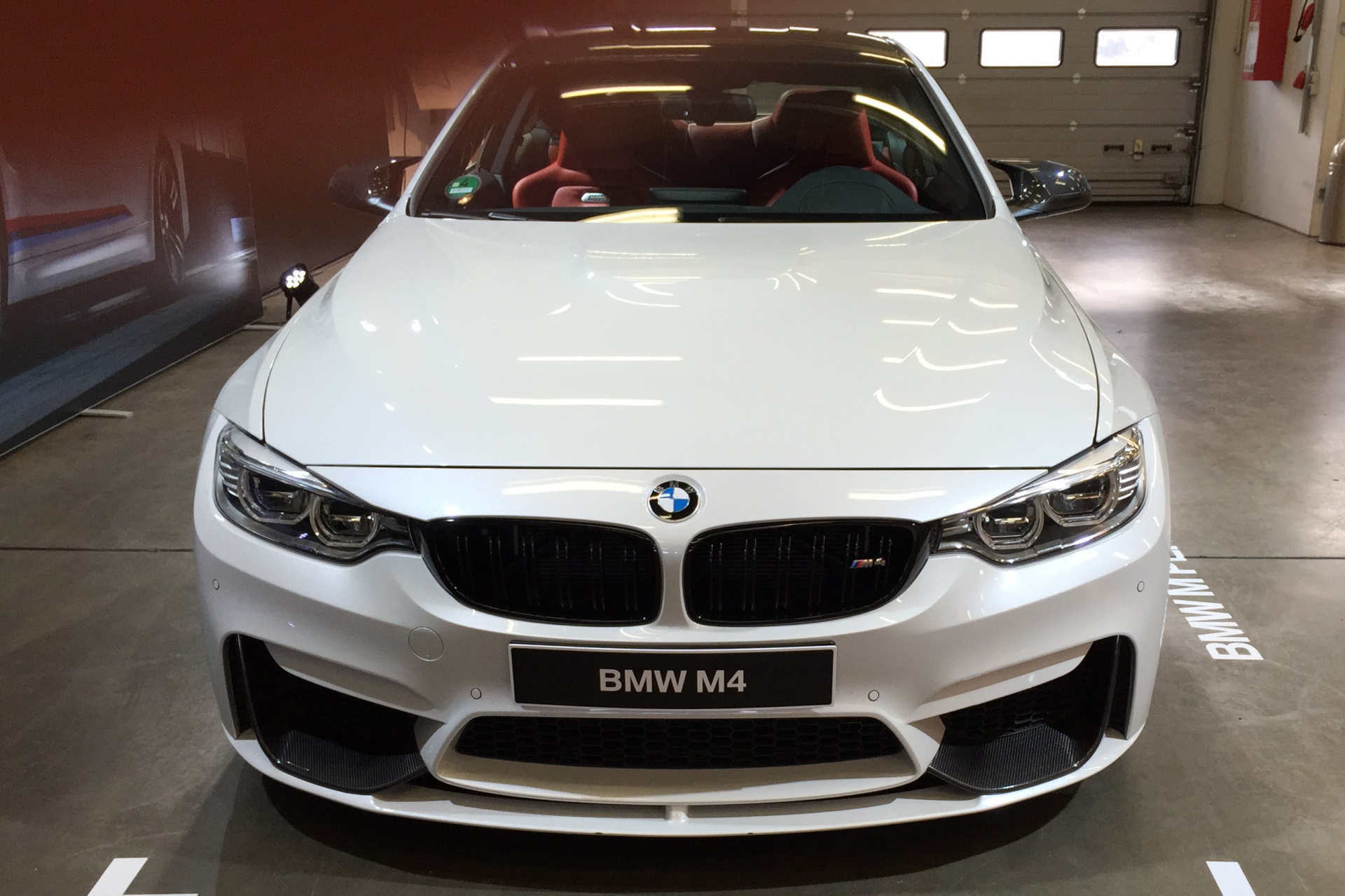 Einer unserer Leser liefert nun weitere Bilder, die ein weißes BMW M4 Coupé mit den zum Teil aus Sicht-Carbon gefertigten Teilen zeigen – im Vergleich mit der ursprünglich am Nürburgring präsentierten Version samt Dekor-Beklebung in den Farben der BMW M GmbH wirkt das Fahrzeug dadurch etwas zurückhaltender, ohne an Aggressivität einzubüßen.