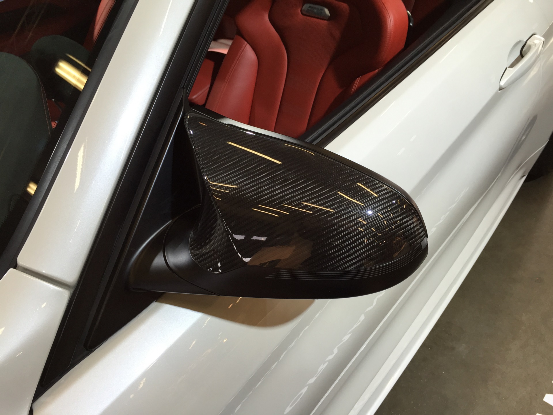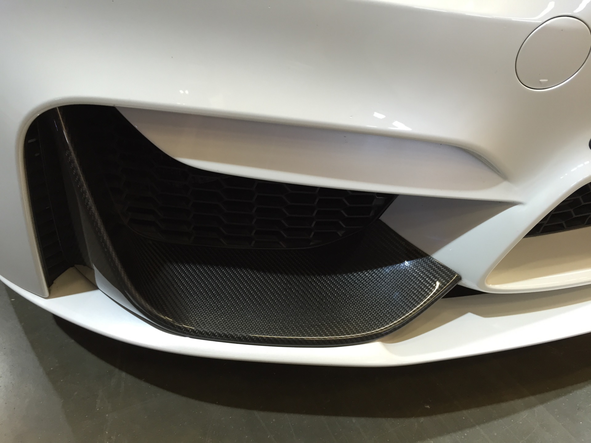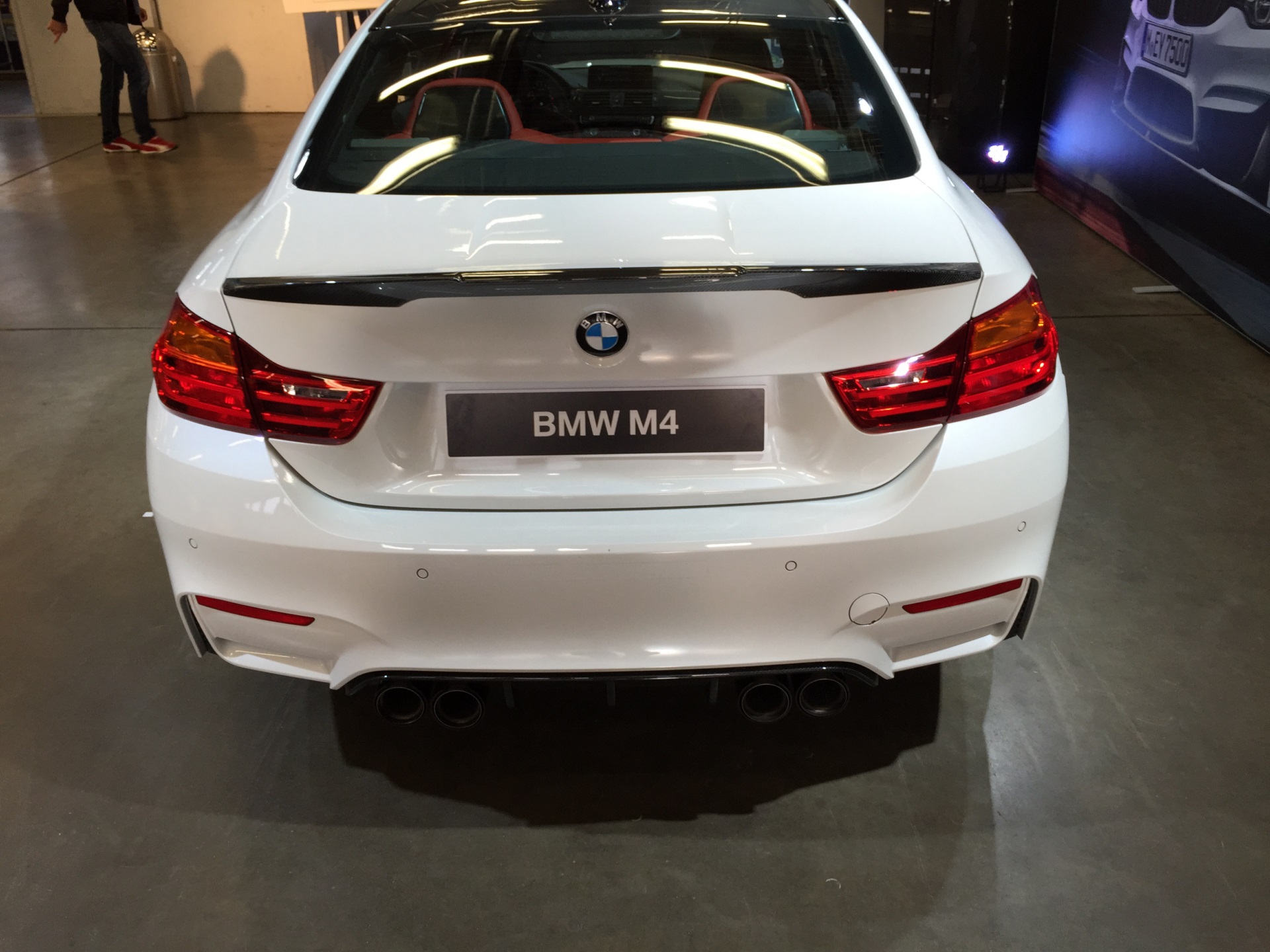 Einer unserer Leser liefert nun weitere Bilder, die ein weißes BMW M4 Coupé mit den zum Teil aus Sicht-Carbon gefertigten Teilen zeigen – im Vergleich mit der ursprünglich am Nürburgring präsentierten Version samt Dekor-Beklebung in den Farben der BMW M GmbH wirkt das Fahrzeug dadurch etwas zurückhaltender, ohne an Aggressivität einzubüßen.