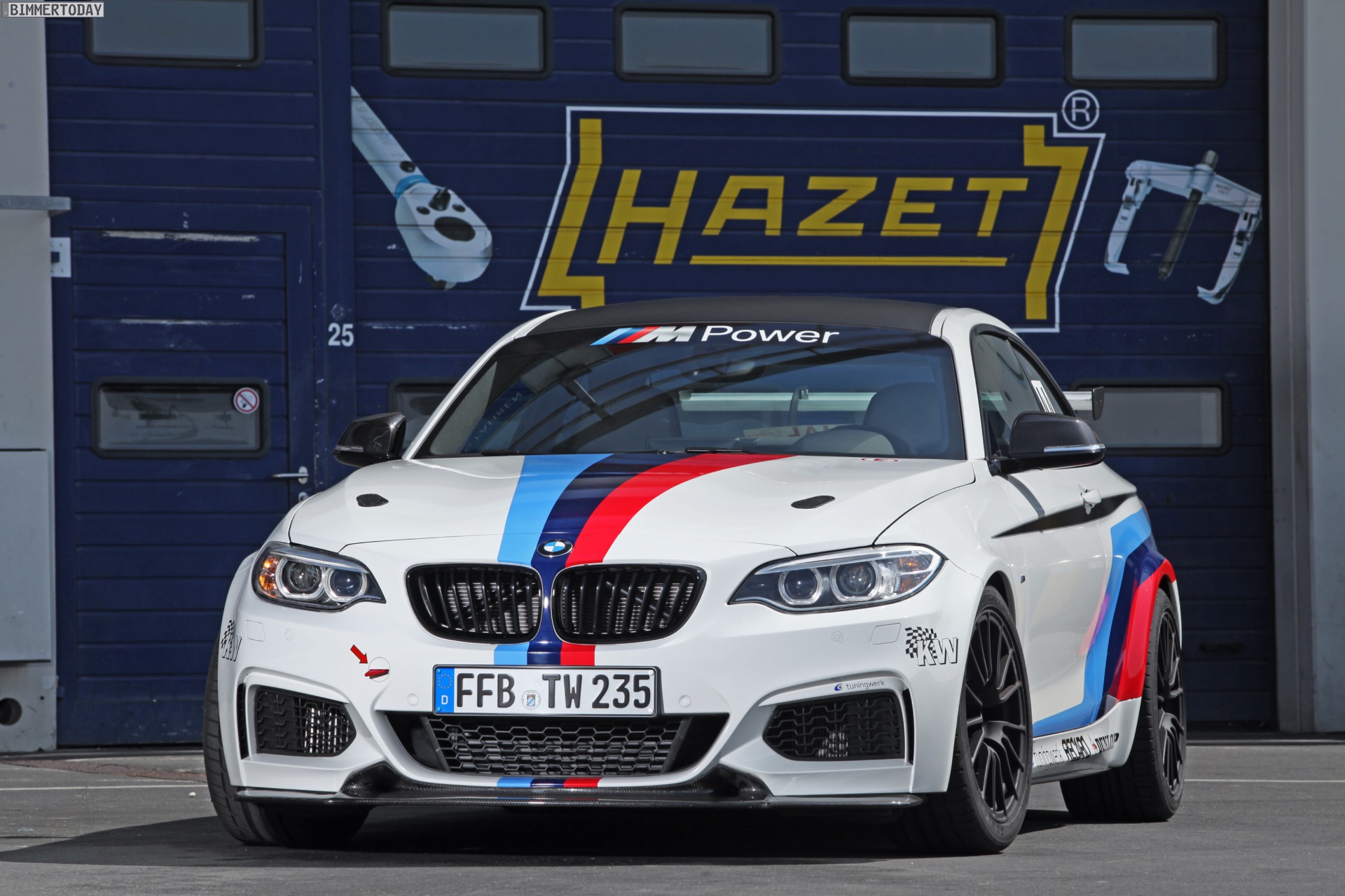 Wer nicht auf den BMW M2 F87 warten will und den M235i im Serientrimm zu brav findet, kann sich bei diversen Tunern helfen lassen. Eine nicht nur optisch herausragende Stellung nimmt dabei der BMW M235i RS von tuningwerk ein, denn der Kompaktsportler wurde mit einem vollständigen BMW Motorsport-Look ausgestattet und dürfte manchen flüchtigen Betrachter an den BMW M235i Racing erinnern – allerdings um einen riesigen Heckflügel ergänzt.