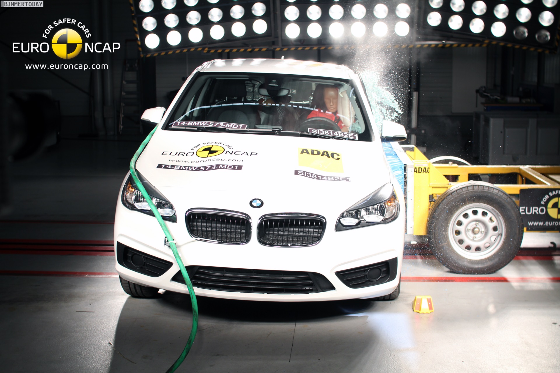 Mit der Bestnote von 5 Sternen hat der BMW 2er Active Tourer den Euro NCAP Crashtest gemeistert. Der erste Fronttriebler von BMW war gleichzeitig das erste Fahrzeug auf der neuen BMW UKL-Architektur, das sich dem europäischen Crashtest-Format stellen musste und damit einen Eindruck von der Sicherheit kommender Modelle auf UKL-Basis liefern dürfte.