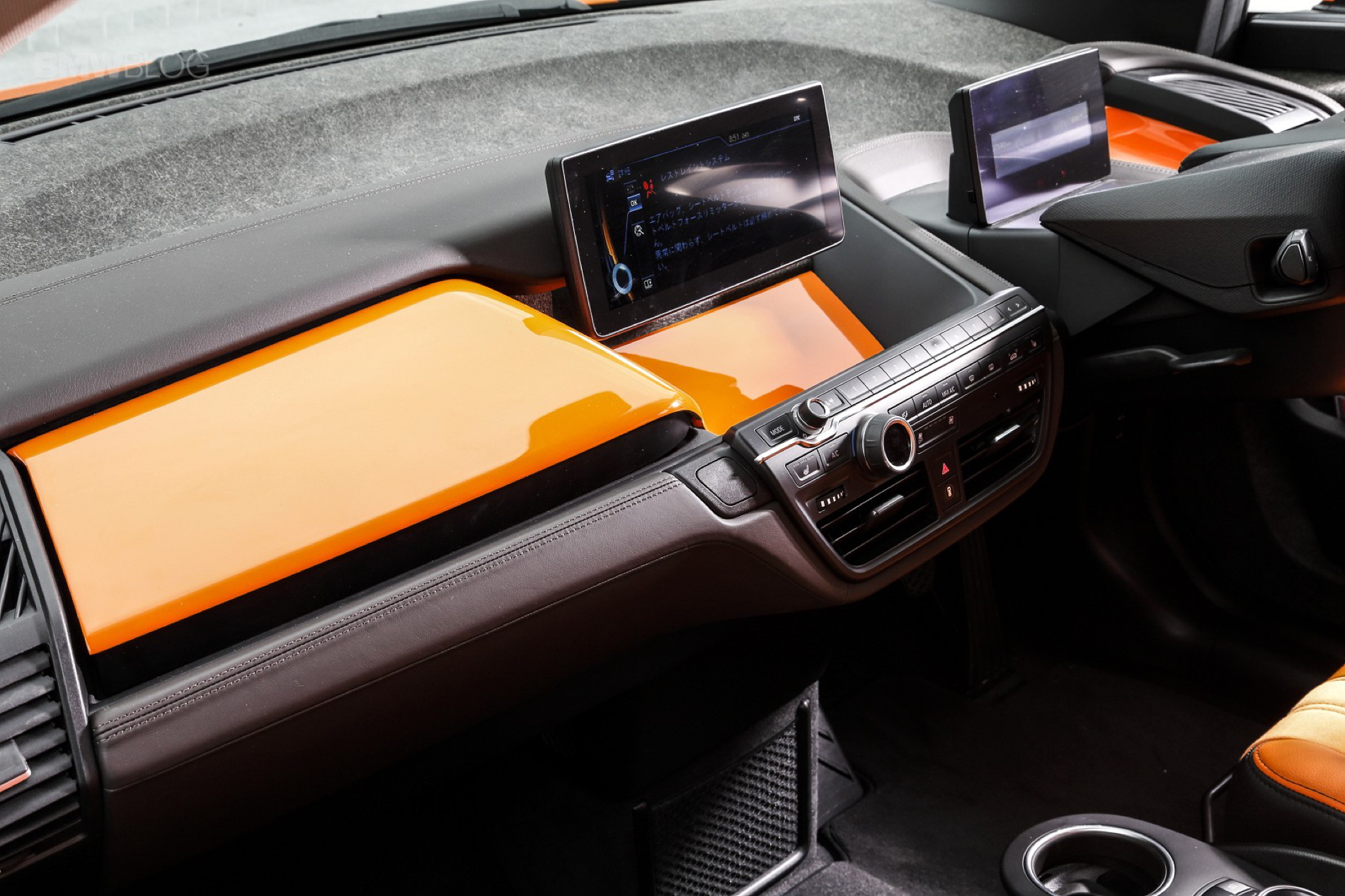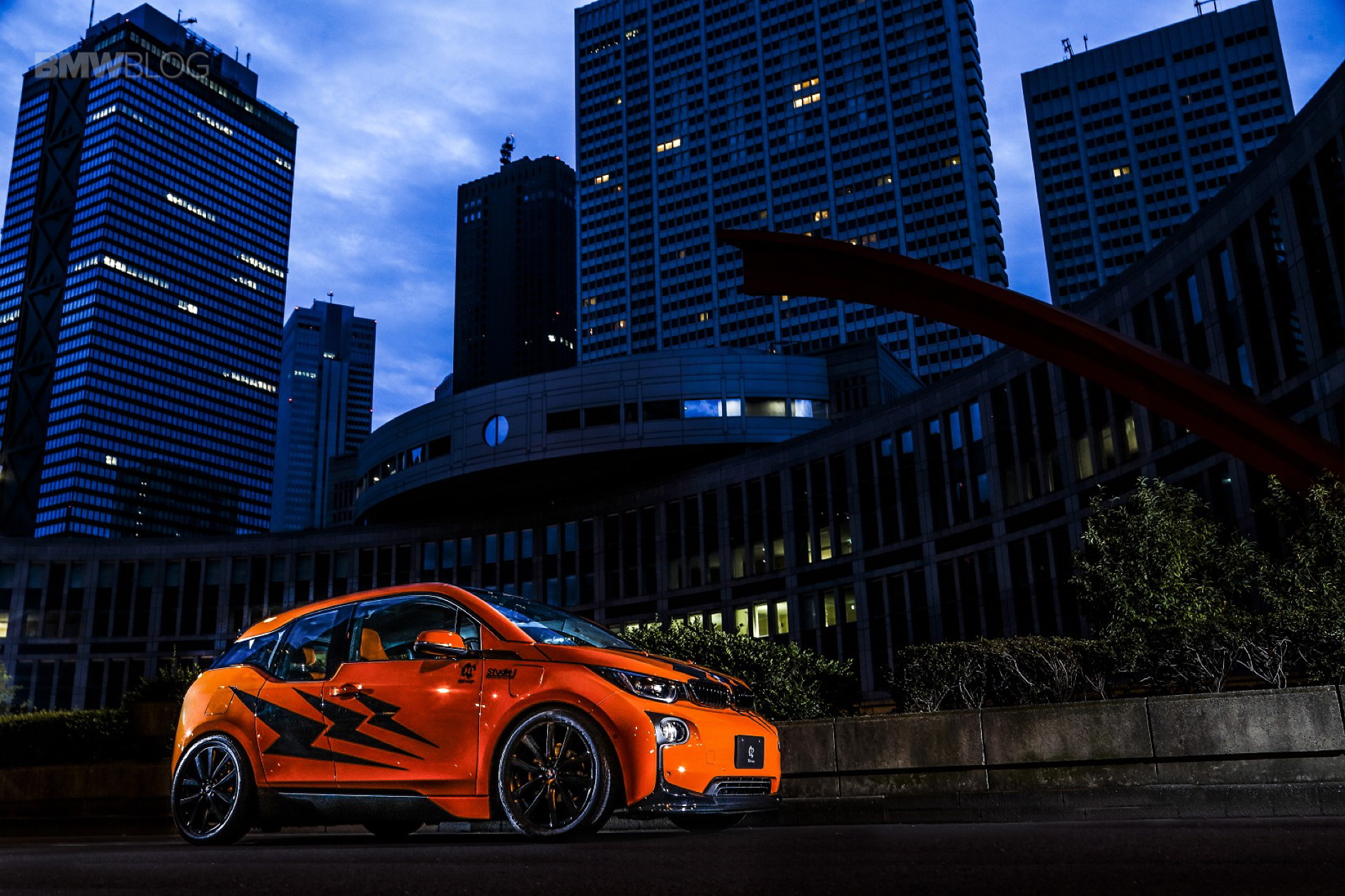 Aufgelockert wird die orange Lackierung von einigen Design-Elementen in Schwarz, neben dunklen Nieren und Felgen haben die Japaner auch einen Frontsplitter in Kontrastfarbe am BMW i3 montiert. Ebenfalls neu ist der Heckspoiler, der bei Stadtgeschwindigkeit natürlich in erster Linie der Optik dient. Zum insgesamt sportlicheren Auftritt trägt auch eine Tieferlegung bei, die das Elektroauto rund 50 Millimeter tiefer legt als europäische Modelle.