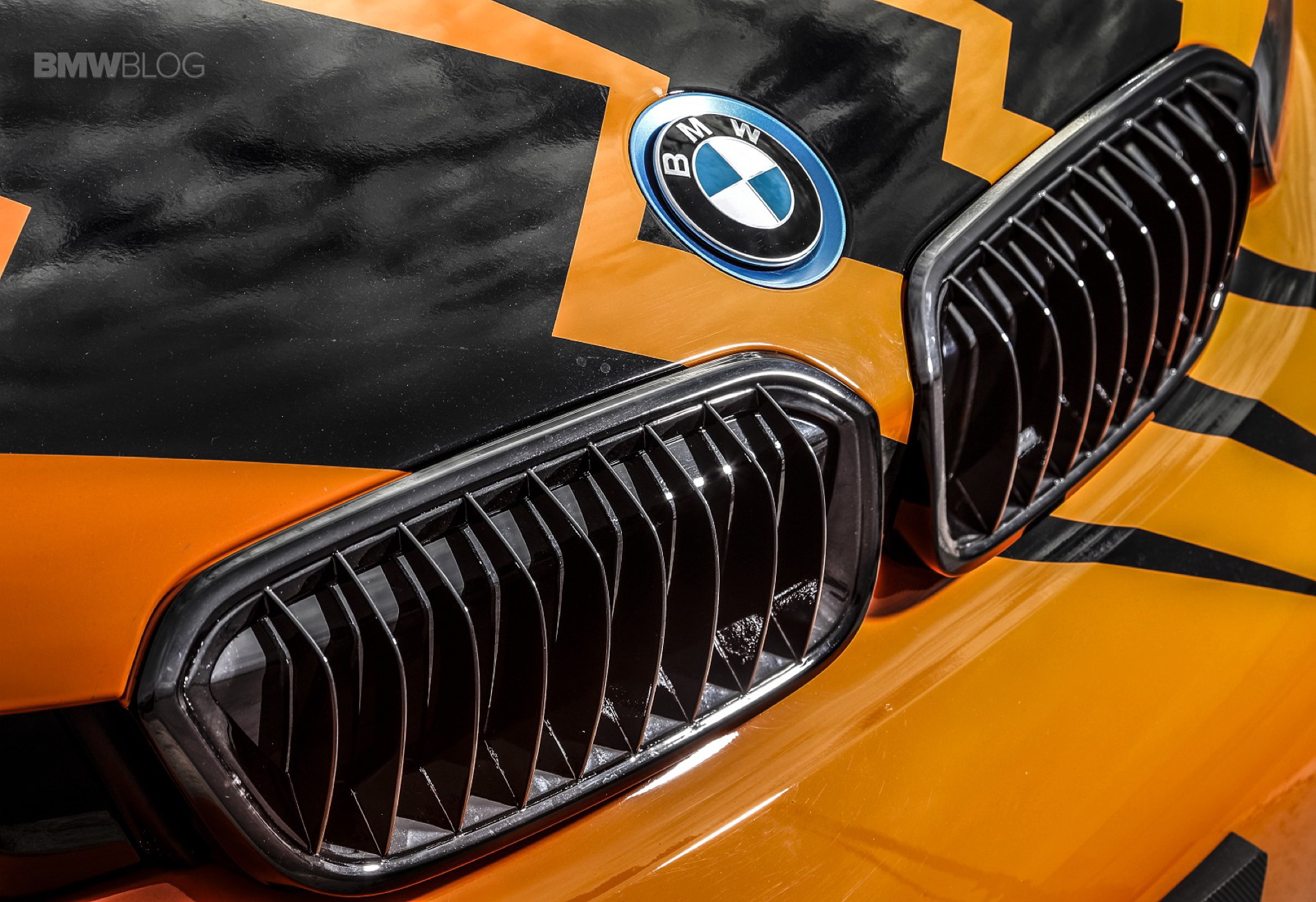 Die auf den ersten Blick wichtigste Änderung betrifft dabei die Farbe, denn statt serienmäßigem Solar Orange kommt hier das einst mit dem BMW M3 GTS eingeführte Feuerorange zum Einsatz. Der typische Black Belt aller BMW i-Modelle wurde im Rahmen der Umgestaltung ebenfalls entfernt, folglich leuchtet auch die Motorhaube in kräftigem Orange.