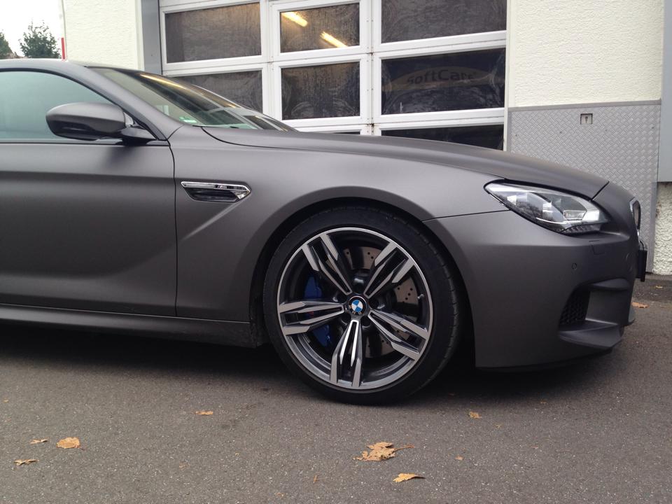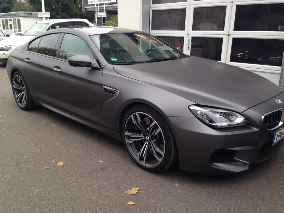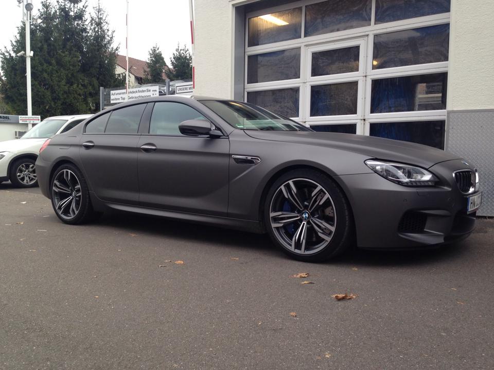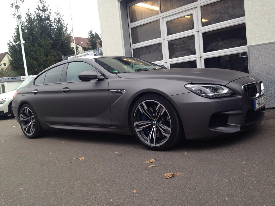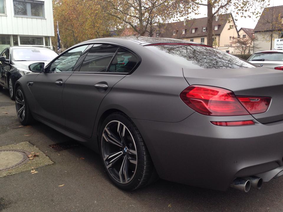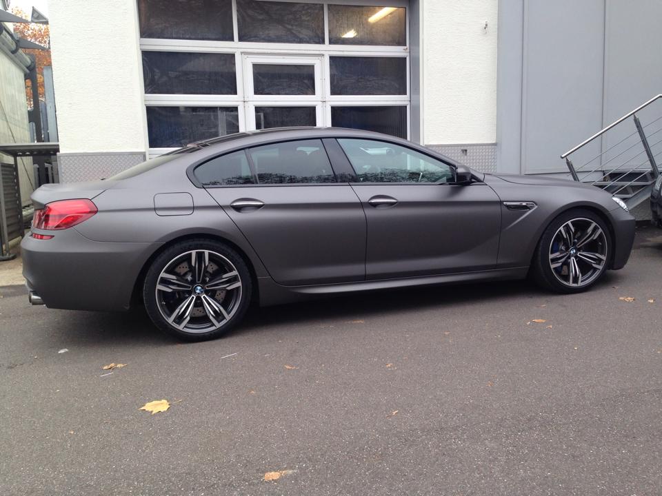 Schon in der gewöhnlichen Preisliste für das BMW M6 Gran Coupé finden sich die matten Lackierungen Frozen Bronze, Frozen Grey und Frozen Silver, aber nicht jeder Kunde hat den Mut für eine dauerhaft matte Lackierung. Deutlich weniger Mut fordert eine Komplett-Folierung, schließlich lässt sich eine solche Folie später wieder rückstandslos entfernen.