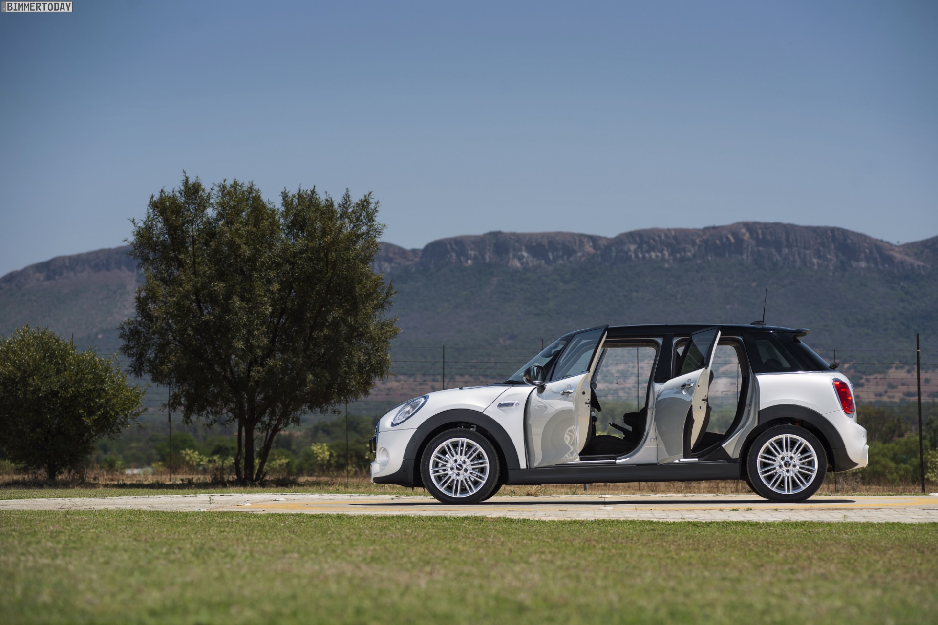 Nur wenige Wochen nach dem Marktstart in seiner europäischen Heimat ist der MINI Fünftürer F55 nun auch in Südafrika angekommen. Wie üblich beschert uns dieser Umstand einige neue Wallpaper-Motive, die das neue Modell an der Südspitze Afrikas zeigen. Auf den jüngsten Fotos wird der MINI F55 als MINI Cooper S in White Silver Metallic in Szene gesetzt, Dach und Bonnet Stripes in Schwarz setzen scharfe Akzente.