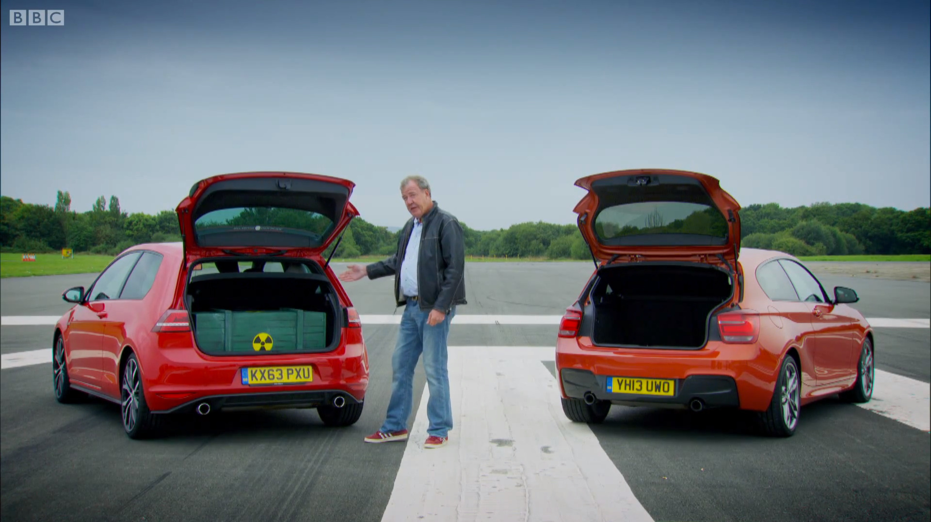 Im strömenden Regen hat Top Gear den BMW M135i einem interessanten Vergleich mit dem VW Golf GTI unterzogen. Dass Jeremy Clarkson dabei jede Menge Spaß mit dem heckgetriebenen und 320 PS starken Kompaktsportler aus München hat, versteht sich von selbst und beschert uns einige schöne Drift-Szenen – bis die Wassermassen auf der Straße für einen Aqua Planing-Zwischenfall sorgen.