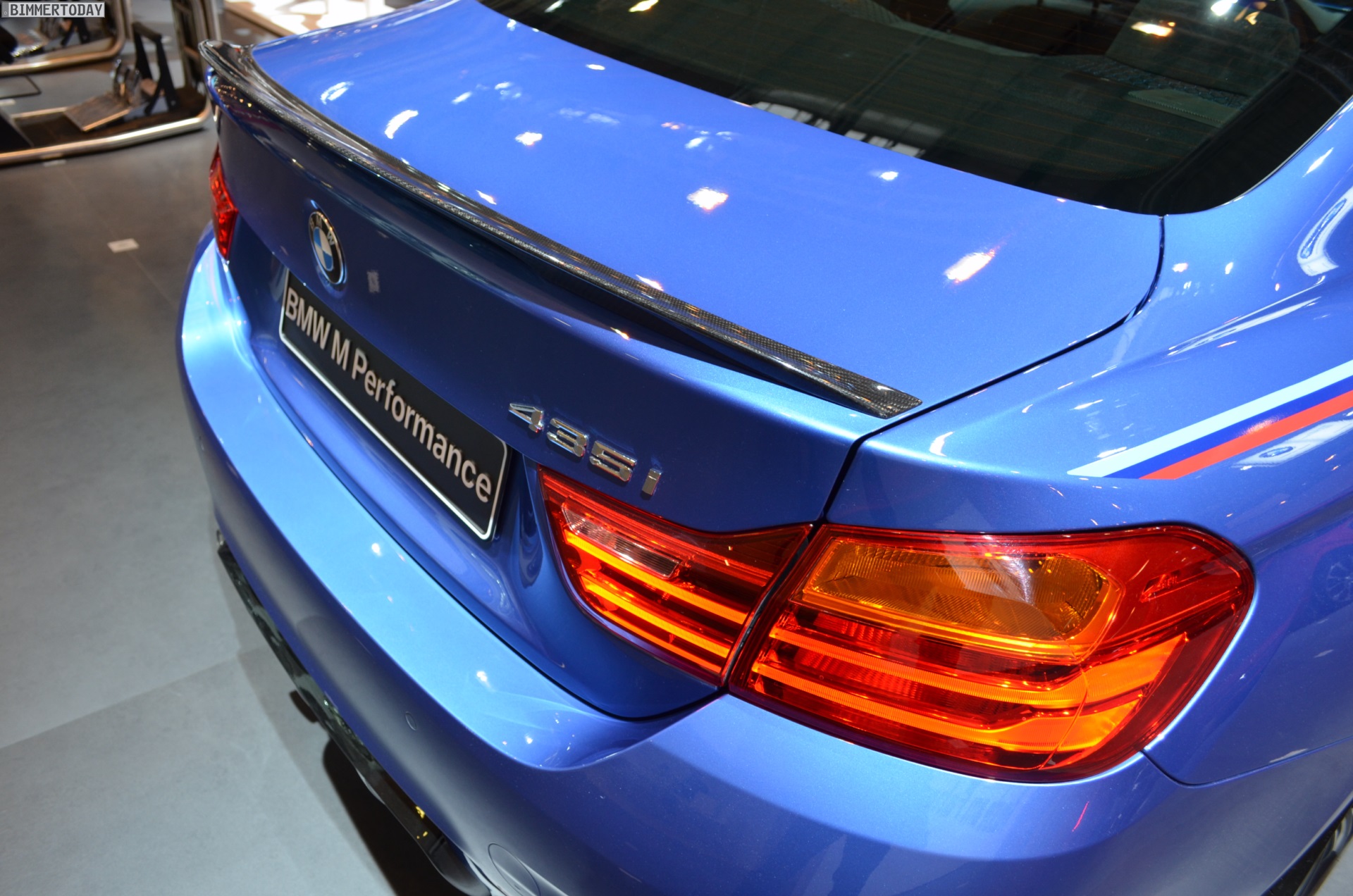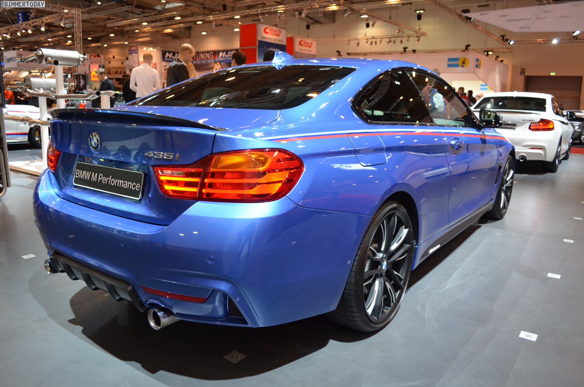 Auch wenn es auf der Essen Motor Show 2014 zahlreiche BMW M4 zu sehen gab, wollen wir das folgende BMW 4er Coupé F32 nicht unter den Tisch fallen lassen. Mit M Sportpaket und einigen Tuning-Komponenten aus dem Programm von BMW M Performance glänzt der BMW 435i in Estorilblau auf dem offiziellen BMW-Stand und zeigt, dass es für einen gelungenen Auftritt nicht immer ein M4 sein muss.