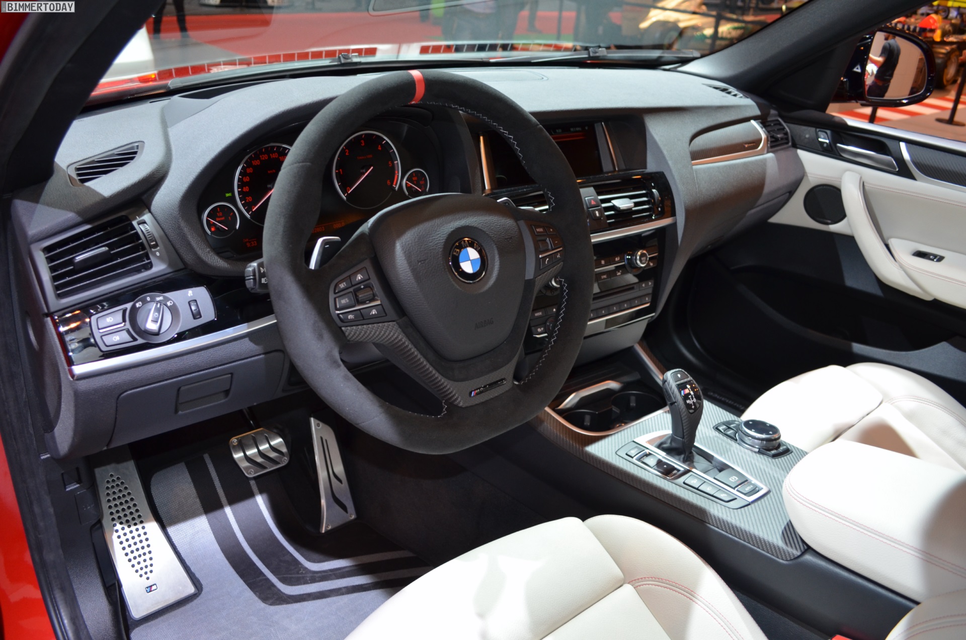 Im Innenraum präsentiert der auf der Essen Motor Show 2014 gezeigte BMW X4 ebenfalls einige M Performance-Komponenten, besonders sticht dabei das BMW M Performance Lenkrad mit Alcantara-Bezug und Carbon-Blenden hervor.