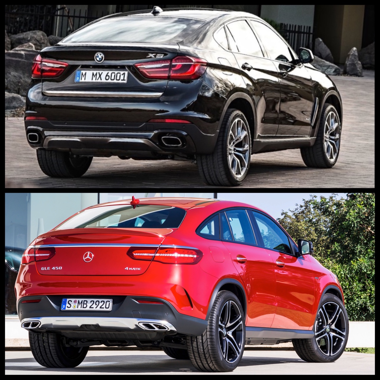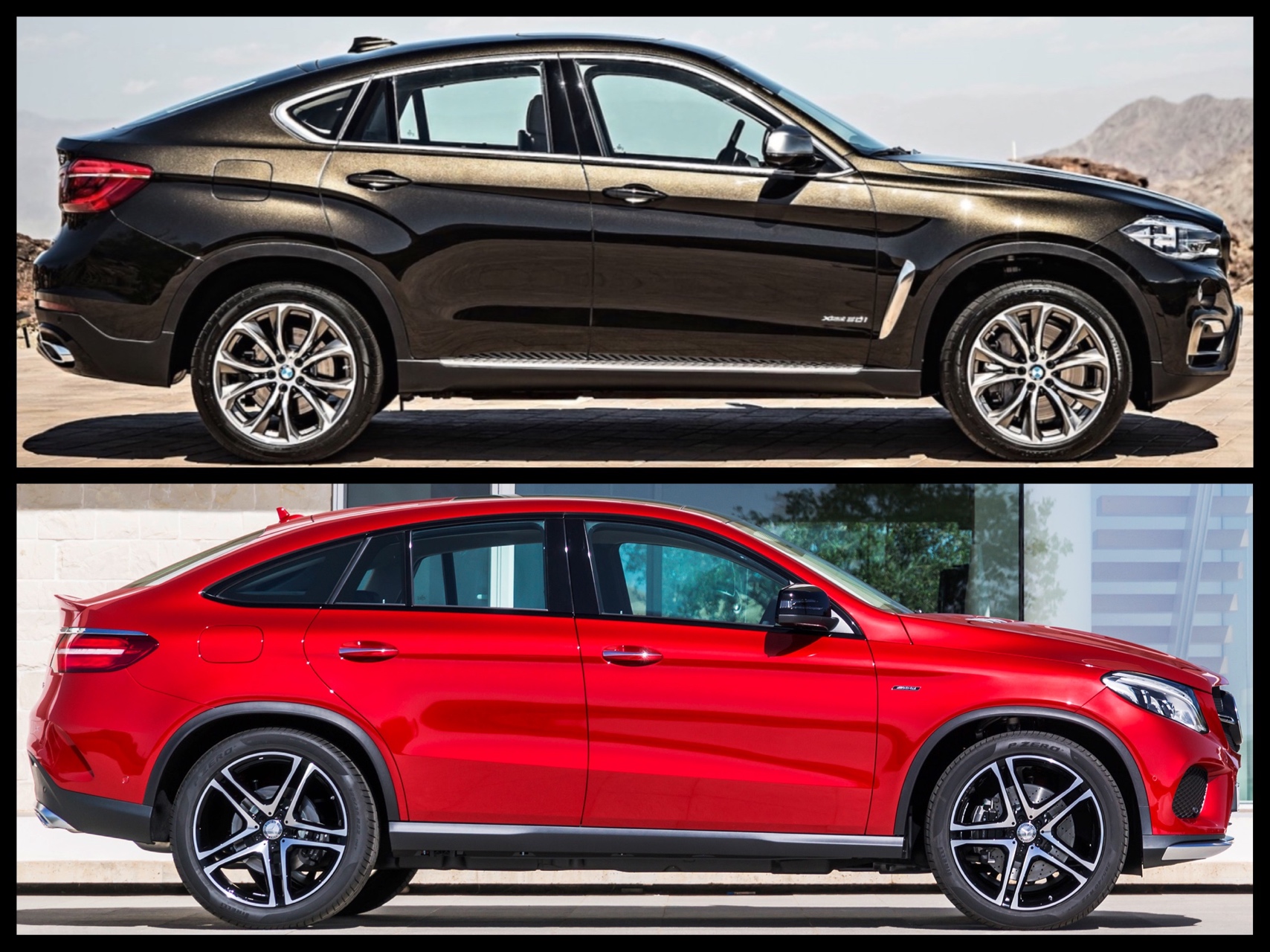 Die beiden deutschen Luxus-Offroader mit Coupé-artiger Dachlinie ähneln sich zwar auf den ersten Blick, sind aber auch klar als Mitglied ihrer jeweiligen Marke einzuordnen. Einen selbstbewussten Auftritt pflegen ohne Frage beide Interpretationen des Themas SUV-Coupé:
