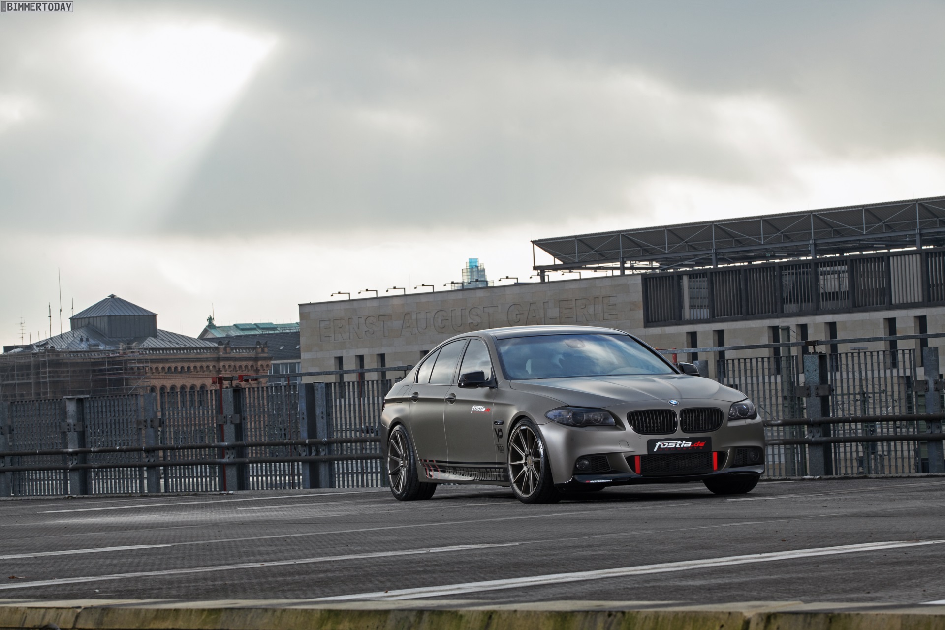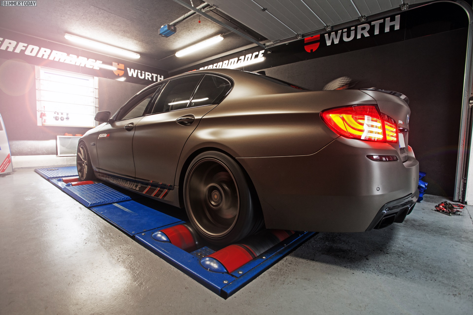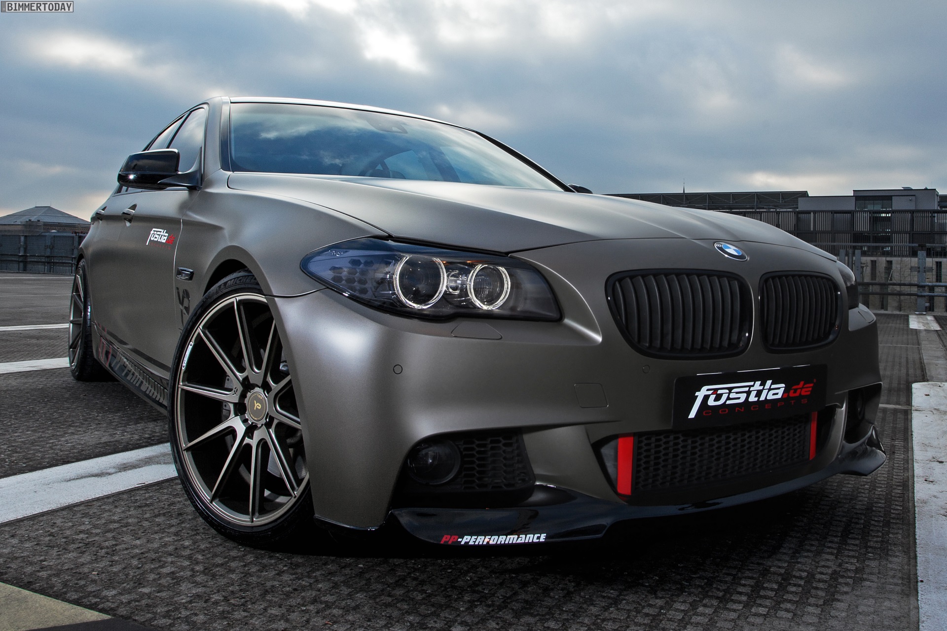 Absoluter Hingucker ist allerdings die von fostla.de realisierte Voll-Folierung in Urban Taupe Matt-Metallic, die den 570 PS starken Tuning-5er unübersehbar aus der automobilen Masse herauskatapultiert. Glänzend schwarze Akzente sowie getönte Scheiben und Rückleuchten runden das Gesamtbild ab.