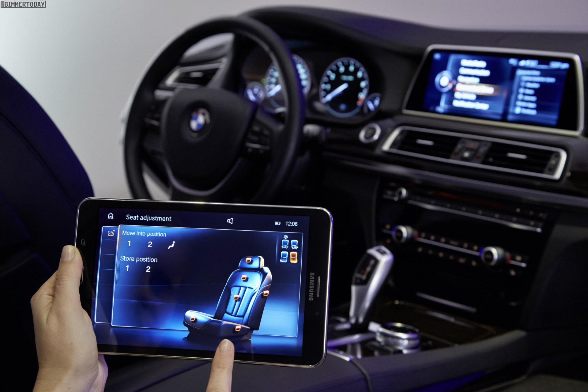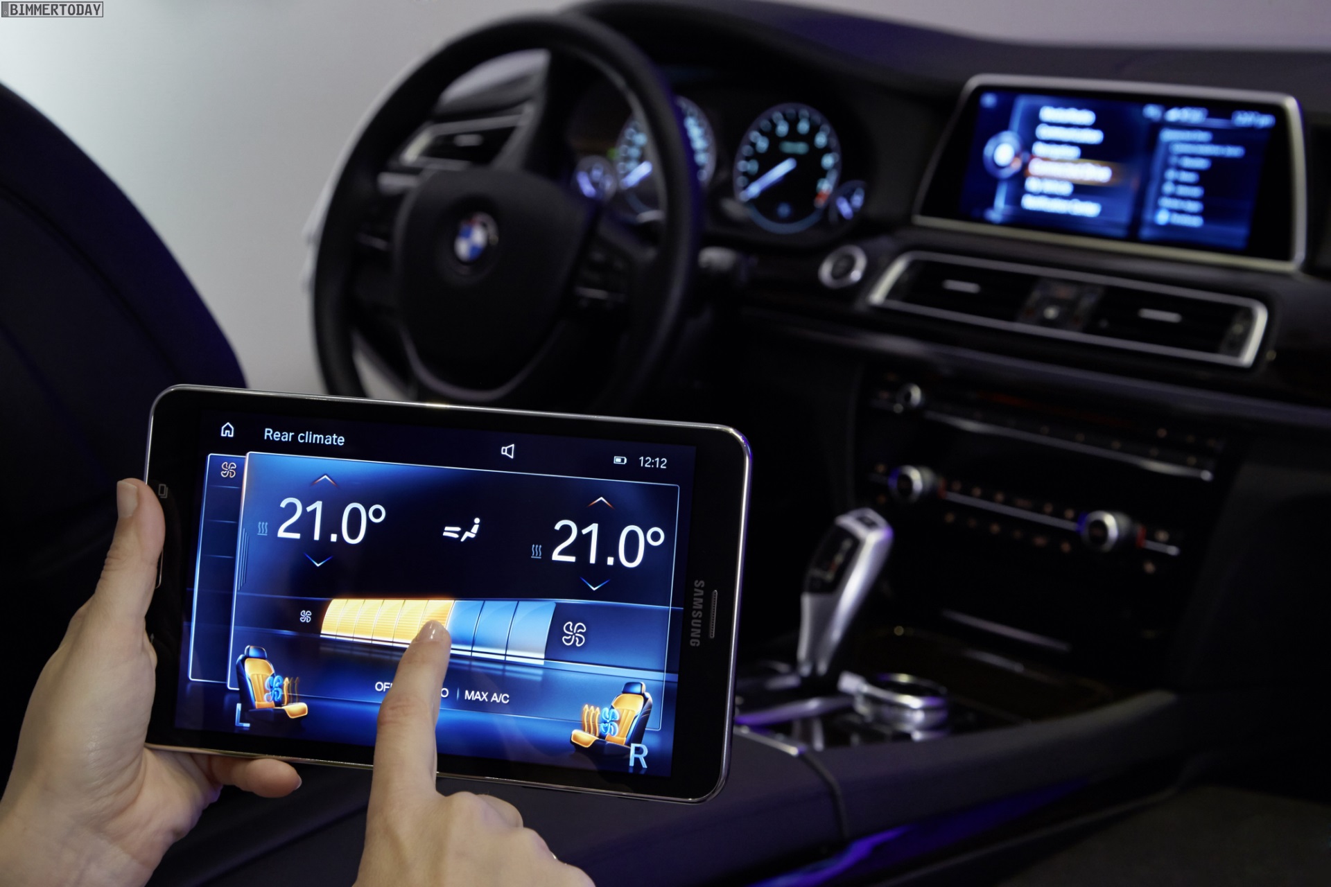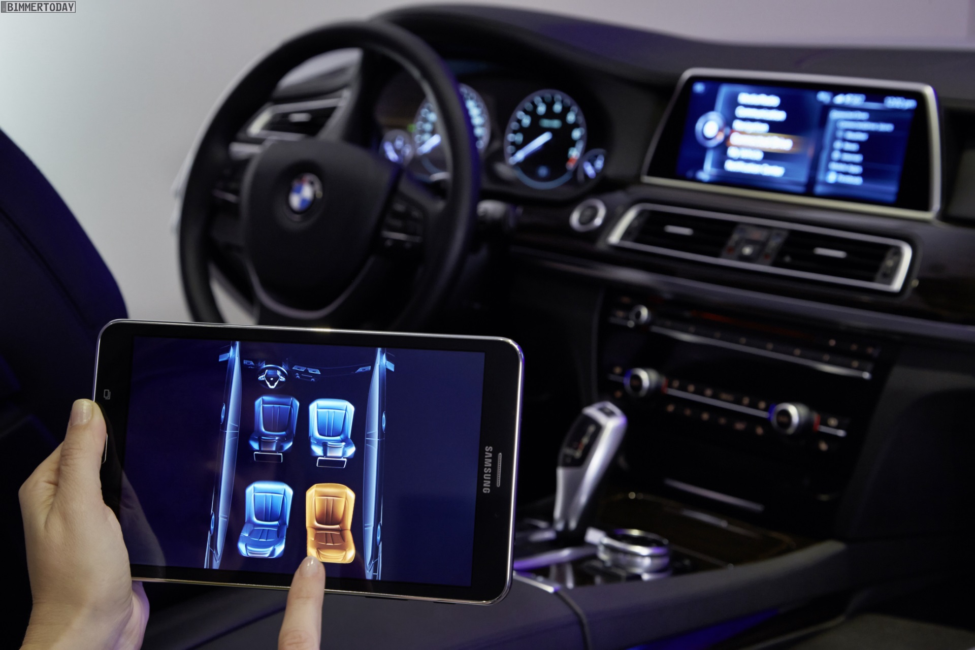 Der vollständig in die Fahrzeugelektronik integrierte Tablet-Computer wird in einer crashsicheren Halterung verstaut und kann komfortabel per Snap-in-Adapter aufgeladen werden. Eine spezielle BMW App auf dem Tablet ermöglicht die Steuerung von Rear Seat Entertainment-System & Co. in der vom iDrive-System bekannten Darstellung.