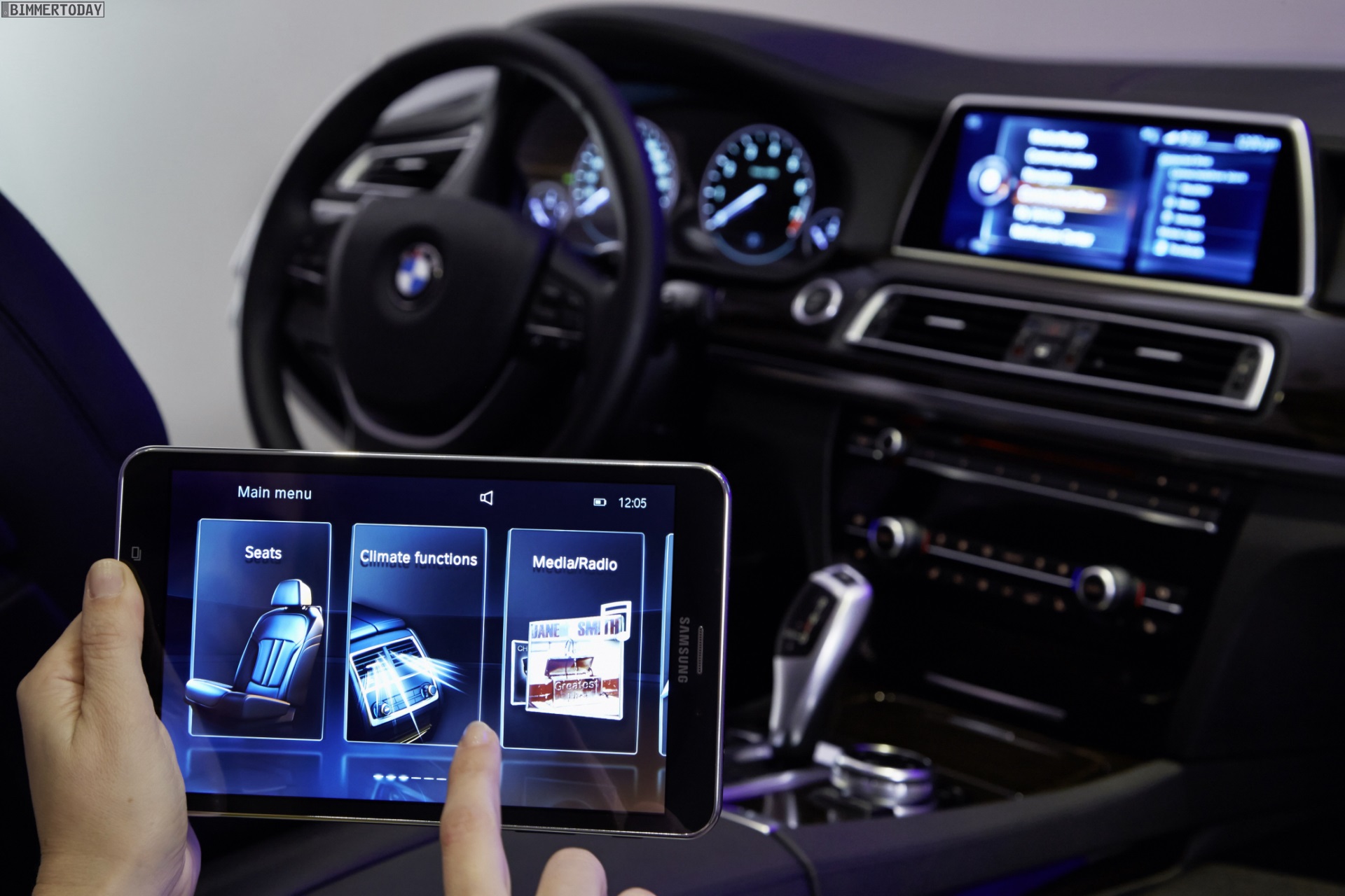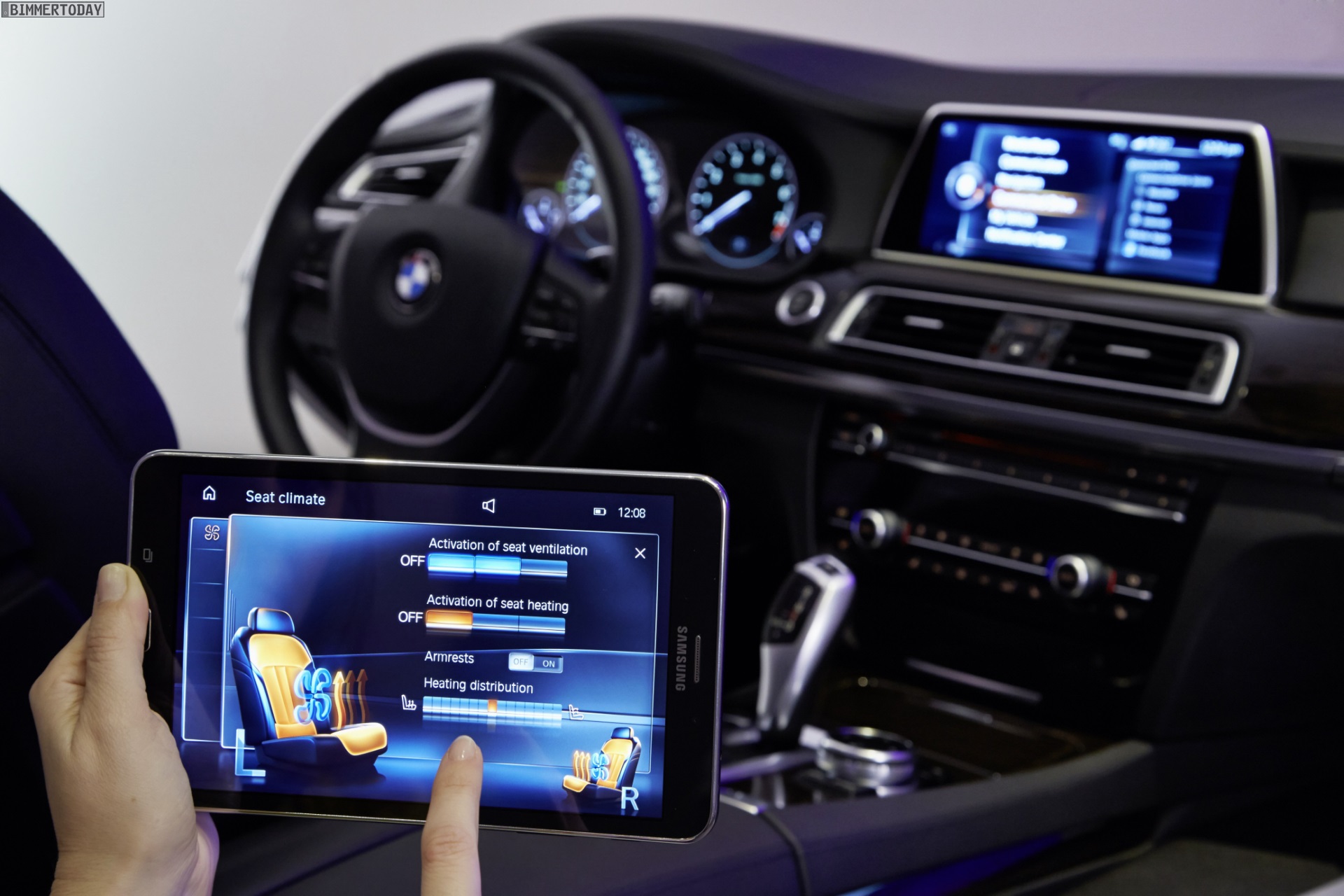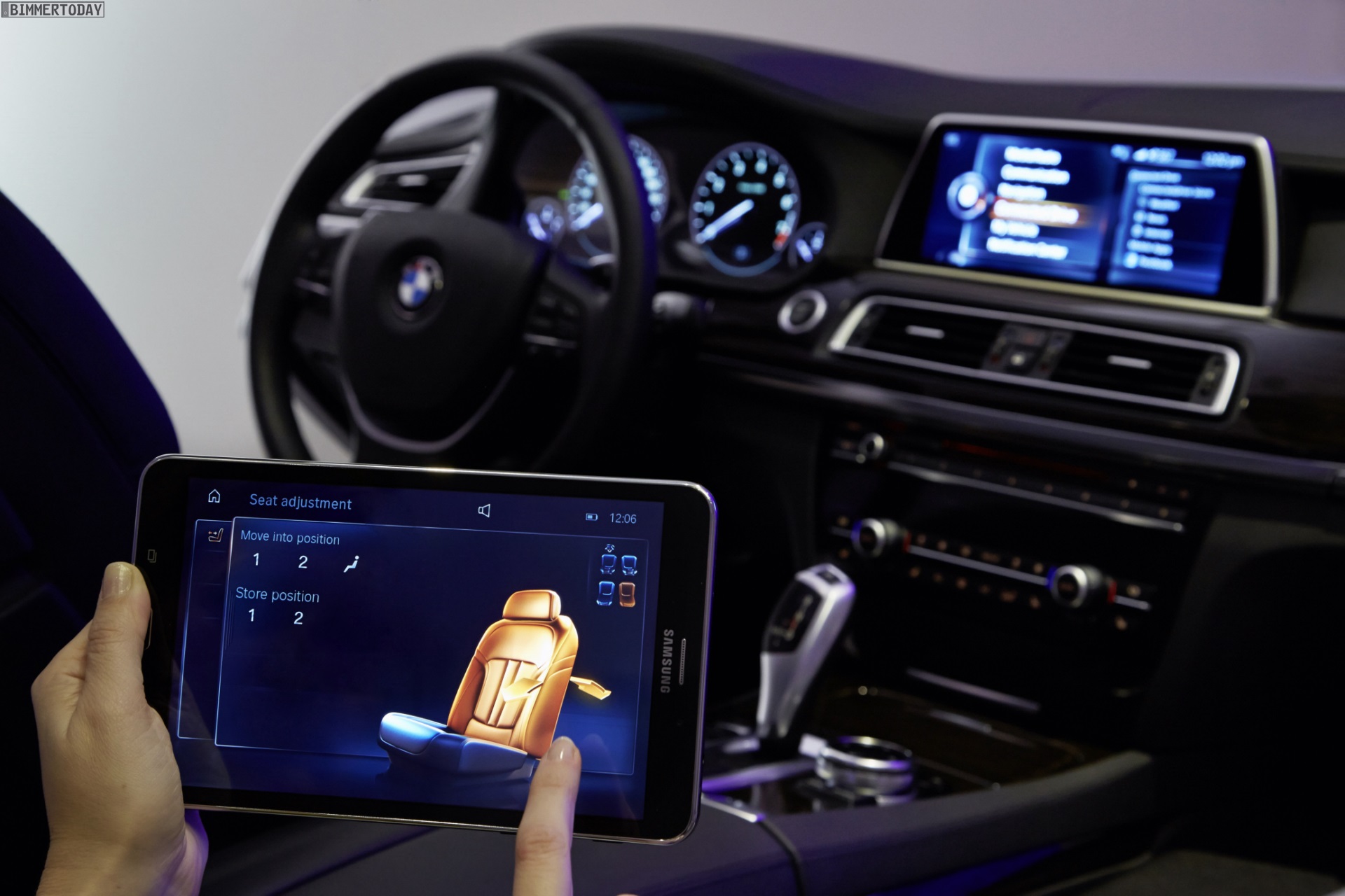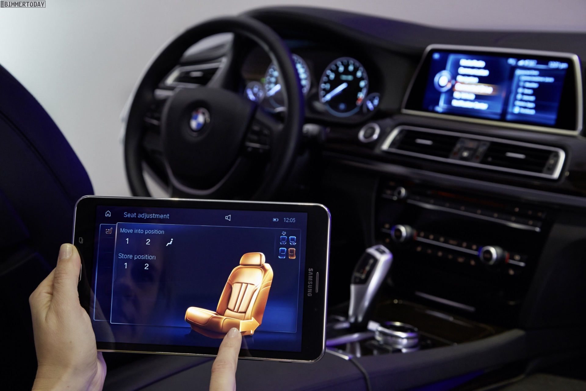 Der vollständig in die Fahrzeugelektronik integrierte Tablet-Computer wird in einer crashsicheren Halterung verstaut und kann komfortabel per Snap-in-Adapter aufgeladen werden. Eine spezielle BMW App auf dem Tablet ermöglicht die Steuerung von Rear Seat Entertainment-System & Co. in der vom iDrive-System bekannten Darstellung.