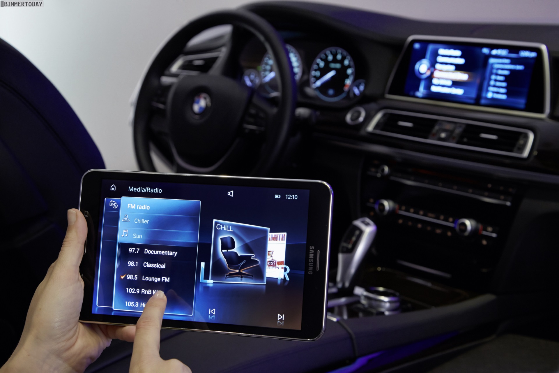Für den BMW 7er G11 und andere Fahrzeuge mit besonders hohem Anspruch der Fond-Passagiere ist auch das neue BMW Touch Command-System interessant. Hierbei handelt es sich um einen Tablet-Computer von Samsung, der per WLAN mit dem Fahrzeug verbunden ist und die intuitive Steuerung zahlreicher Infotainment- und Komfort-Funktionen erlaubt. Genau wie im heimischen Wohnzimmer kann sich der Nutzer dabei entspannt zurücklehnen und muss keine Rücksicht auf fest montierte Eingabegeräte nehmen.