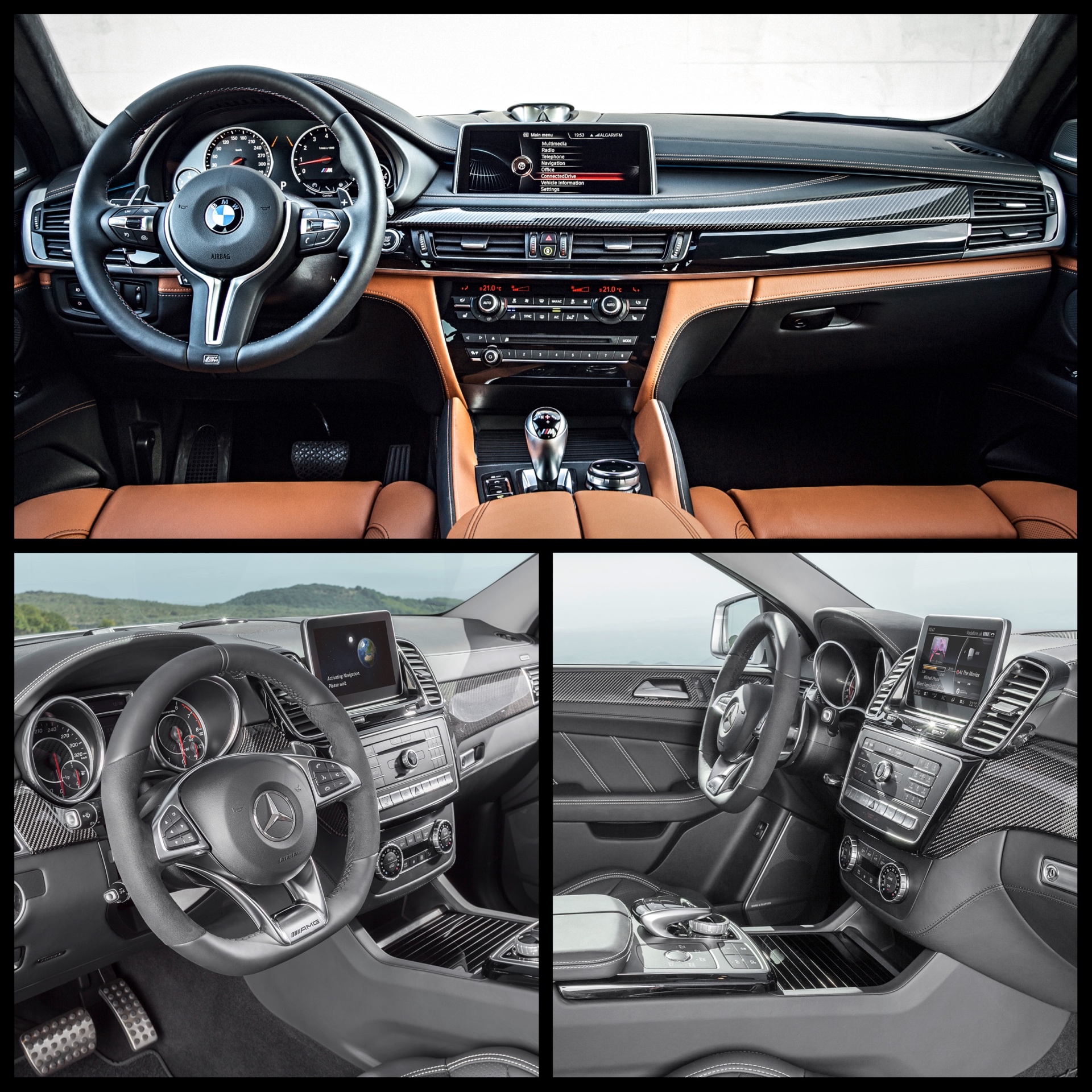Während der BMW X6 M die Kraft seines V8-Biturbo variabel zwischen den Achsen verteilt, setzt Mercedes auf eine starre Kraftverteilung von 40:60. Modernste Fahrwerkstechnik zum Kaschieren des üppigen Gewichts haben beide an Bord.