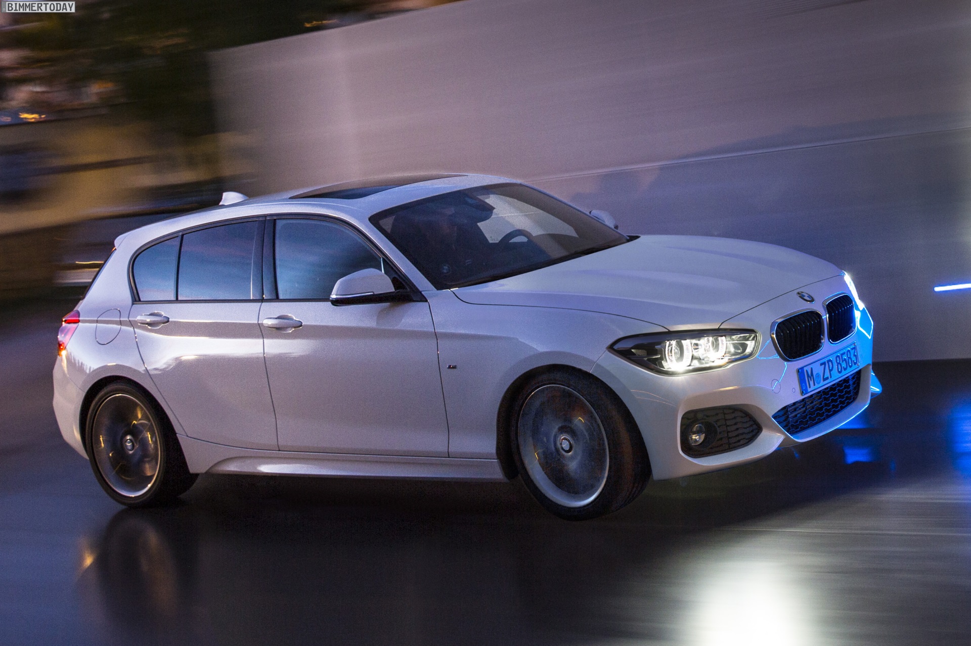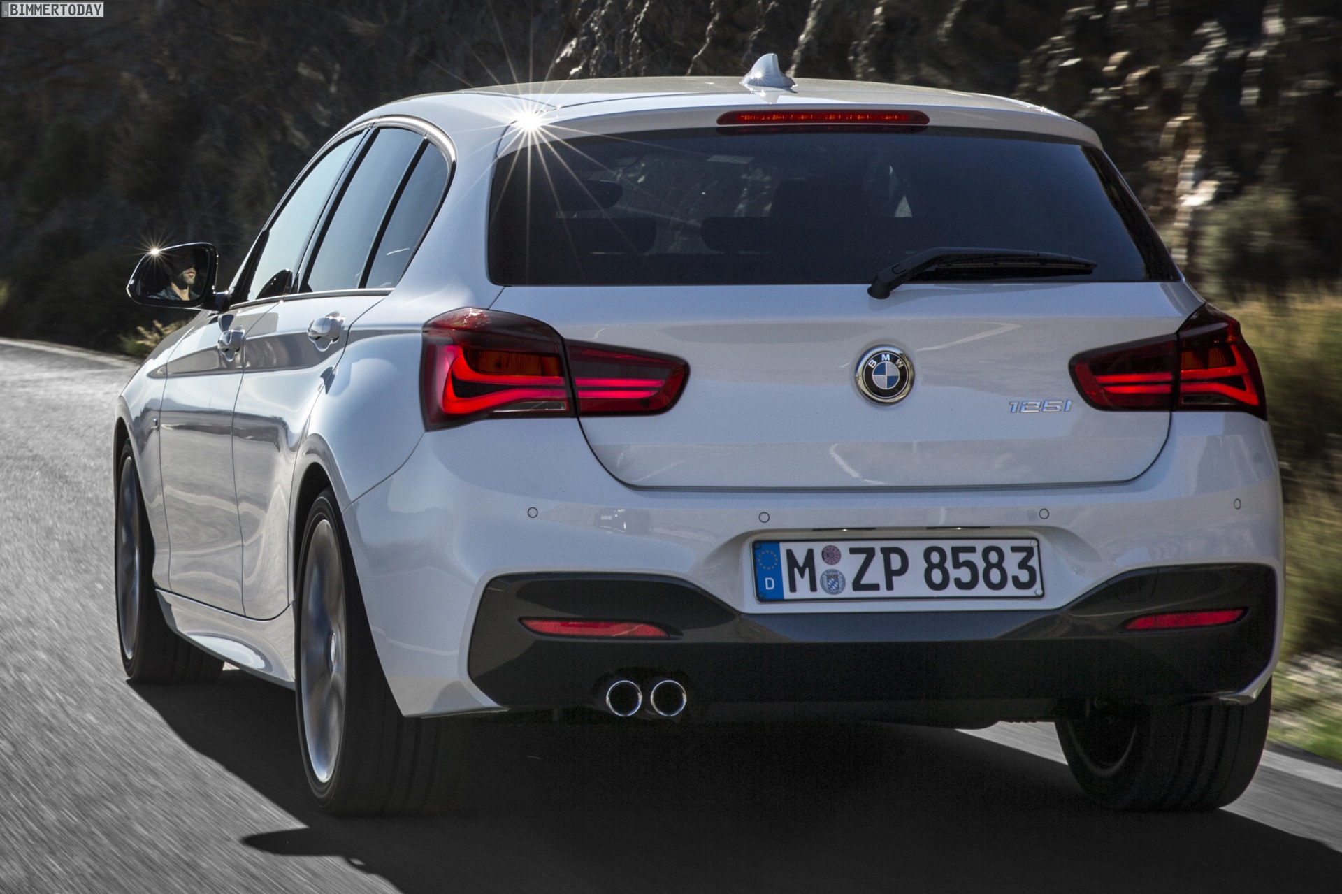 Auf den ersten Fotos sehen wir den BMW 1er F20 LCI mit M Sport-Paket als weißen 125i, außerdem gibt es zwei Bilder eines entsprechend ausgerüsteten BMW 1er Facelift in Estorilblau – einer Lackierung, die wie vor dem Facelift exklusiv Fahrzeugen mit M Sportpaket vorbehalten bleibt.