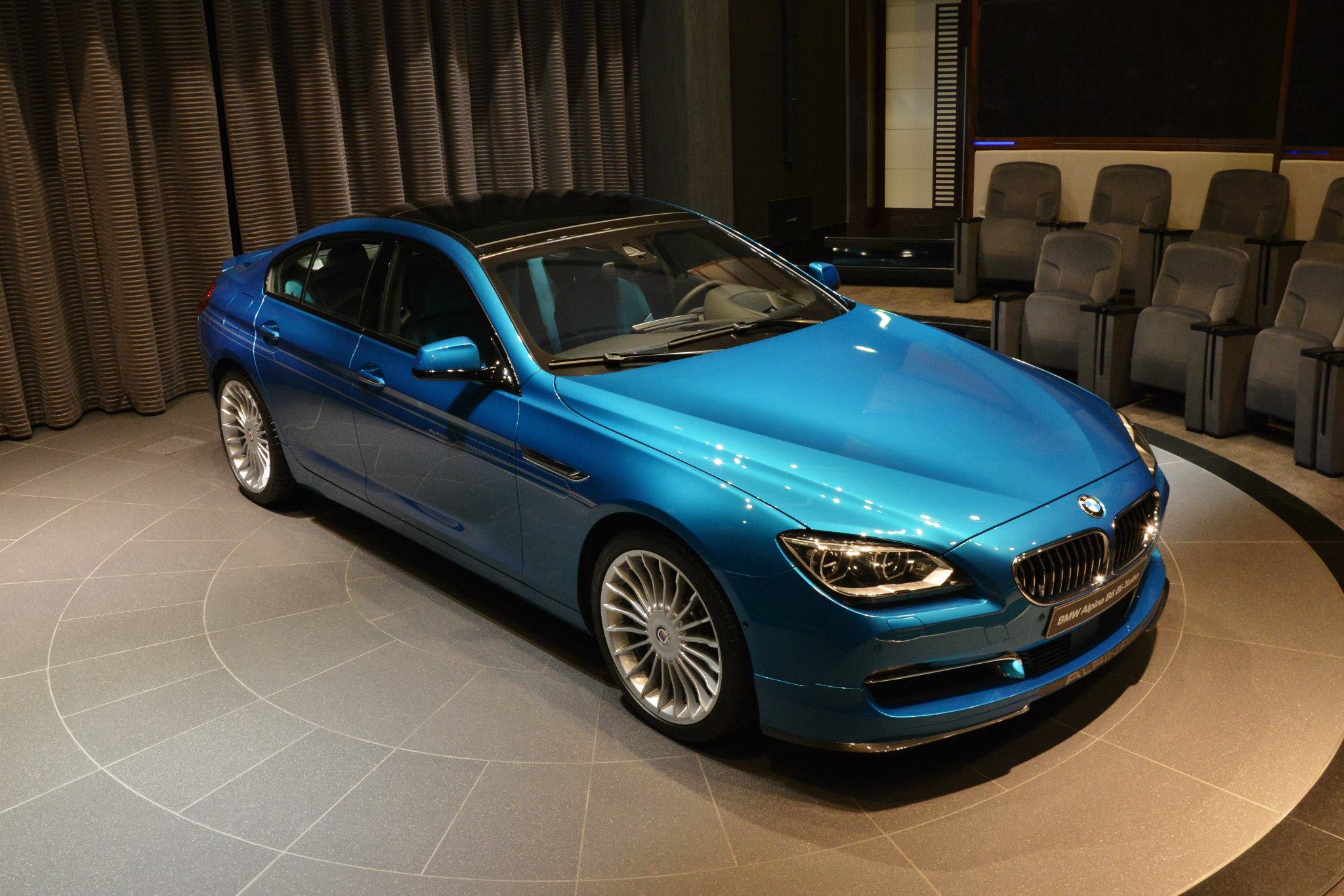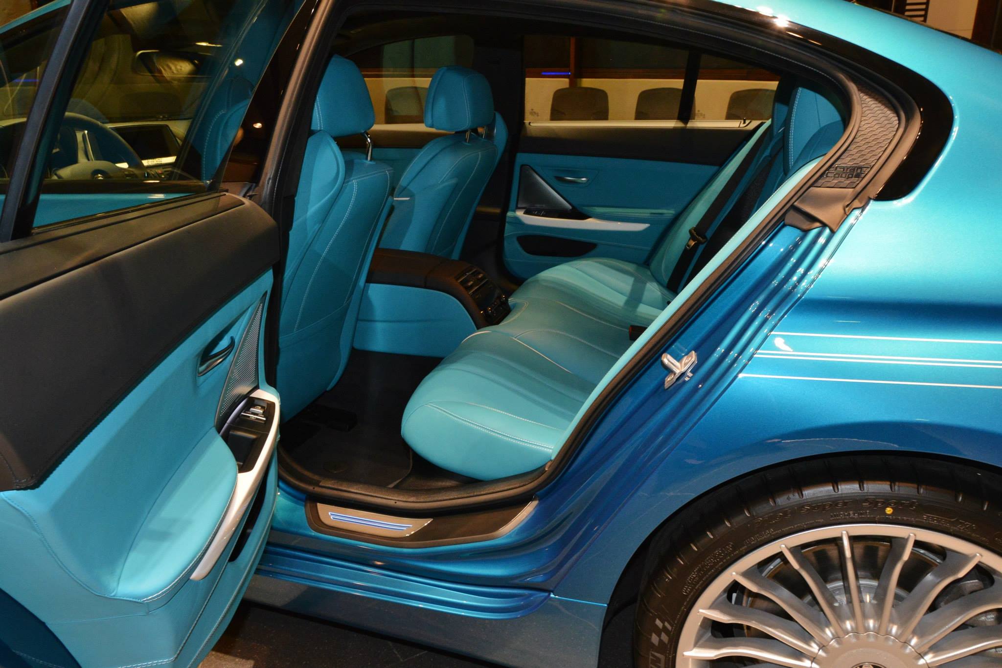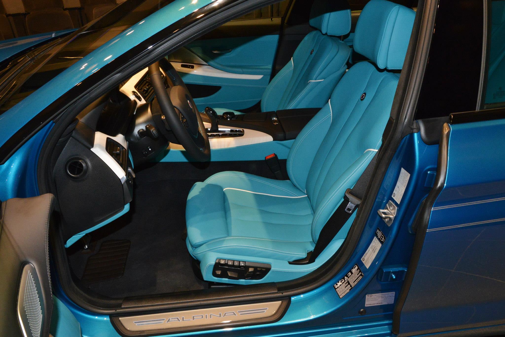 Die türkis-blaue Lackierung beschert dem eleganten Luxus-Coupé eine sportliche Note und erinnert auf Fotos an die neue M-Farbe Long Beach Blue, die in eine ähnliche Richtung geht. Die großen 20 Zoll-Felgen im Alpina Classic-Design und das schwarz gehaltene Dach runden den speziellen Auftritt des viertürigen B6 ab – anders als beim BMW M6 Gran Coupé handelt es sich aber nicht um ein Carbon-Dach.